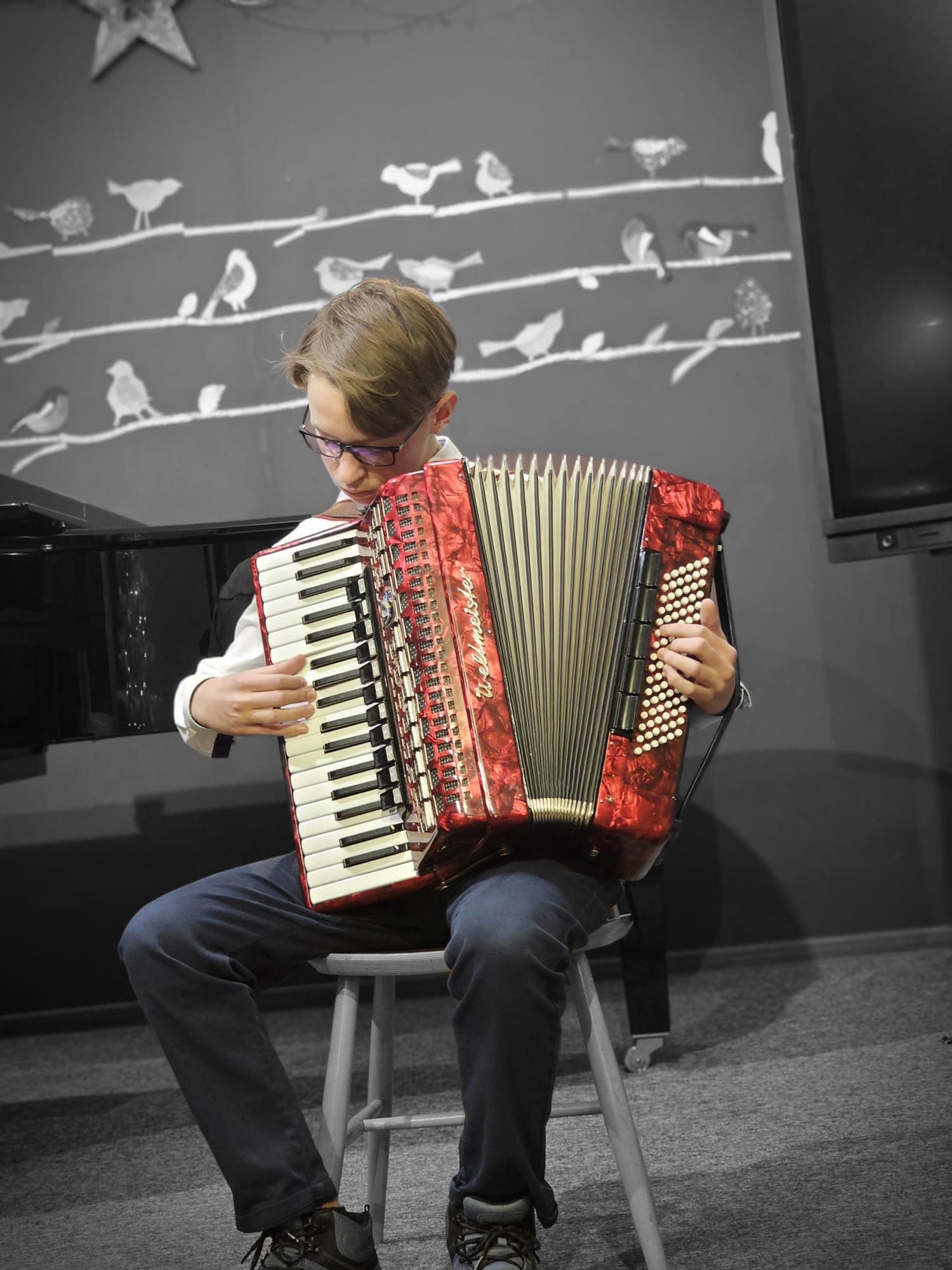 08 grudnia 2023 r. w sali koncertowej szkoły muzycznej w Tczewie rozbrzmiała muzyka w pełnej harmonii, a to za sprawą akordeonistów z klasy p. Marka Gleinerta, którzy zagrali świetny Koncert. Serdecznie gratulujemy udanych występów.