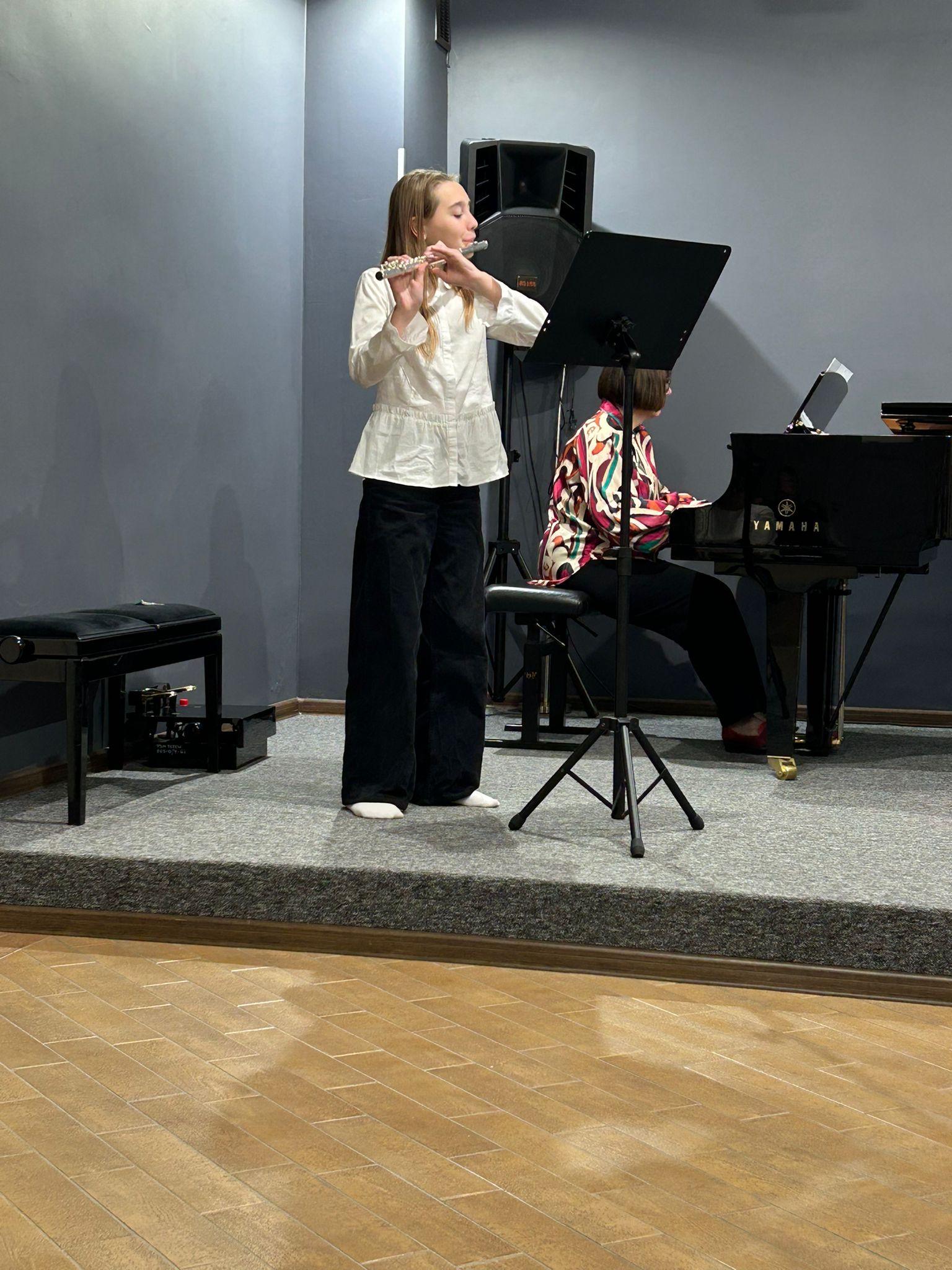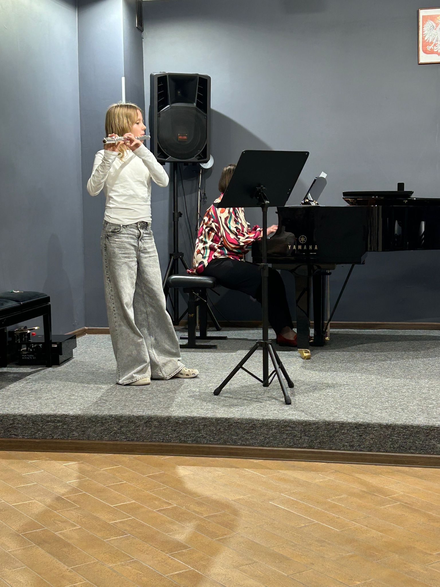 24 listopada 2025 o godzinie 18:00 naszą salę koncertową wypełniły dźwięki fletu poprzecznego. Uczniowie pani Hanny Łąckiej wraz z pianistką - panią Monika Madej-Strukiel - zaprezentowali efekty swojej trzymiesięcznej pracy. Brawo fleciści!! Trzymamy mocno kciuki za wasze kolejne sukcesy! To był wspaniały koncert klasowy!