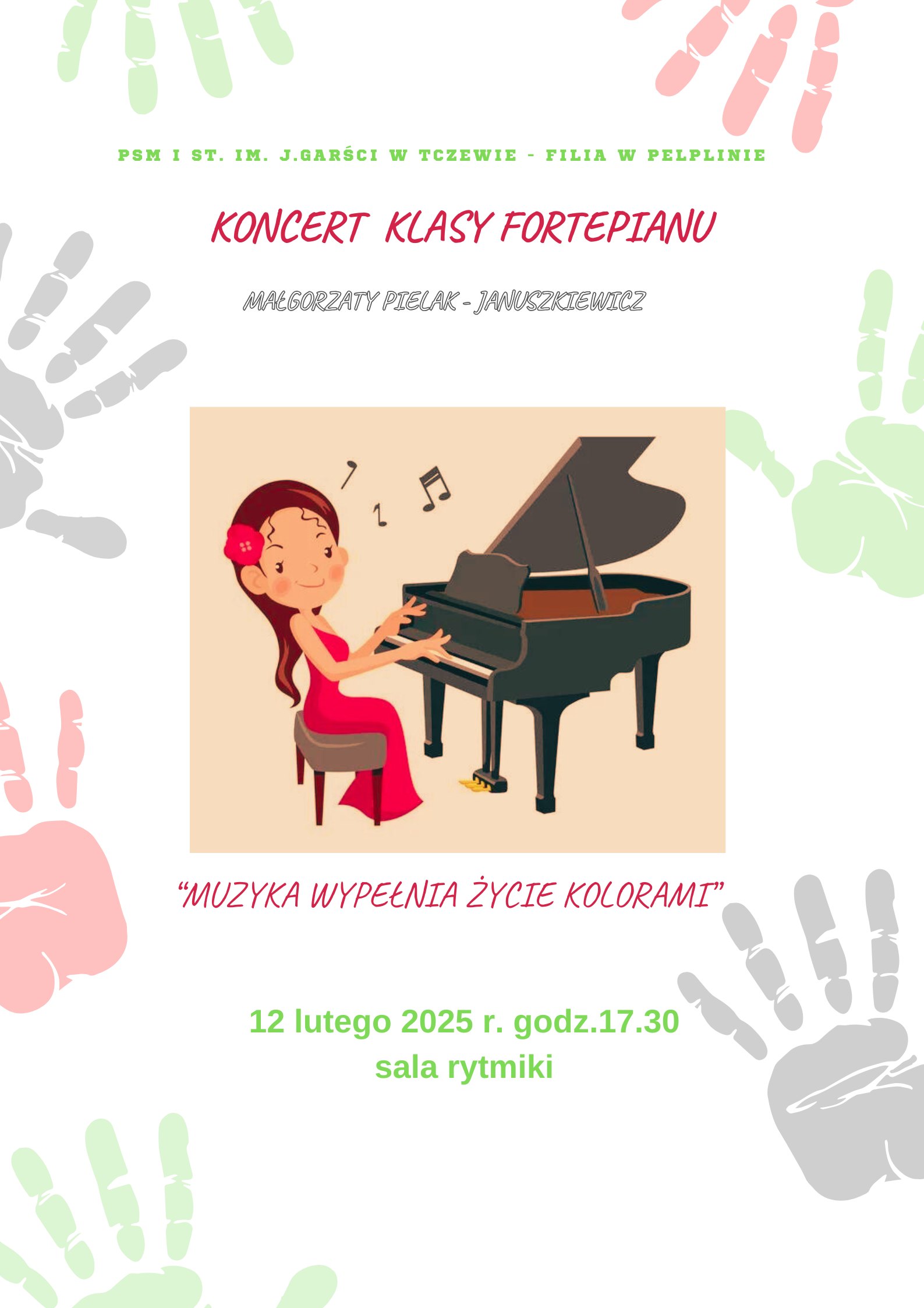 12 lutego 2025 roku w Filii odbył się koncert klasy fortepianu pani Małgorzaty Pielak-Januszkiewicz pt. "Muzyka Wypełnia Życie Kolorami". Zagrali uczniowie klasy fortepianu głównego oraz dodatkowego.