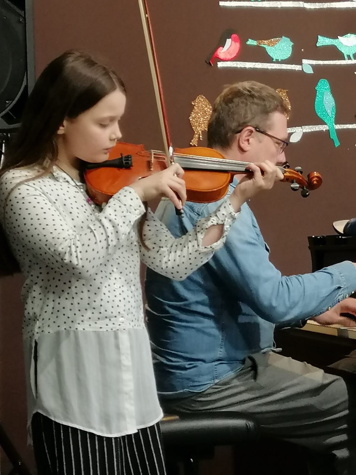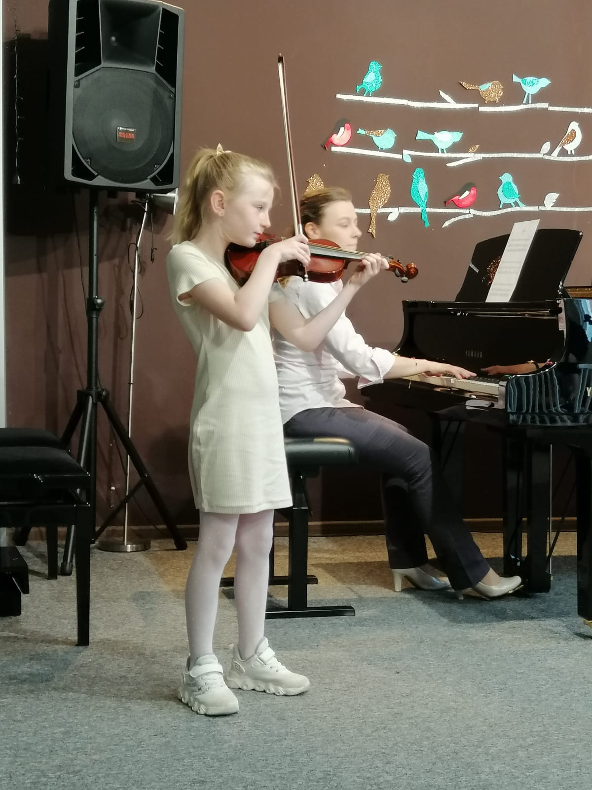 27 maja 2025r. Klasa skrzypiec p. Aldony Śmietańskiej uczciła Dzień Matki koncertem. Dzieci grały swoje koncerty i utwory dowolne oraz bardzo chętnie wspólnie wykonały specjalny utwór przygotowany dla swoich Mam i Tatusiów z okazji tego święta. Była to bardzo miła muzyczna "laurka", która nagrodzona została gromkimi oklaskami. Przy fortepianie dzieciom towarzyszyli p. Agnieszka Stankowska i p. Marcin Hinz. Brawo dla wszystkich wykonawców. Życzymy sukcesów również na zbliżających się egzaminach.