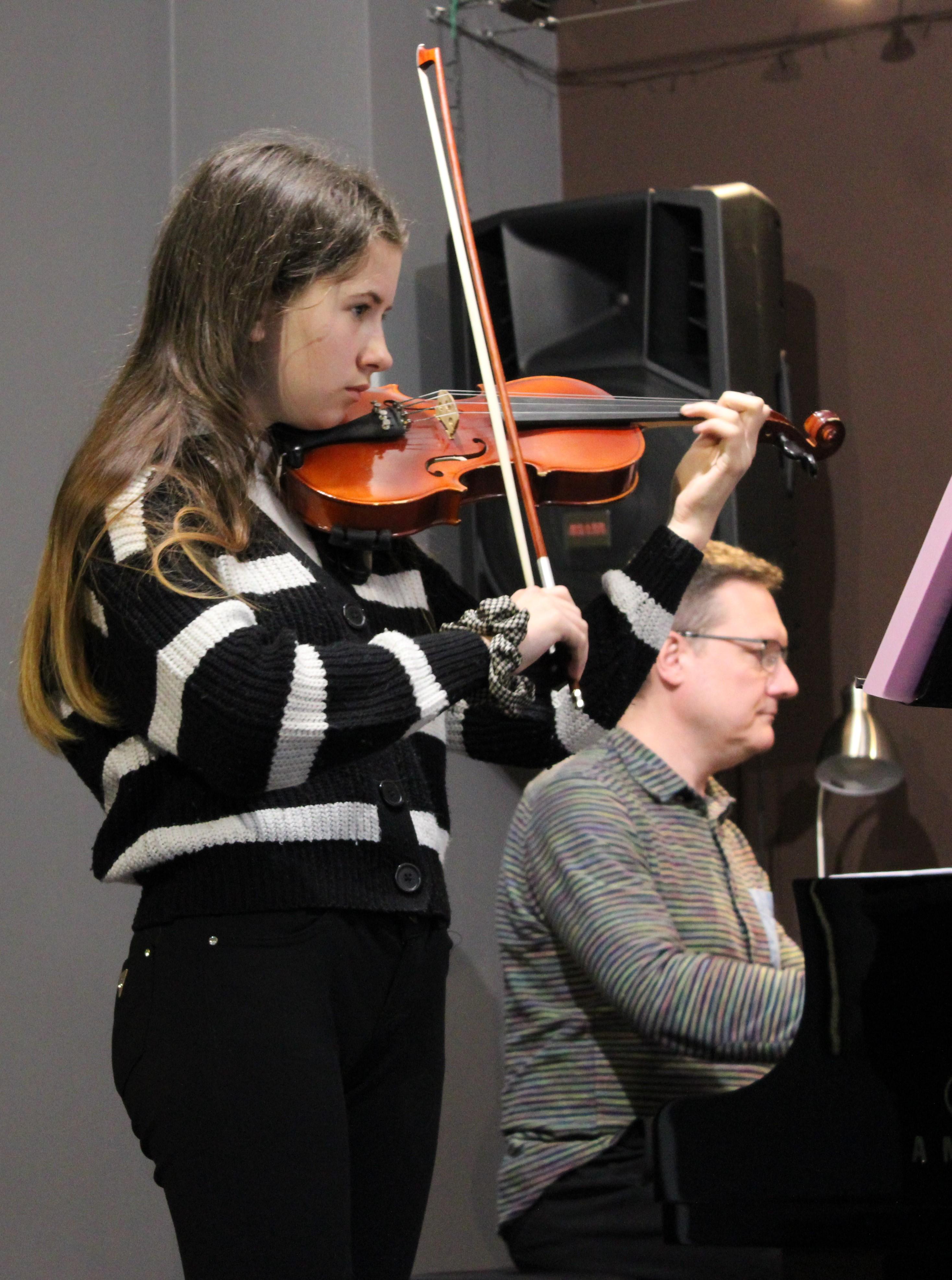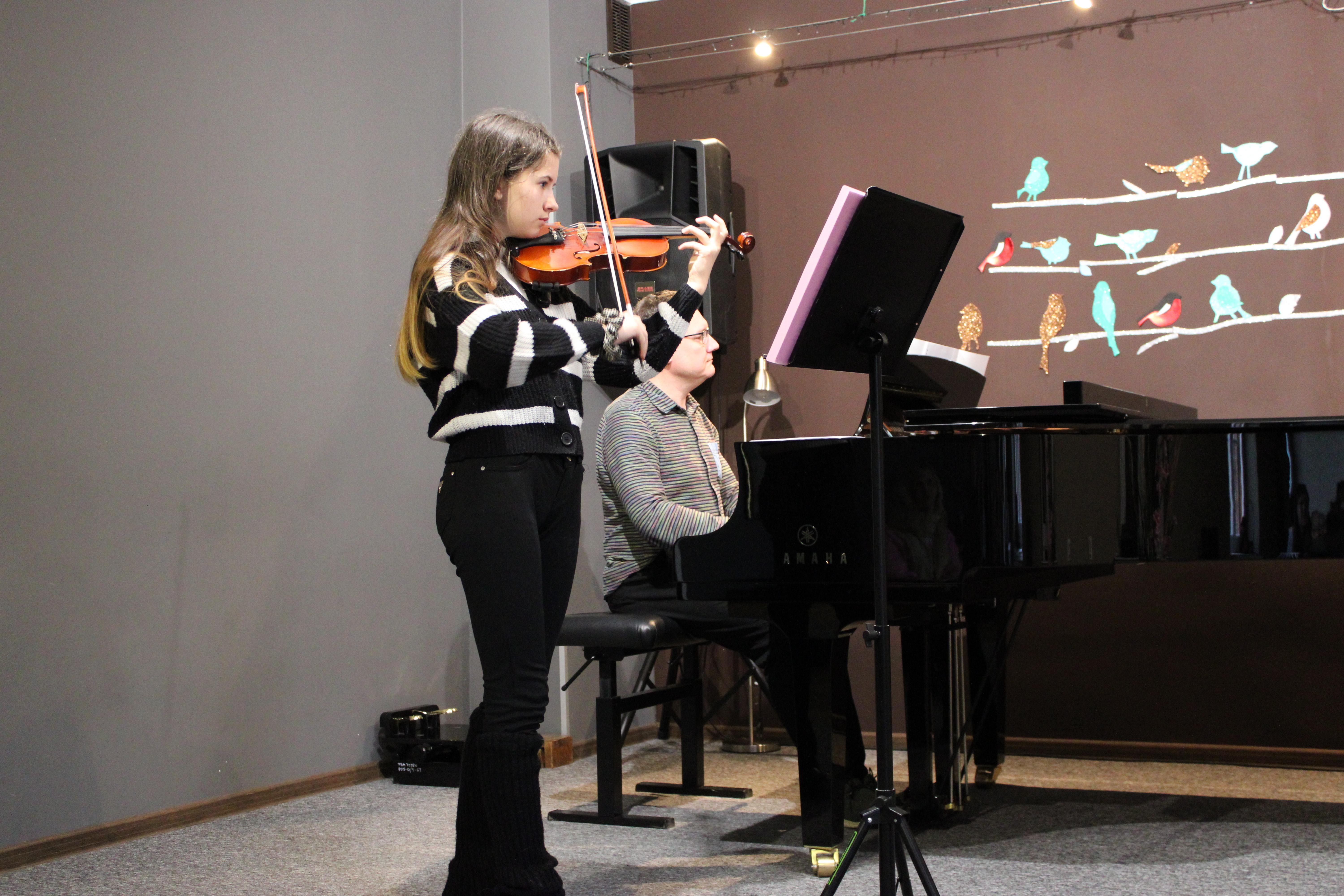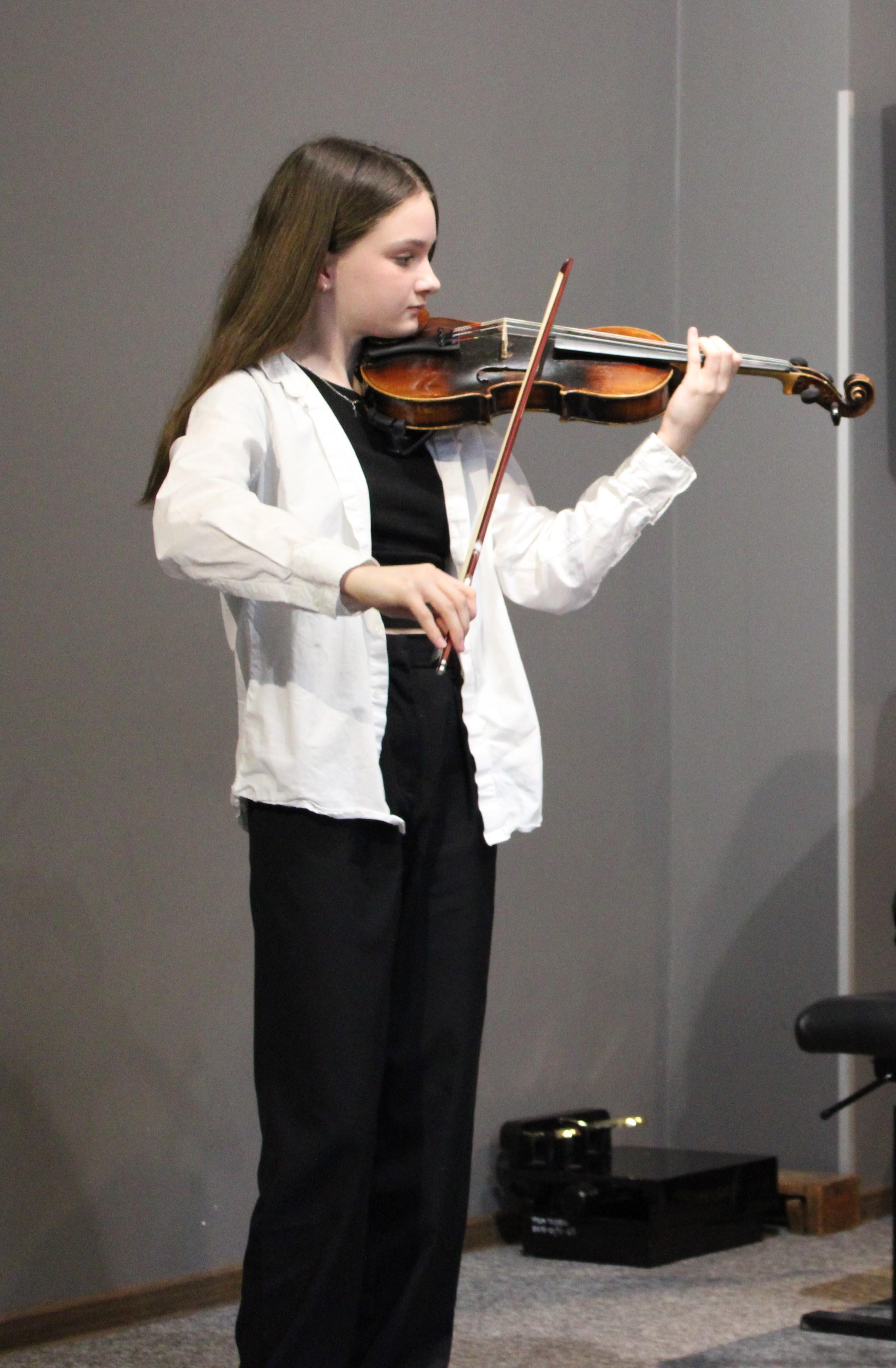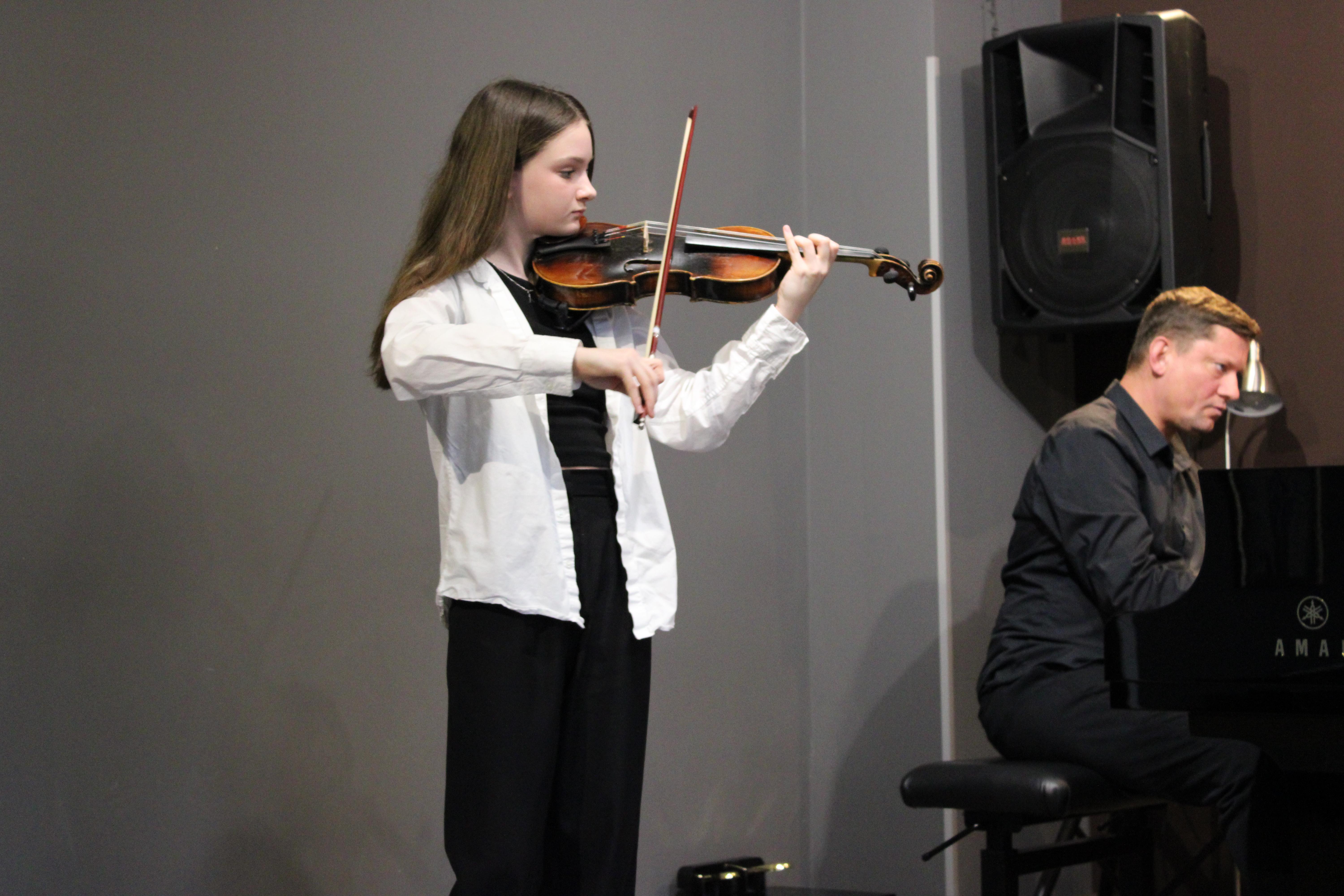 19 kwietnia 2024 odbył się kolejny koncert klasy skrzypiec p. Marty Kołodziejskiej-Kacprzak. Tym razem na scenie zaprezentowali się: Kajetan Woźniak, Julia Piernicka, Iga Hencel, Nicole Gołucka, Liwia Cendal, Oliwia Lubowiedzka, Martyna Gorlikowska, Iga Bakuła i Agata Sikorska. Skrzypkom przy fortepianie towarzyszyli p. Marcin Hinz i p. Marcin Maliszewski. Wszyscy artyści pięknie zaprezentowali się w swoim repertuarze, który w przyszłości będą prezentować na konkursach i egzaminach. Brawa i gratulacje dla wykonawców.