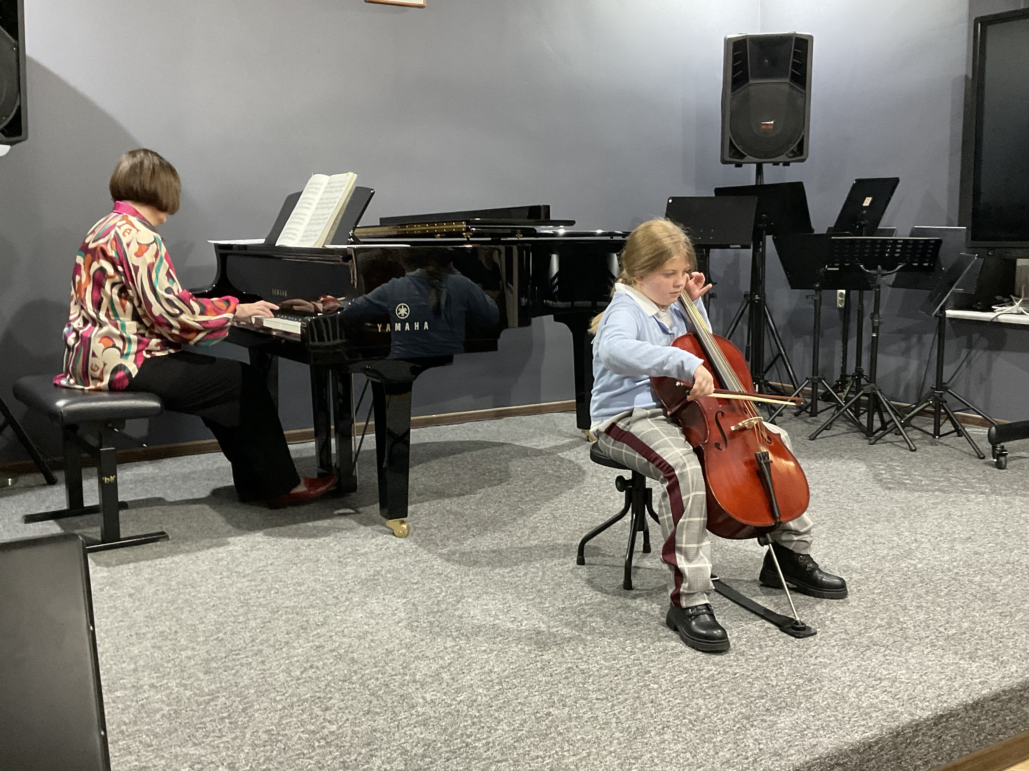 Młodzi wiolonczeliści z dużym zaangażowaniem zaprezentowali przygotowane utwory, pokazując swoje umiejętności oraz postępy, jakie poczynili w ostatnich tygodniach. Koncert był świetną okazją do nabrania scenicznego doświadczenia i sprawdzenia się przed zbliżającymi się prezentacjami śródrocznymi.