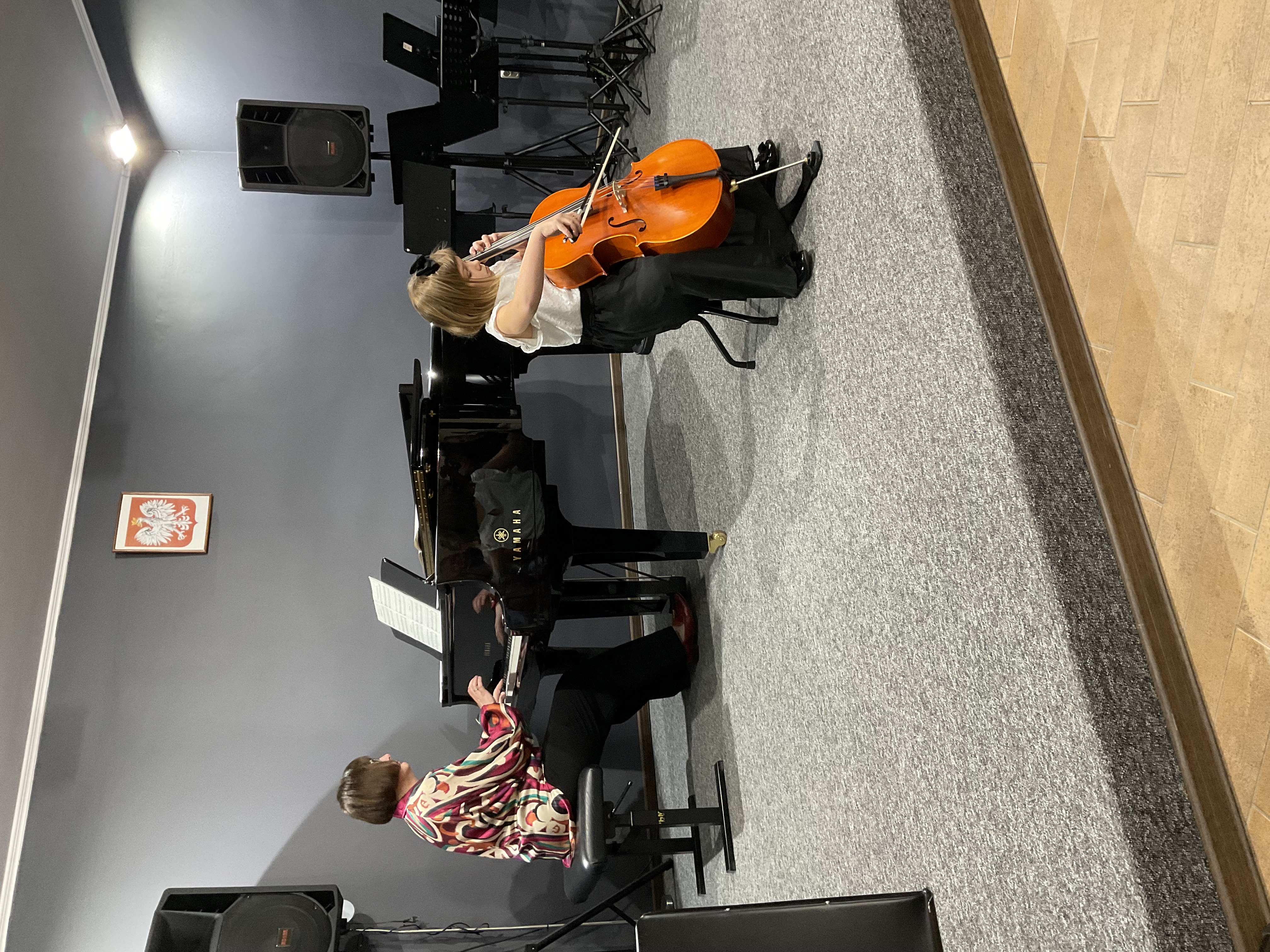 W poniedziałek 24 listopada o godzinie 17:00, odbył się koncert klasy wiolonczeli pani Nikoli Fredy, który przyniósł wiele pięknych muzycznych chwil. Uczniom akompaniowała przy fortepianie p. Monika Madej-Strukiel, dodając występom wyjątkowego brzmienia i wsparcia.