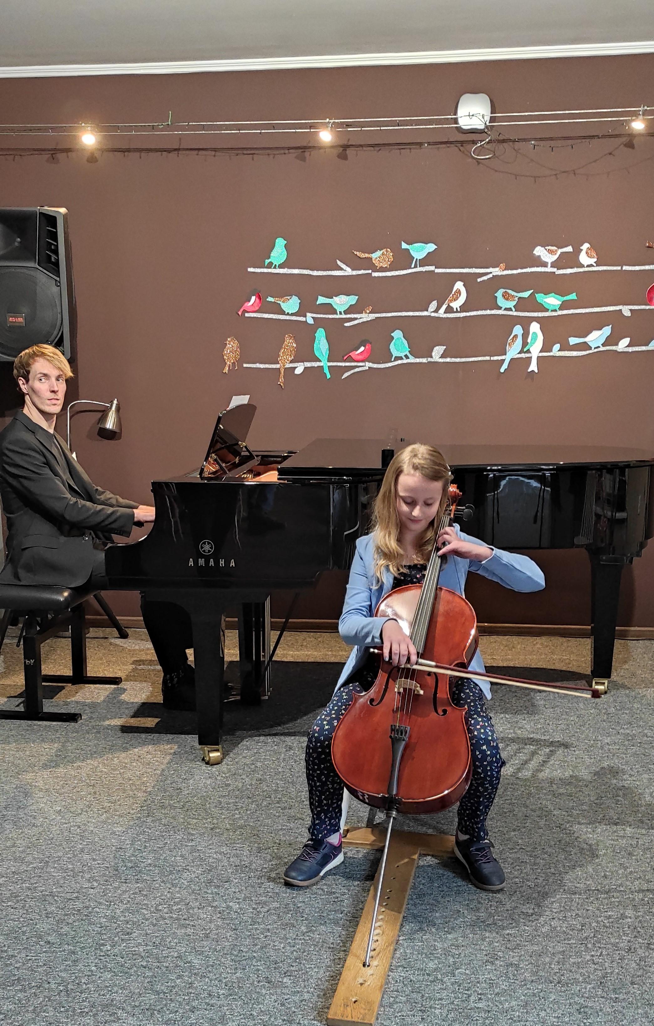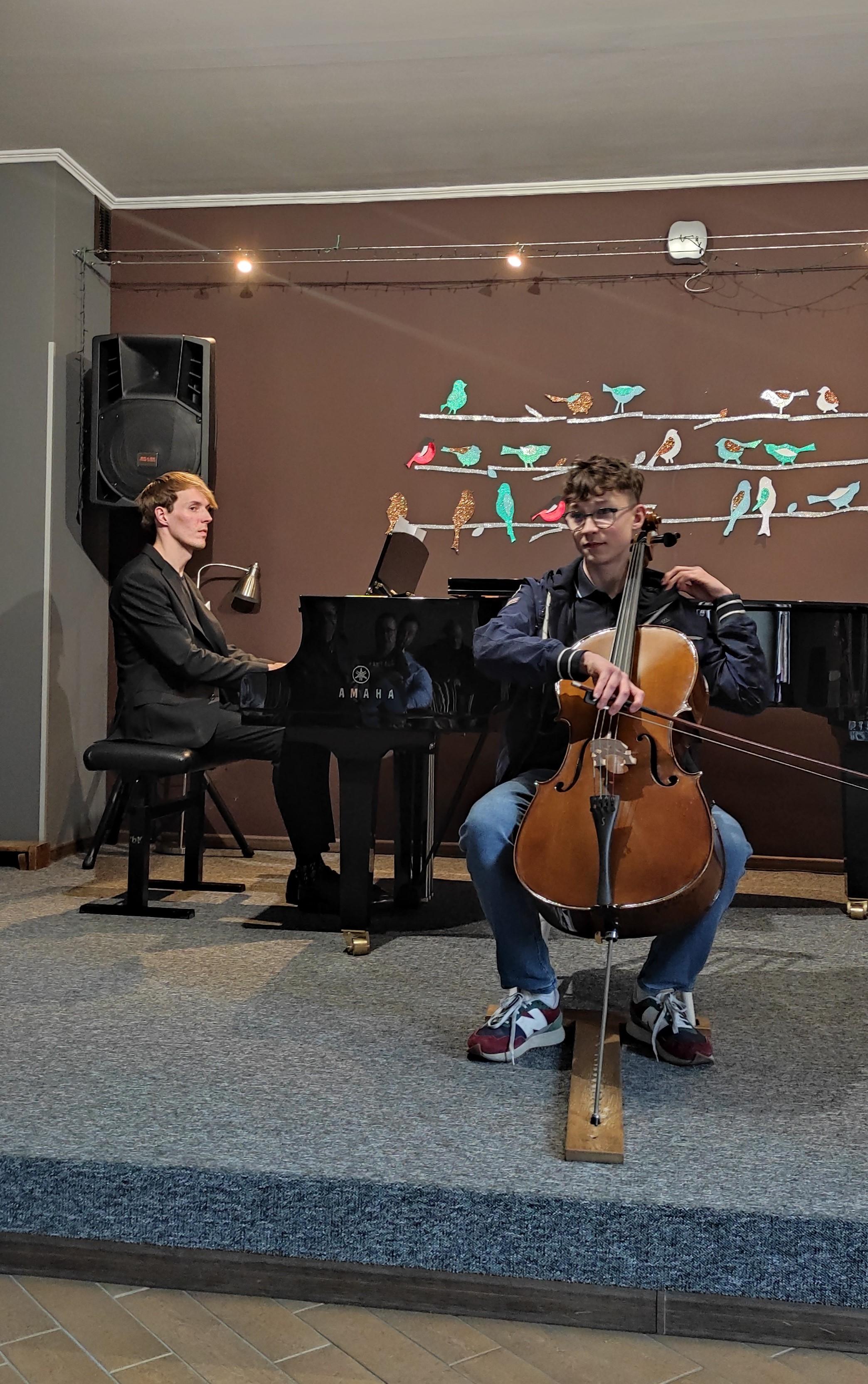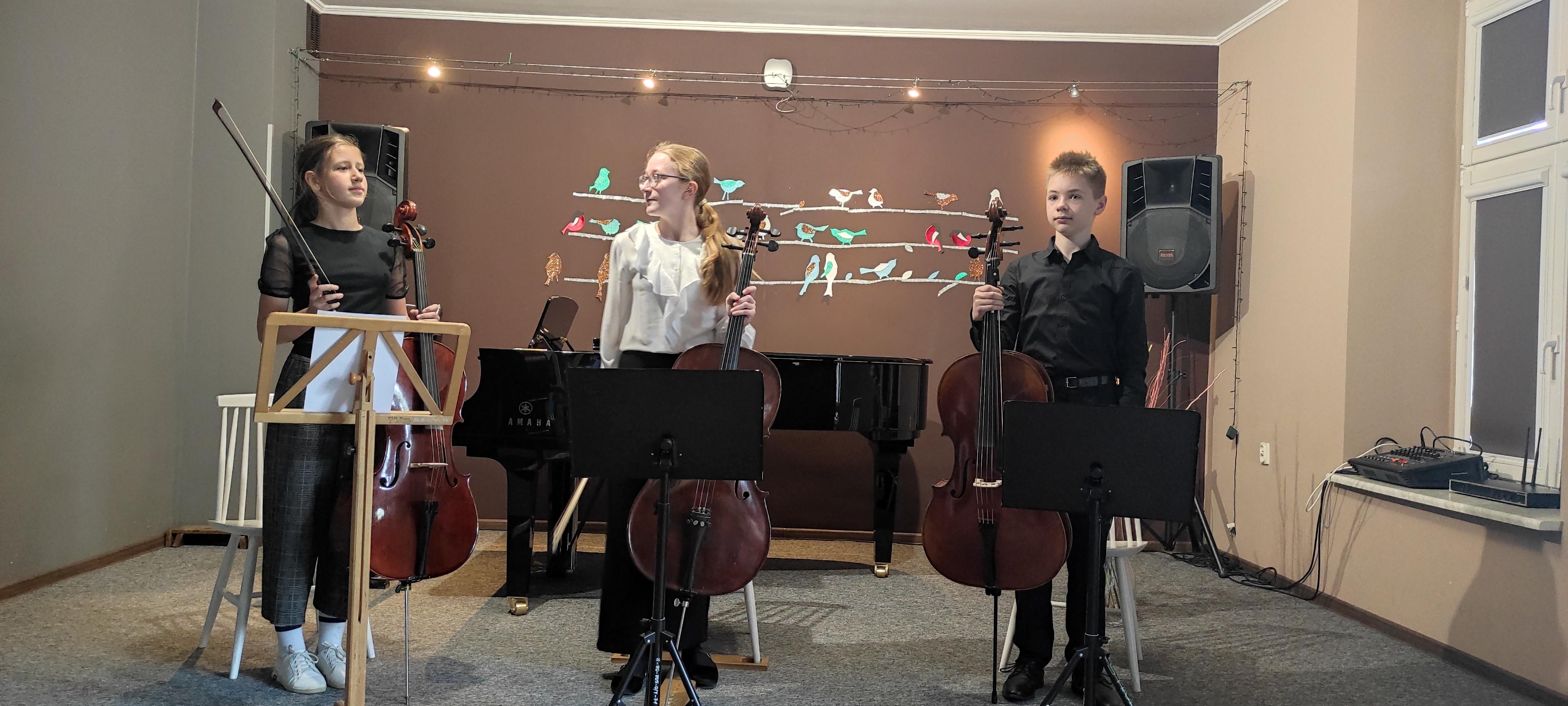 15 kwietnia 2024 swój Koncert zagrali wiolonczeliści z klasy p. Ludmiły Strzałkowskiej i p. Mirosława Czochóra. Uczniom przy fortepianie towarzyszył p. Filip Grzelachowski. Na zakończenie zagrało trio wiolonczelowe, prowadzone przez p. Mirosława Czochóra. Koncert odbył się w sali koncertowej szkoły muzycznej. Uczniowie z powodzeniem zaprezentowali się na scenie, a publiczność dała temu wyraz gromkimi brawami.