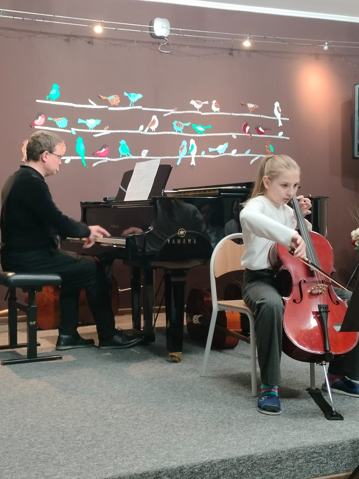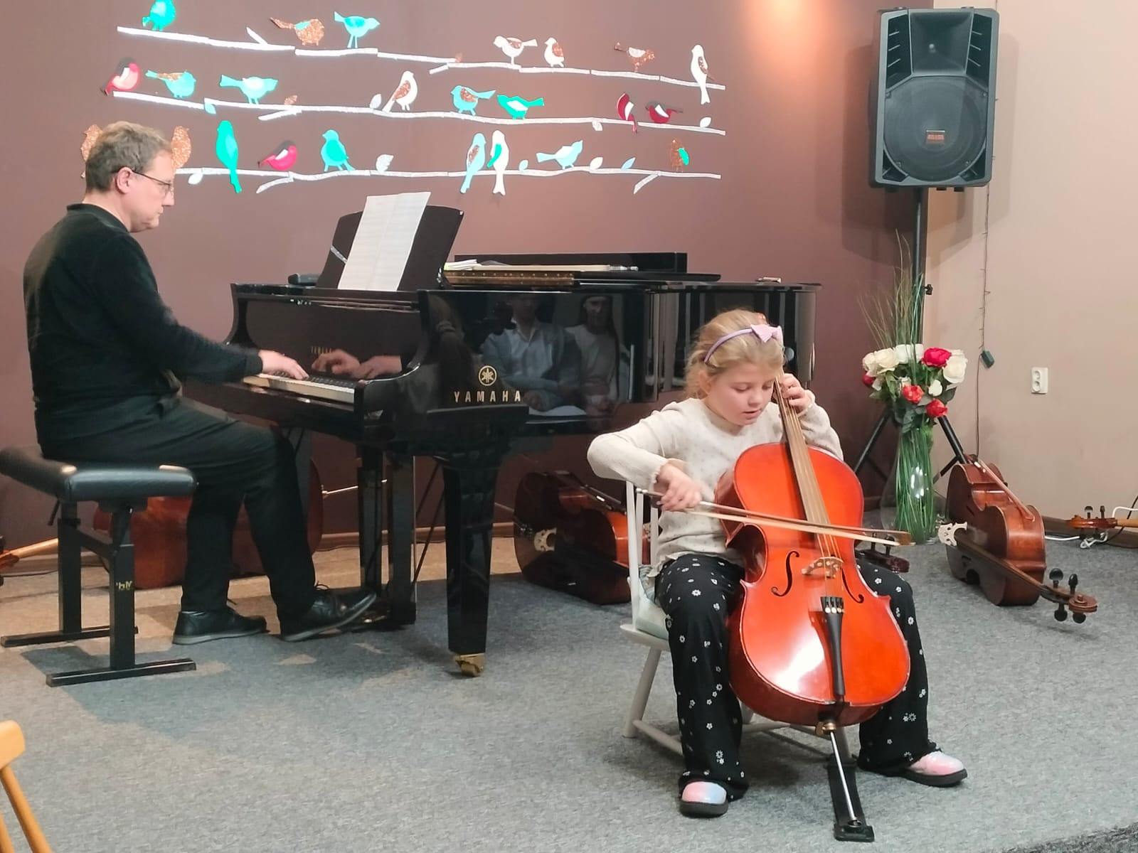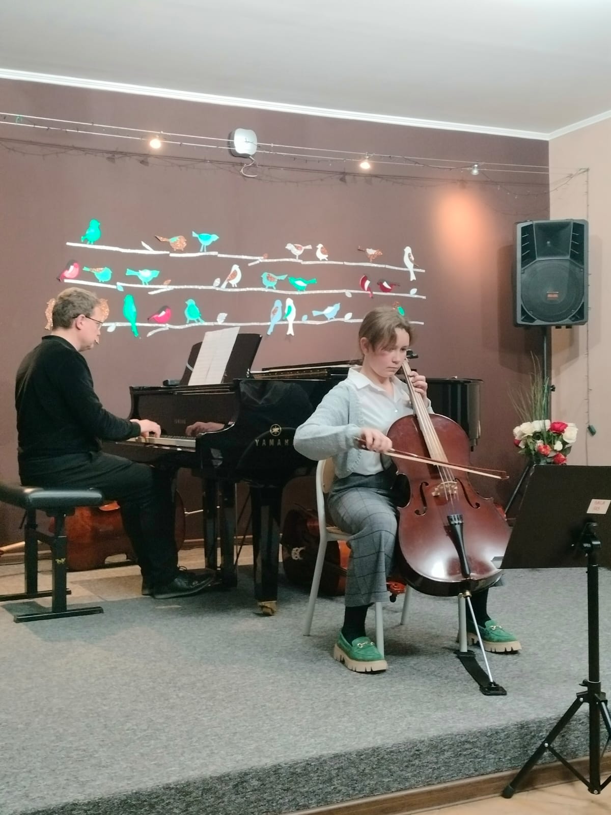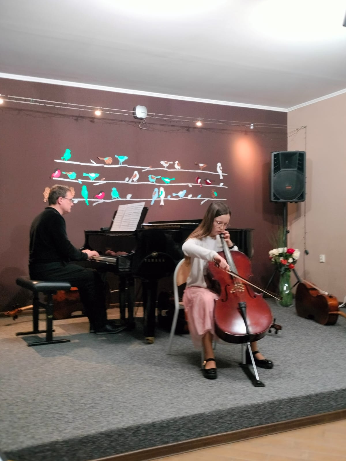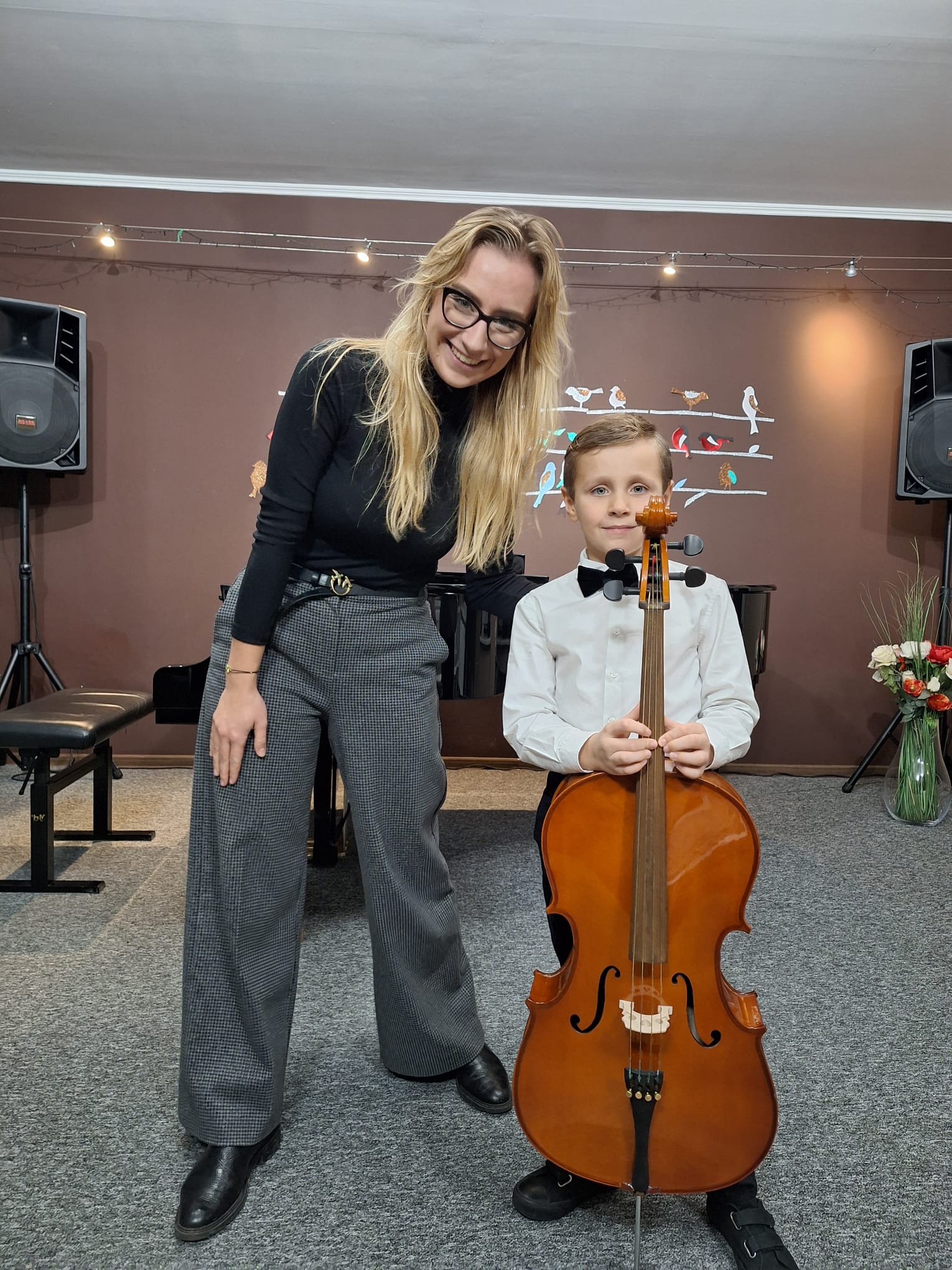 26 listopada 2024 w naszej sali koncertowej rozbrzmiały dźwięki wiolonczel, za sprawą Koncertu klasy wiolonczeli p. Nikoli Fredy. Wszyscy uczniowie wystąpili z towarzyszeniem fortepianu, na którym grał p. Marcin Hinz. Gratulacje dla wszystkich wykonawców!