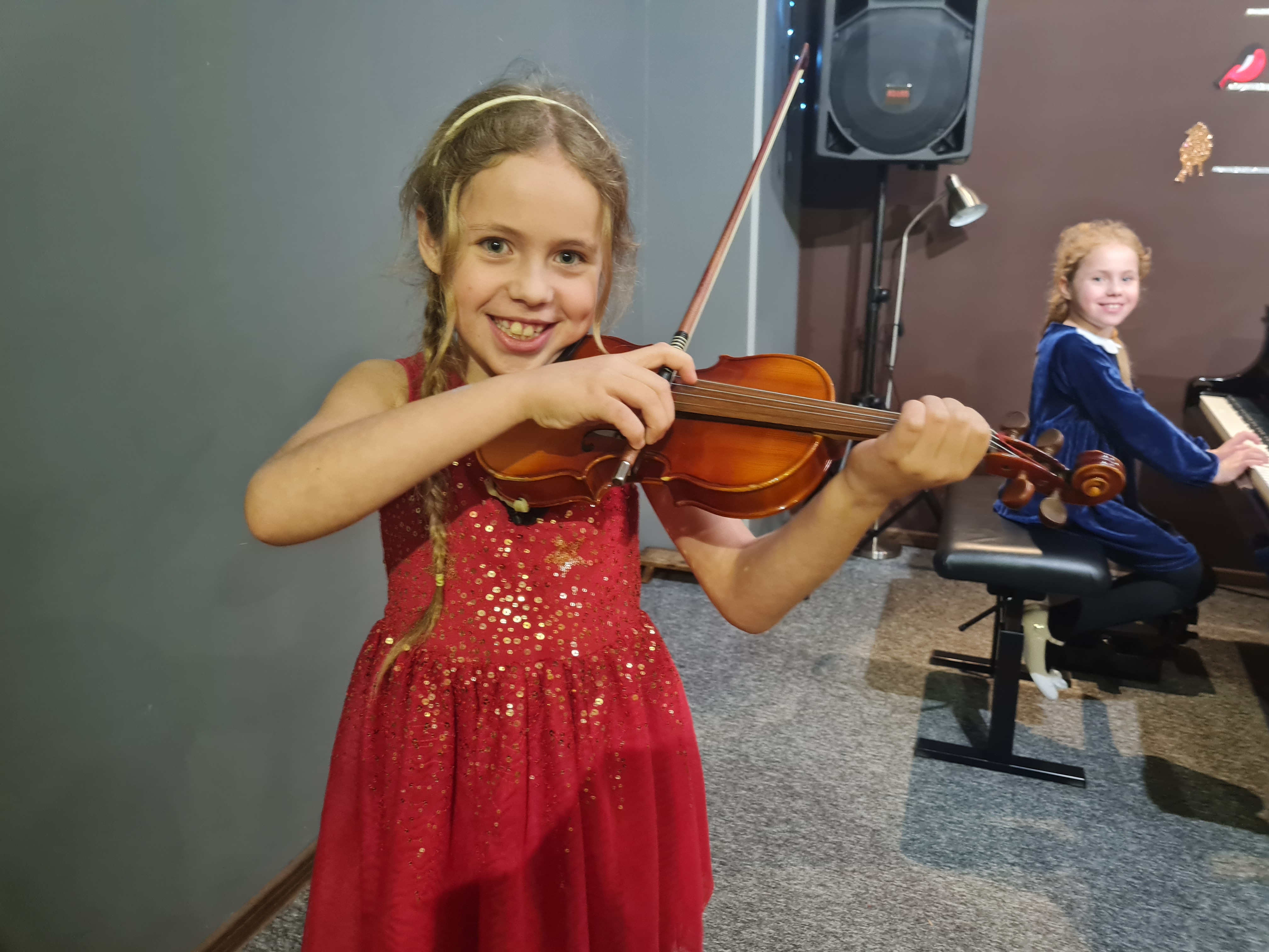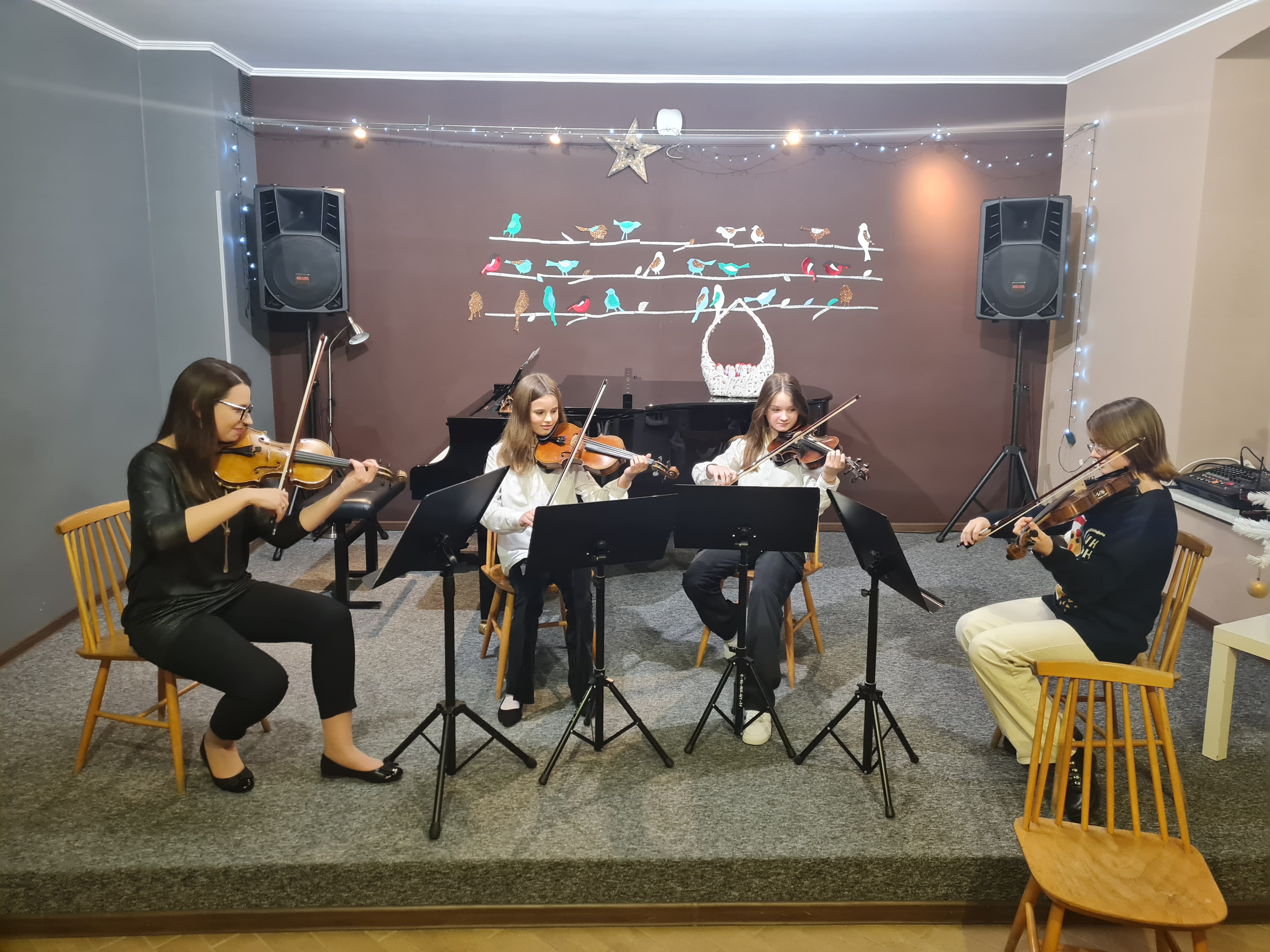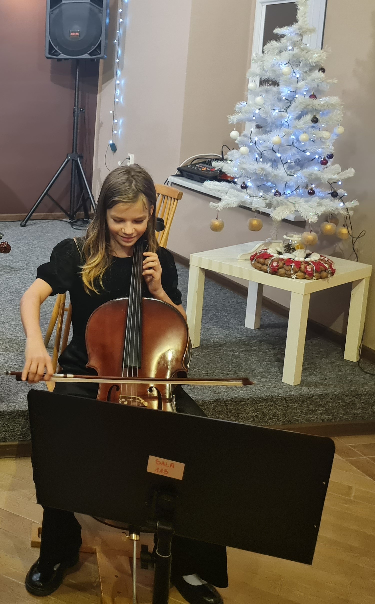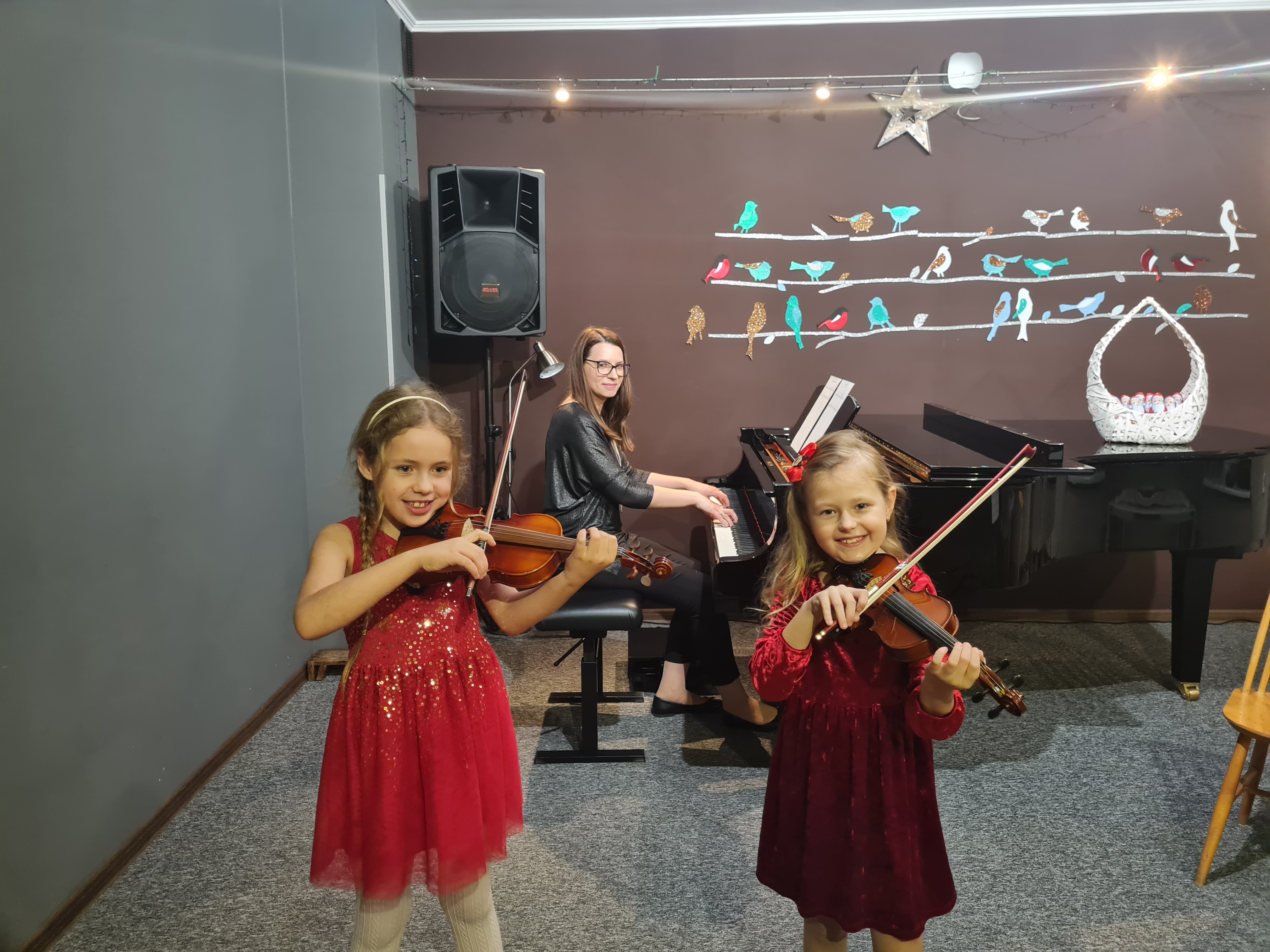 20 grudnia 2023 kolędy zagrali (i zaśpiewali) skrzypkowie - uczniowie p. Marty Kołodziejskiej-Kacprzak oraz zaproszeni goście. Polskie kolędy i piosenki świąteczne w różnych składach i ciekawych aranżacjach wykonali: Iga i Lena Hencel, Nicole Gołucka, Kajetan Woźniak, Liwia Cendal, Pola Piernicka, Martyna Gorlikowska, Agata Sikorska, Iga Bakuła oraz p. Marta Kołodziejska-Kacprzak. Jak zawsze nie zabrakło wspólnego śpiewu z publicznością. Koncert odbył się w sali koncertowej szkoły. Gratulujemy udanych występów.