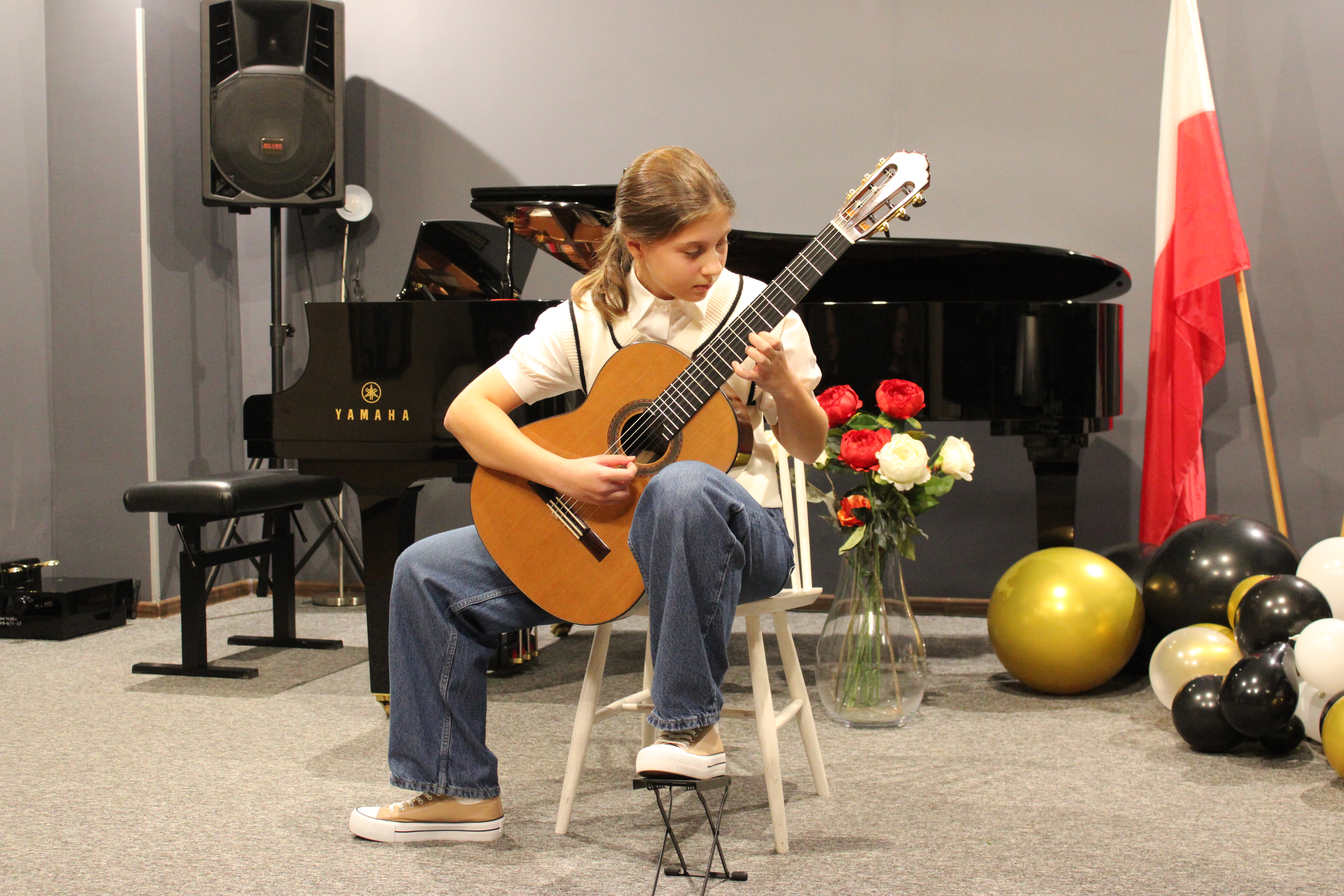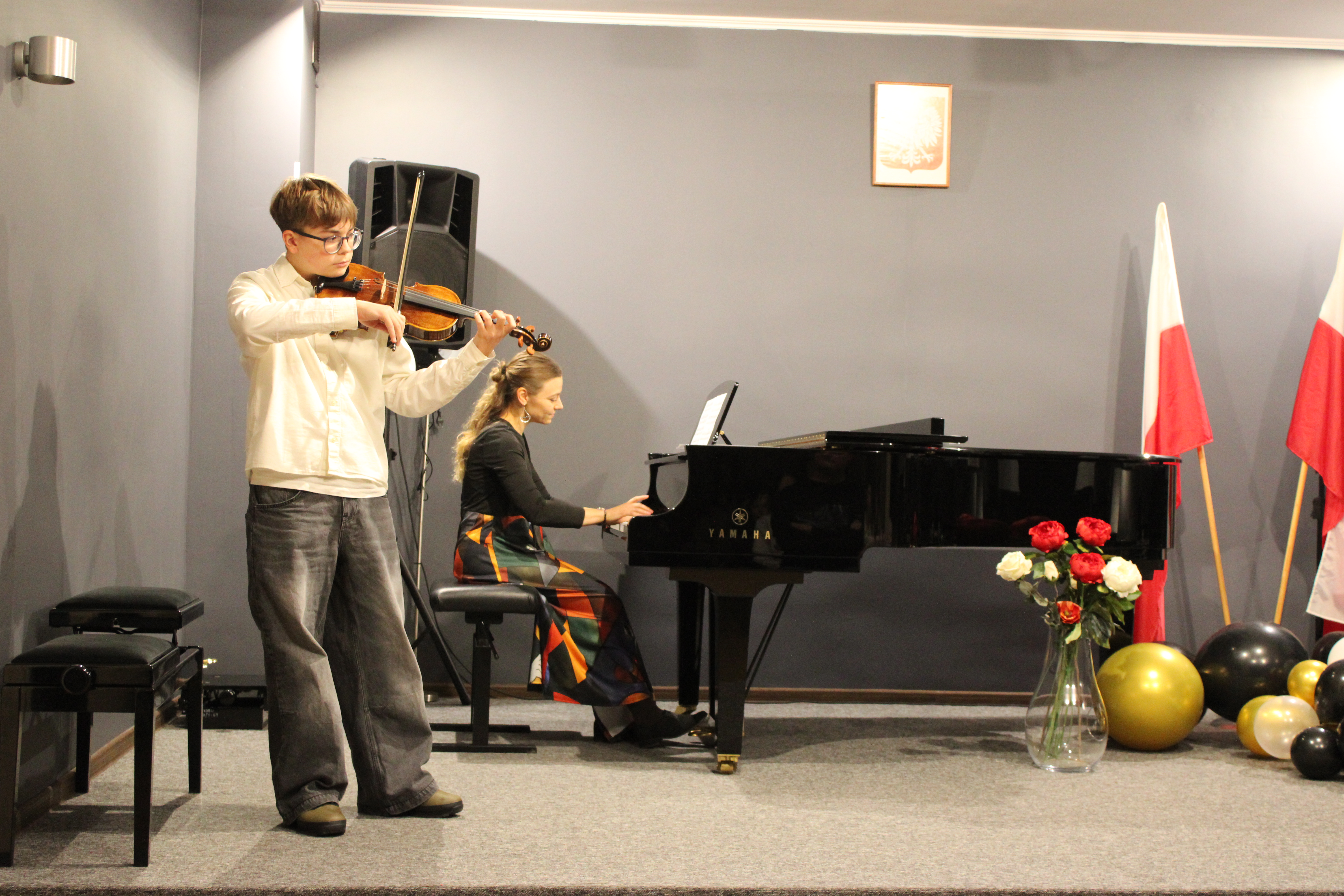 18 listopada 2025 r. w sali koncertowej naszej szkoły odbyła się Druga część Koncertu muzyki polskiej. Tym razem nasi uczniowie zaprezentowali się w repertuarze solowym, z towarzyszeniem akompaniamentu fortepianu oraz w duetach. W ich wykonaniu usłyszeliśmy kompozycje polskich twórców m.in. naszej patronki szkoły - Janiny Garści, a także Fryderyka Chopina, Adama Wrońskiego, Tatiany Stachak, Mirosława Drożdżowskiego i wielu innych. Wielkie brawa dla wszystkich wykonawców - wasze interpretacje były pełne pasji. Gratulacje także dla nauczycieli pianistów-akompaniatorów i nauczycieli, którzy przygotowali uczniów do występów. Koncert prowadziła p. Alicja Hawryluk.