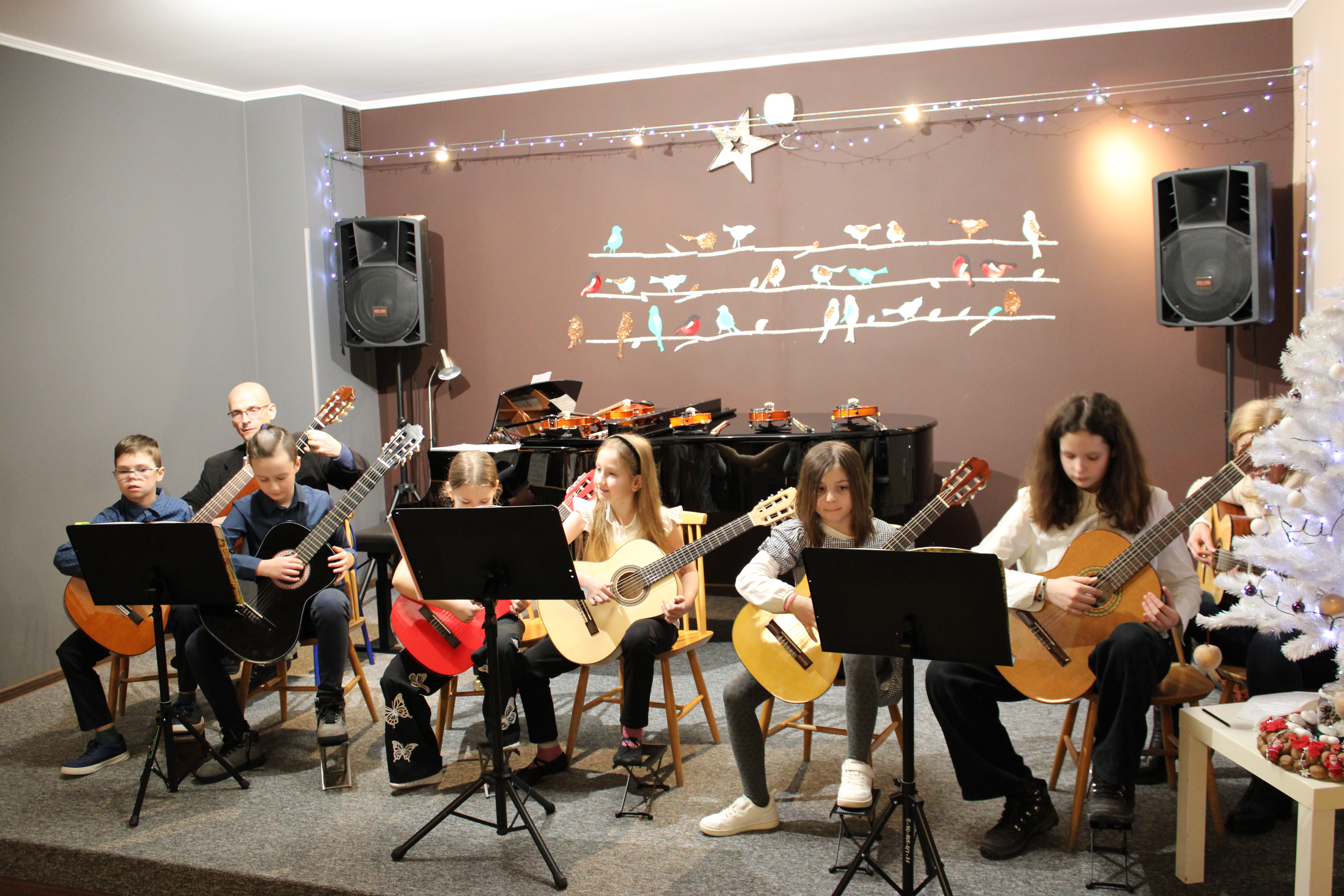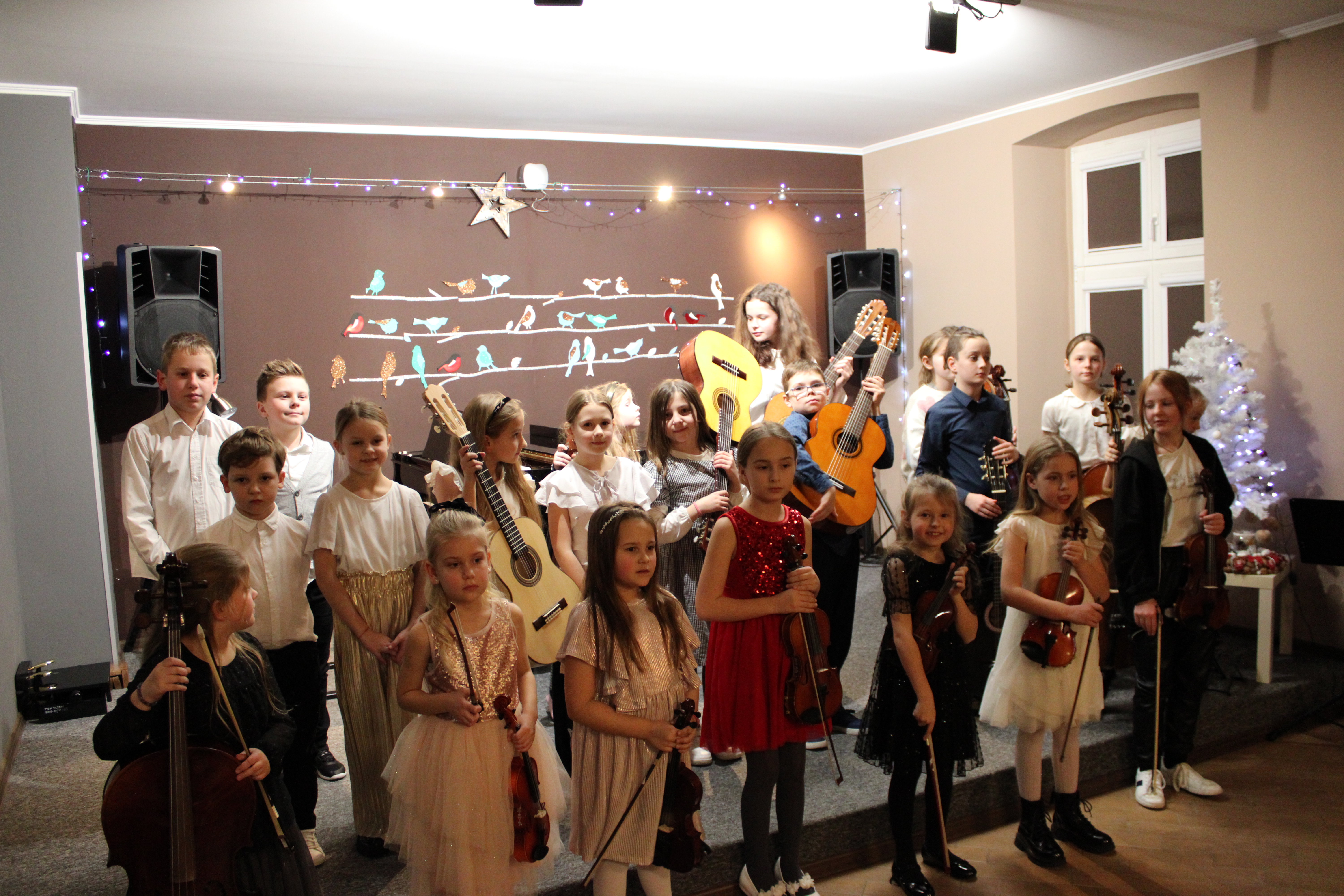 15 stycznia 2024 r. odbył się Koncert "Najpiękniejsze melodie z repertuaru klasy pierwszej" w wykonaniu skrzypków, wiolonczelistów, gitarzystów i akordeonistów uczących się w klasie 1 cyklu 6-letniego i 1 cyklu 4-letniego. Na scenie wystąpiło aż 22 młodych muzyków, którzy zagrali świetny koncert. Były występy solowe oraz zespołowe. Serdecznie gratulujemy udanych występów !!