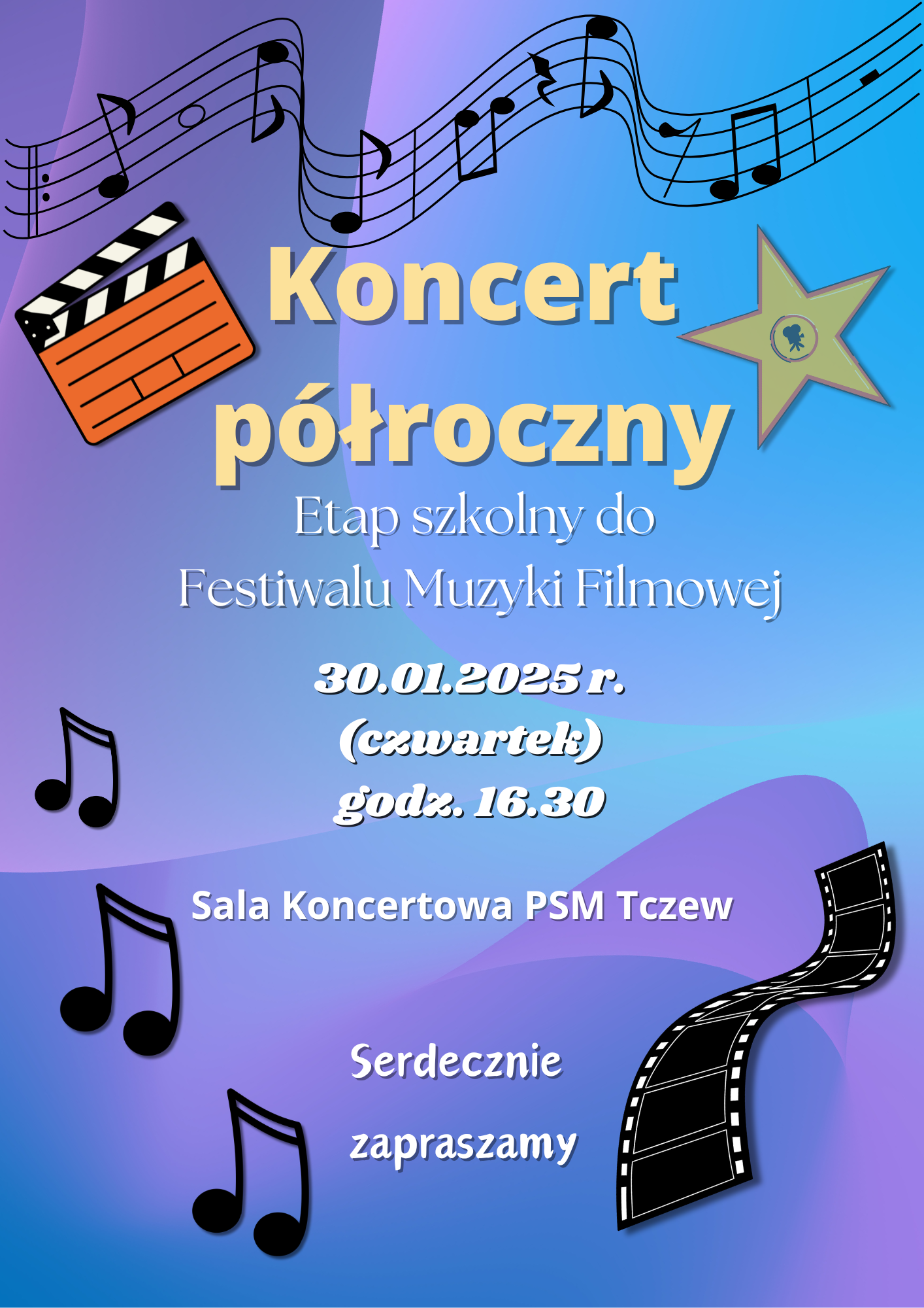 30 stycznia br. na godzinę 16:30 zapraszamy do szkoły muzycznej, gdzie odbędzie się Koncert półroczny oraz Etap szkolny do Festiwalu Muzyki Filmowej. W wykonaniu naszych uczniów usłyszymy melodie z bajek, filmów i gier komputerowych, a także najpiękniejsze utwory z dziecięcego repertuaru klasycznego. Zapraszamy.