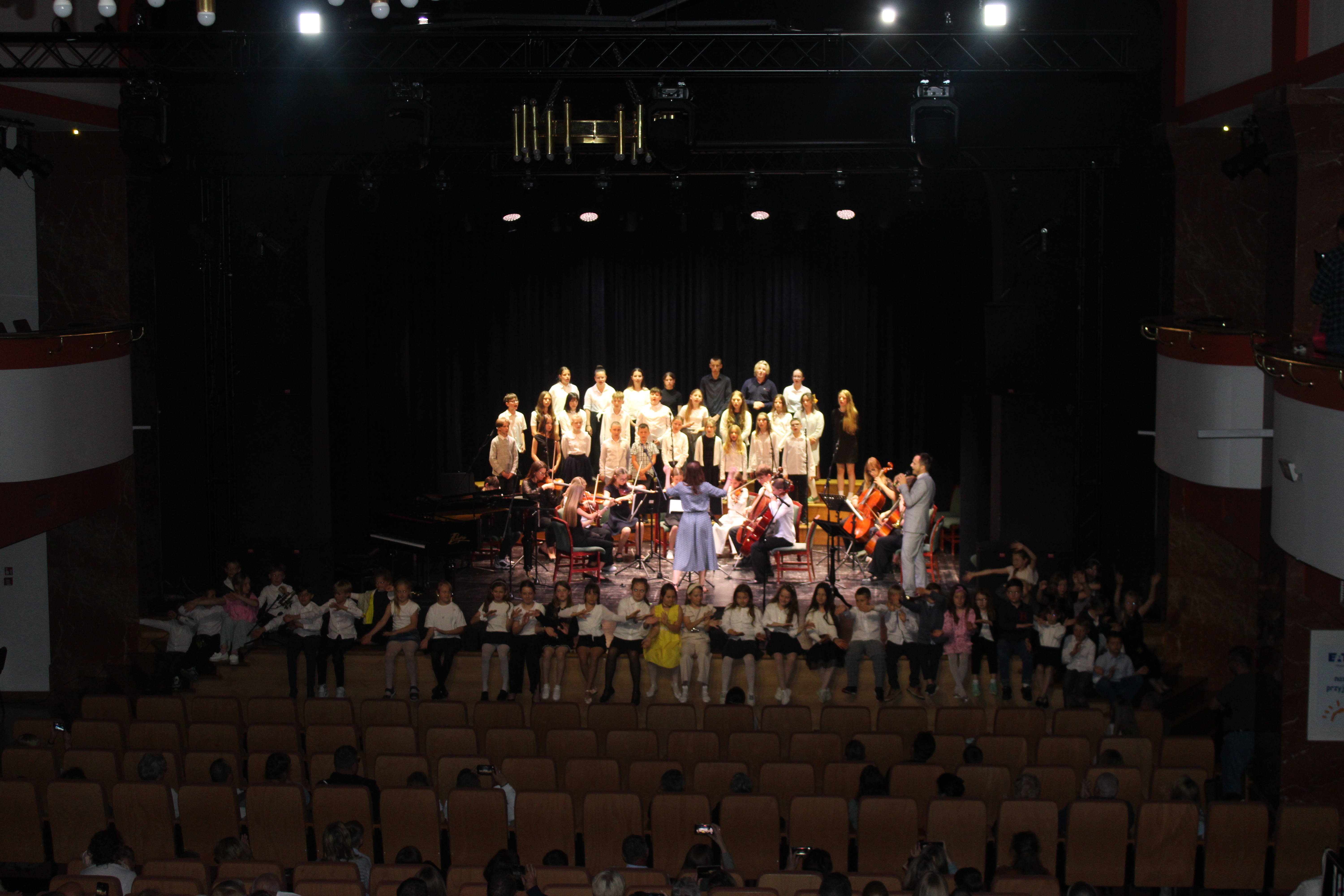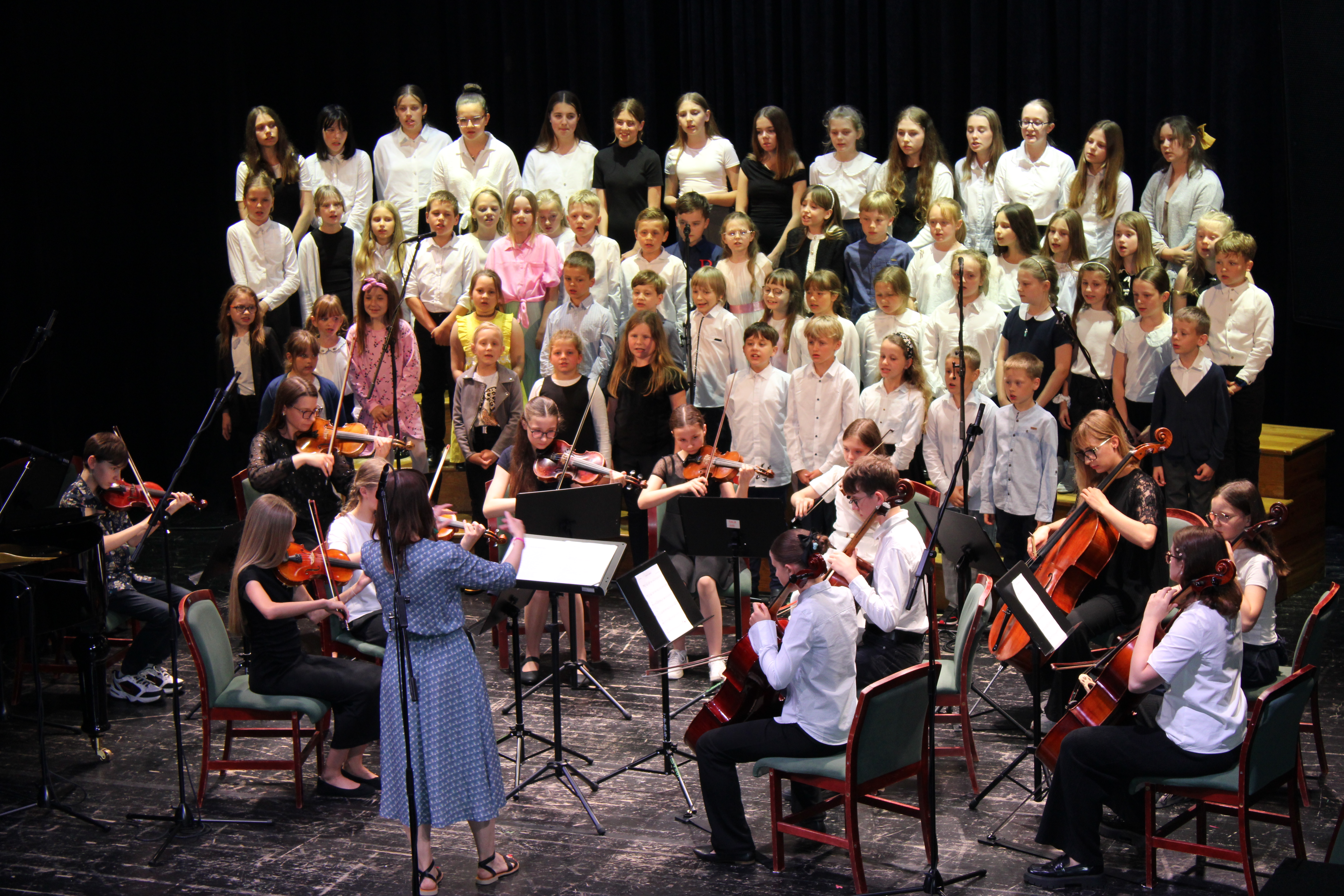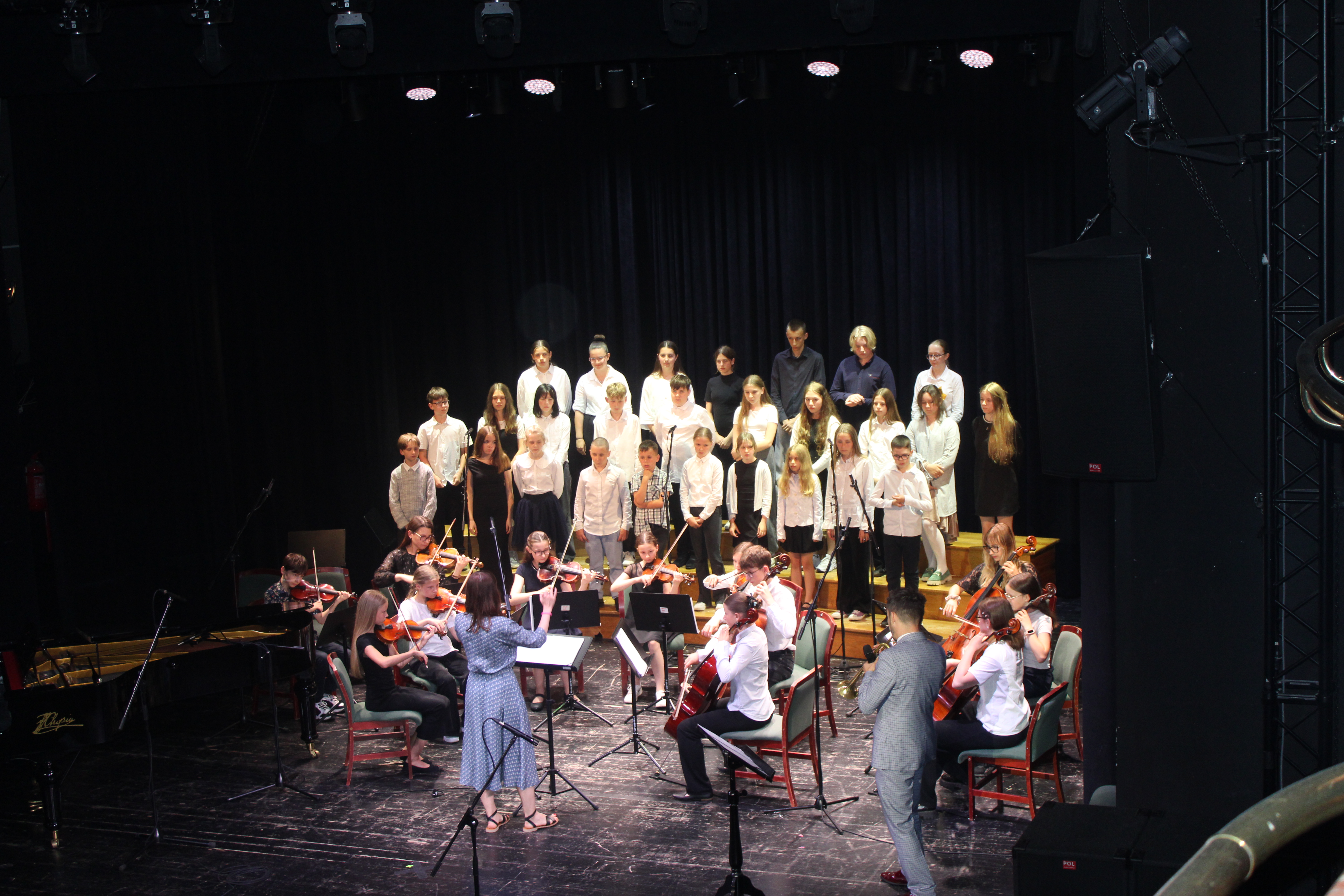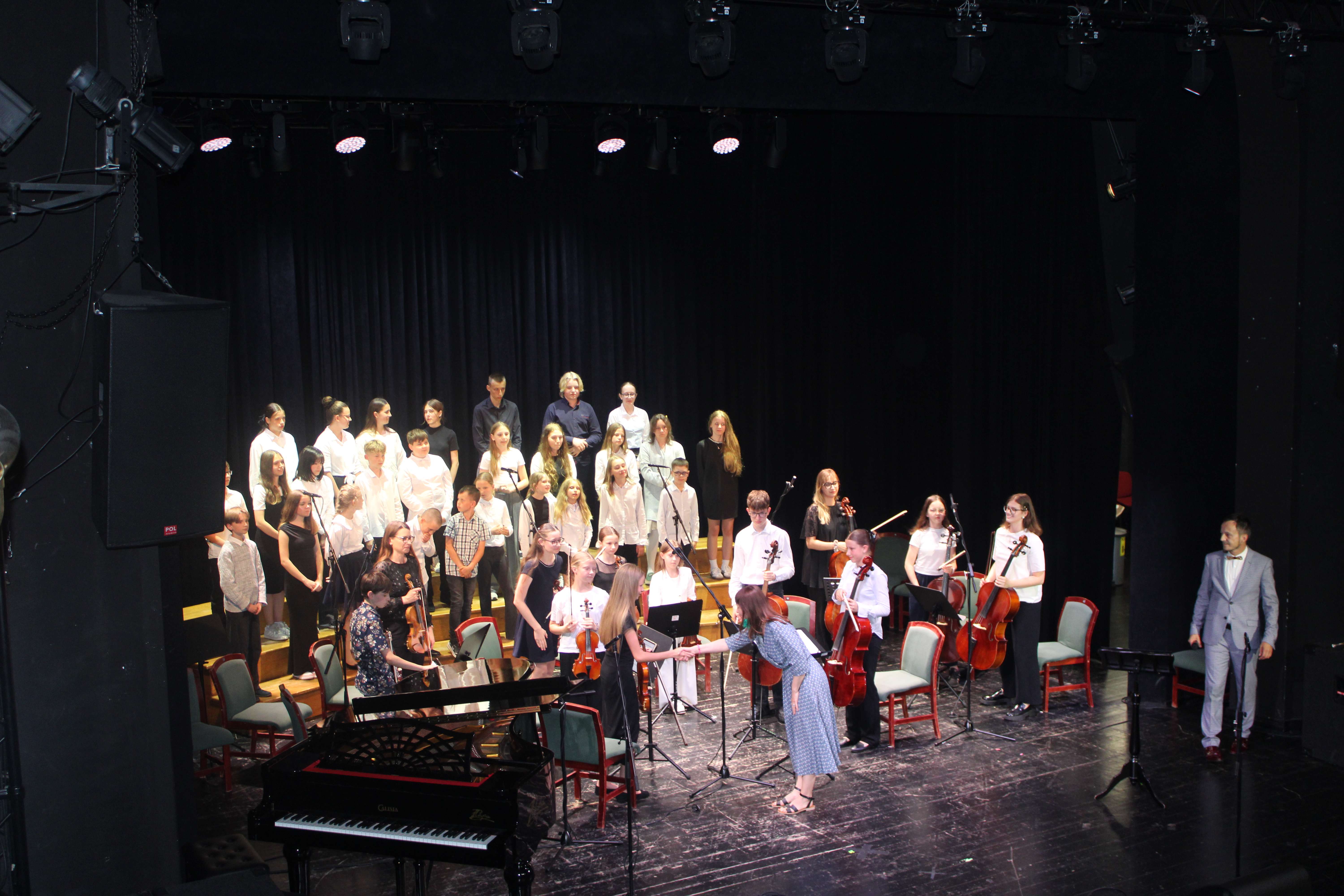 16 czerwca 2025 r. w Sali widowiskowej Centrum Kultury i Sztuki w Tczewie muzycznie podsumowaliśmy rok szkolny 2024/2025. Na jednej scenie ramię w ramię wystąpili uczniowie i nauczyciele a byli to: wielkie połączone siły - chór szkolny, grupy rytmiki (przygotowanie p. Agnieszka Rogowicz-Kowalska), zespół instrumentalny (przygotowanie p. Marta Kołodziejska-Kacprzak i p. Nikola Freda) oraz solista - dyrektor Piotr Kowalkowski, a także dwie orkiestry gitarowe pod dyrekcją p. Anny Bukowskiej i p. Antoniego Jędrzejewskiego, zespół akordeonowy pod przewodnictwem p. Marka Gleinerta, zespół smyczkowy pod dyrekcją p. Nikoli Fredy, zespół klarnetowy przygotowany przez p. Aleksandrę Głowacką, duet fortepianowy: Alicja Arczyńska i Aleksandra Kornas (przygotowanie p. Alicja Hawryluk) oraz soliści: Maja Midura (akordeon, naucz. Marek Gleinert), Dominik Franczak (akordeon, naucz. Marek Gleinert), Aleksandra Kornas (fortepian, naucz. Alicja Hawryluk), Zofia Woźny (naucz. Ludmiła Strzałkowska) wraz z pianistą p. Filipem Grzelachowskim, Natalia Czechanowska (wiolonczela, naucz. Mirosław Czochór) również z pianistą p. Filipem Grzelachowskim oraz Oliwia Lubowiedzka (skrzypce, naucz. Marta Kołodziejska-Kacprzak) razem z pianistką p. Moniką Madej-Strukiel. Koncert poprowadził p. Miłosz Janiak.
