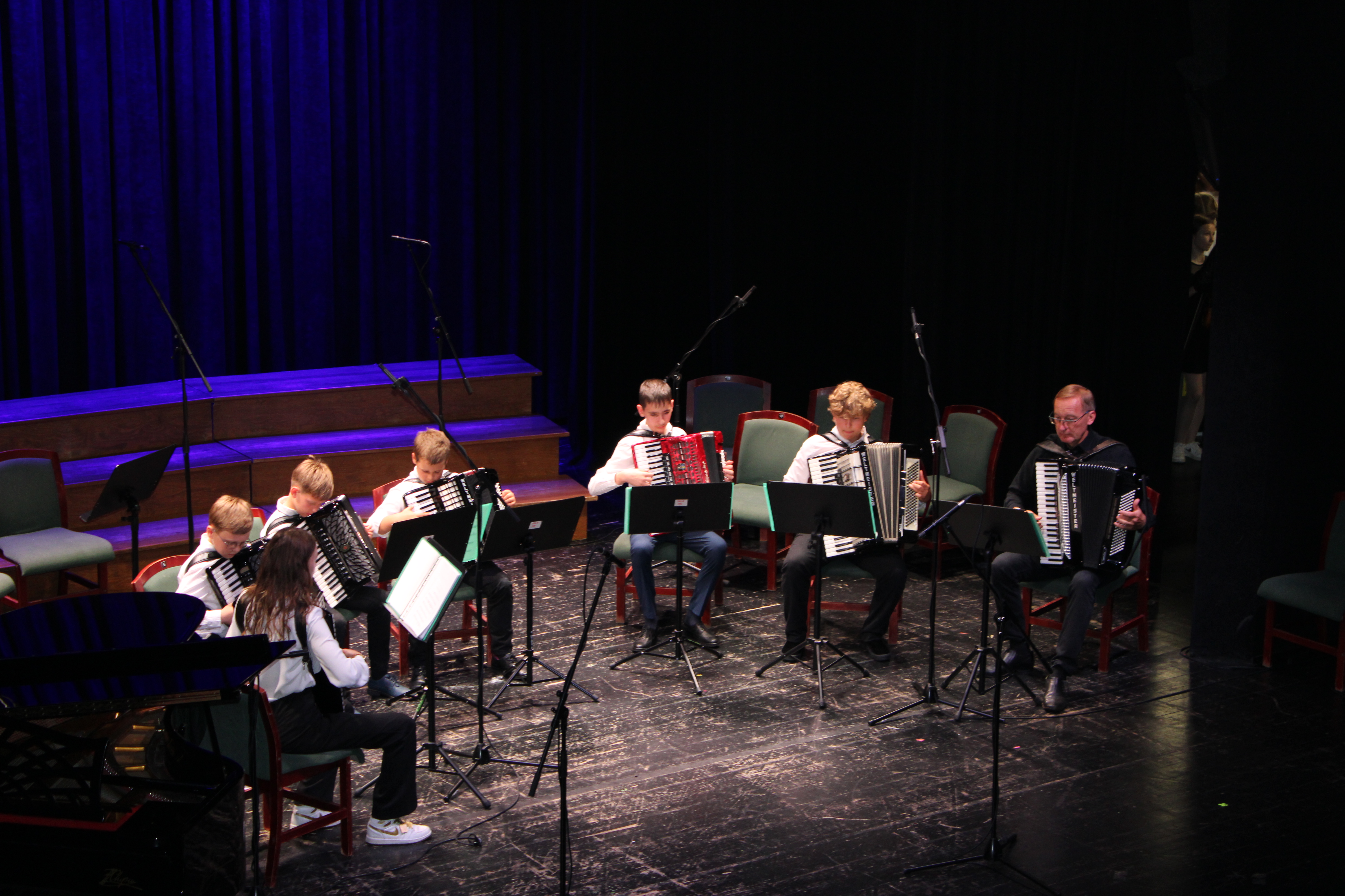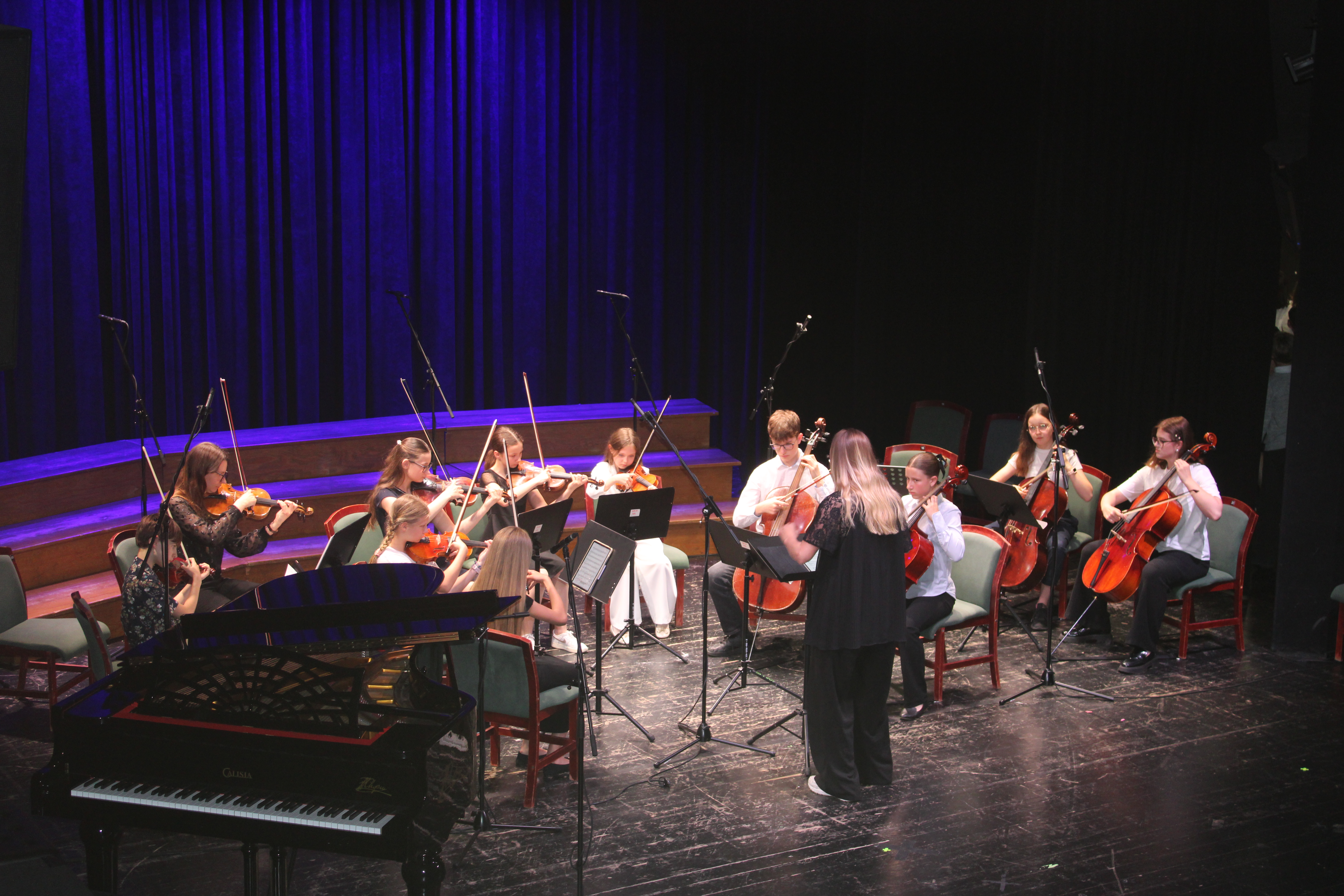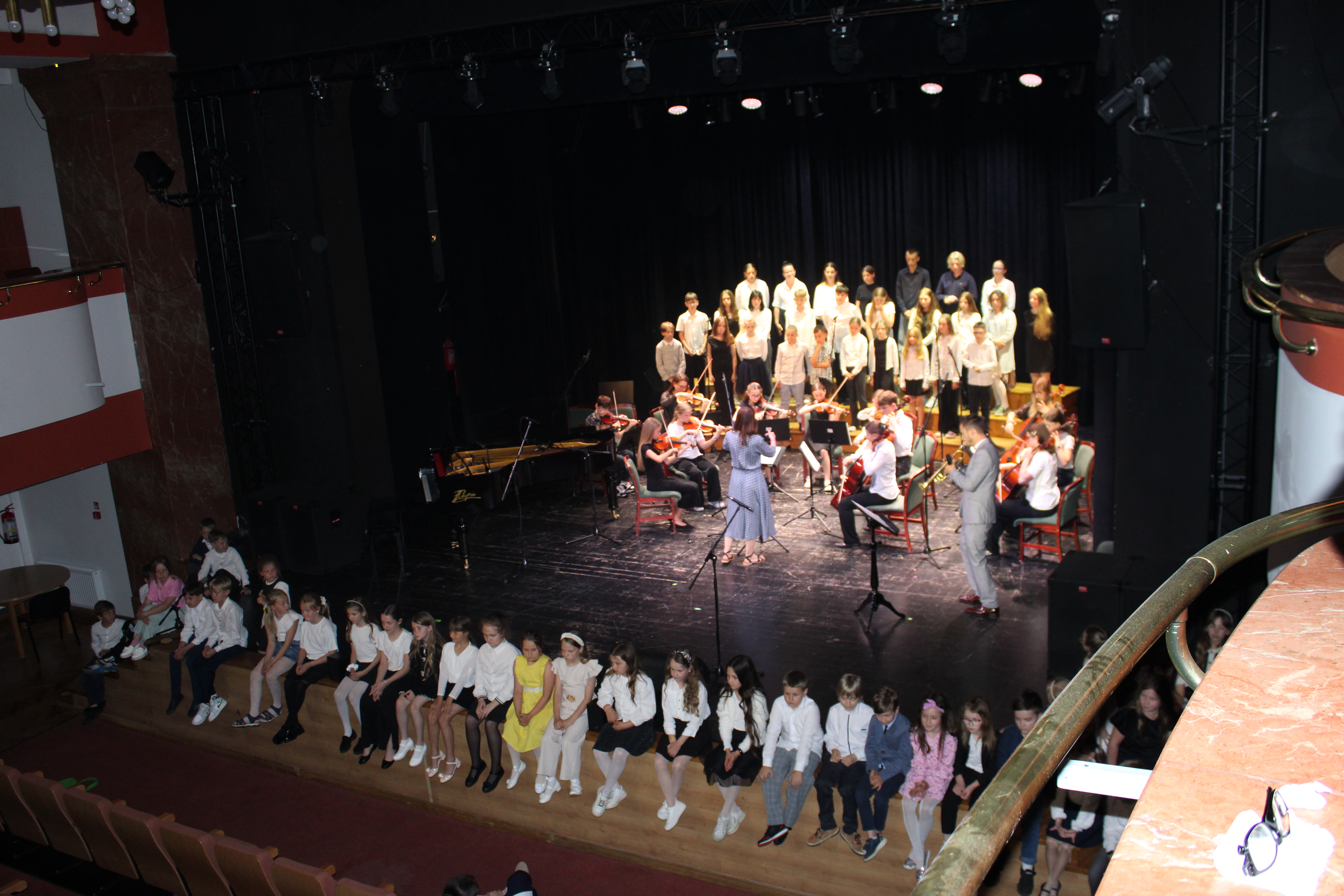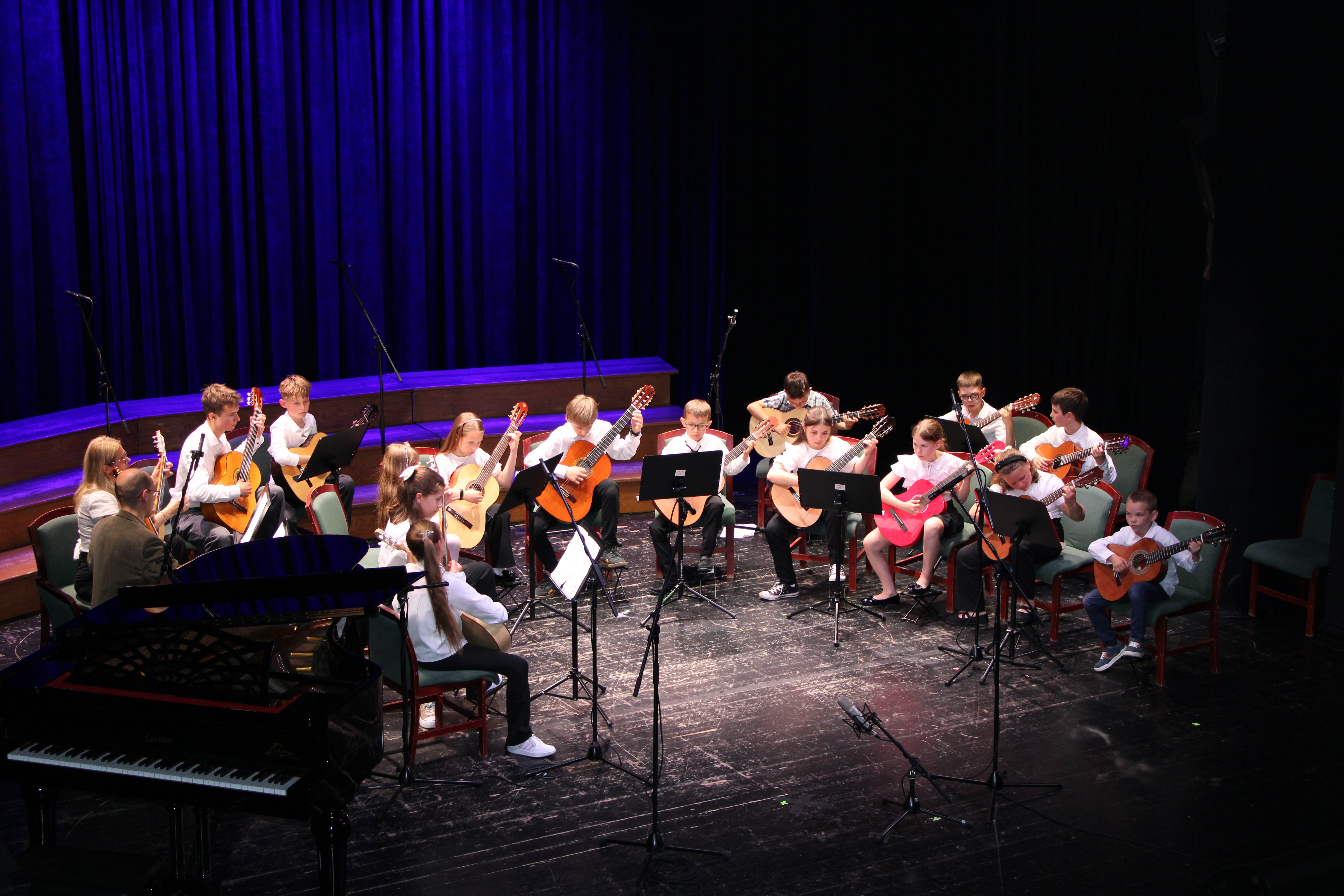 16 czerwca 2025 r. w Sali widowiskowej Centrum Kultury i Sztuki w Tczewie muzycznie podsumowaliśmy rok szkolny 2024/2025. Na jednej scenie ramię w ramię wystąpili uczniowie i nauczyciele a byli to: wielkie połączone siły - chór szkolny, grupy rytmiki (przygotowanie p. Agnieszka Rogowicz-Kowalska), zespół instrumentalny (przygotowanie p. Marta Kołodziejska-Kacprzak i p. Nikola Freda) oraz solista - dyrektor Piotr Kowalkowski, a także dwie orkiestry gitarowe pod dyrekcją p. Anny Bukowskiej i p. Antoniego Jędrzejewskiego, zespół akordeonowy pod przewodnictwem p. Marka Gleinerta, zespół smyczkowy pod dyrekcją p. Nikoli Fredy, zespół klarnetowy przygotowany przez p. Aleksandrę Głowacką, duet fortepianowy: Alicja Arczyńska i Aleksandra Kornas (przygotowanie p. Alicja Hawryluk) oraz soliści: Maja Midura (akordeon, naucz. Marek Gleinert), Dominik Franczak (akordeon, naucz. Marek Gleinert), Aleksandra Kornas (fortepian, naucz. Alicja Hawryluk), Zofia Woźny (naucz. Ludmiła Strzałkowska) wraz z pianistą p. Filipem Grzelachowskim, Natalia Czechanowska (wiolonczela, naucz. Mirosław Czochór) również z pianistą p. Filipem Grzelachowskim oraz Oliwia Lubowiedzka (skrzypce, naucz. Marta Kołodziejska-Kacprzak) razem z pianistką p. Moniką Madej-Strukiel. Koncert poprowadził p. Miłosz Janiak.