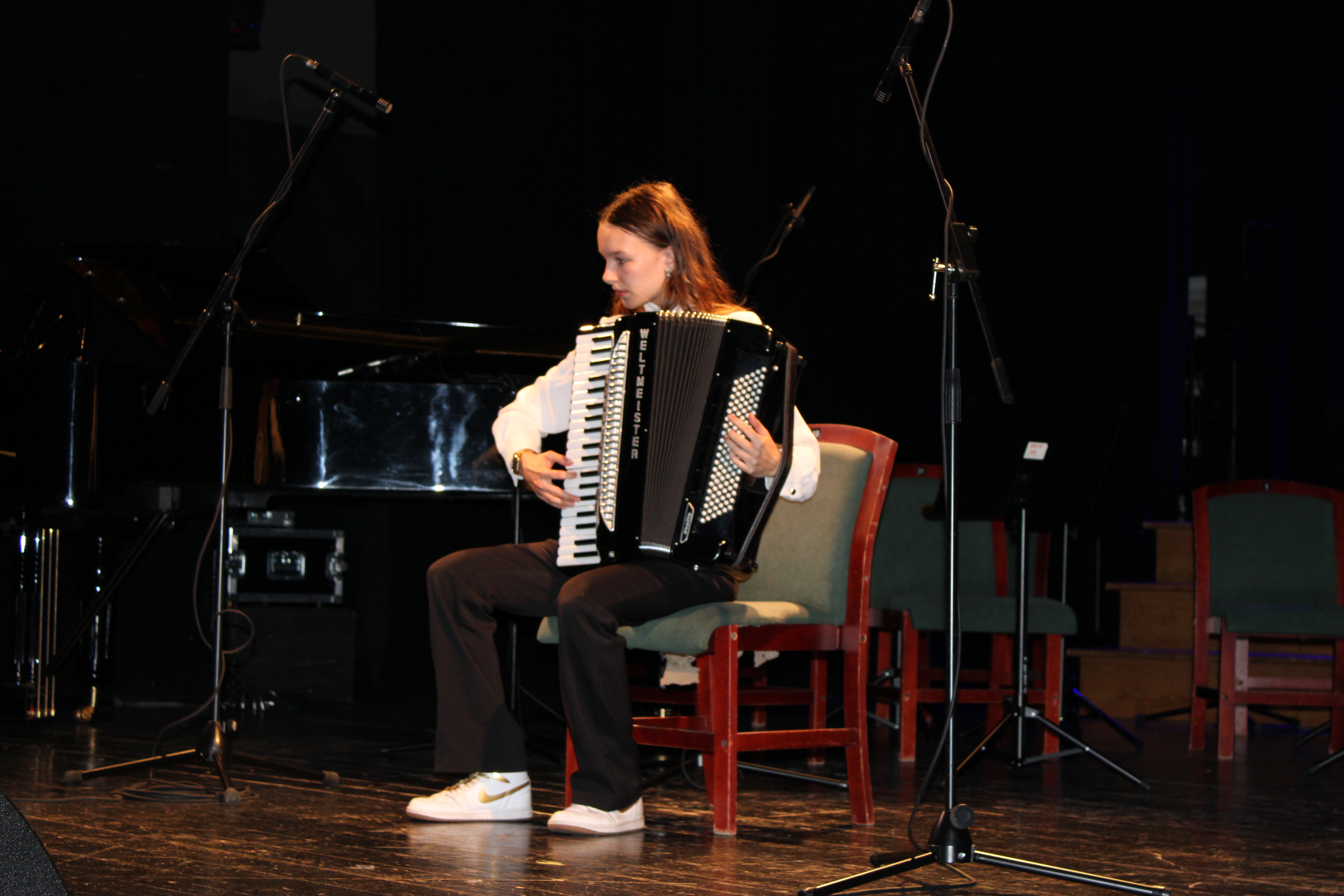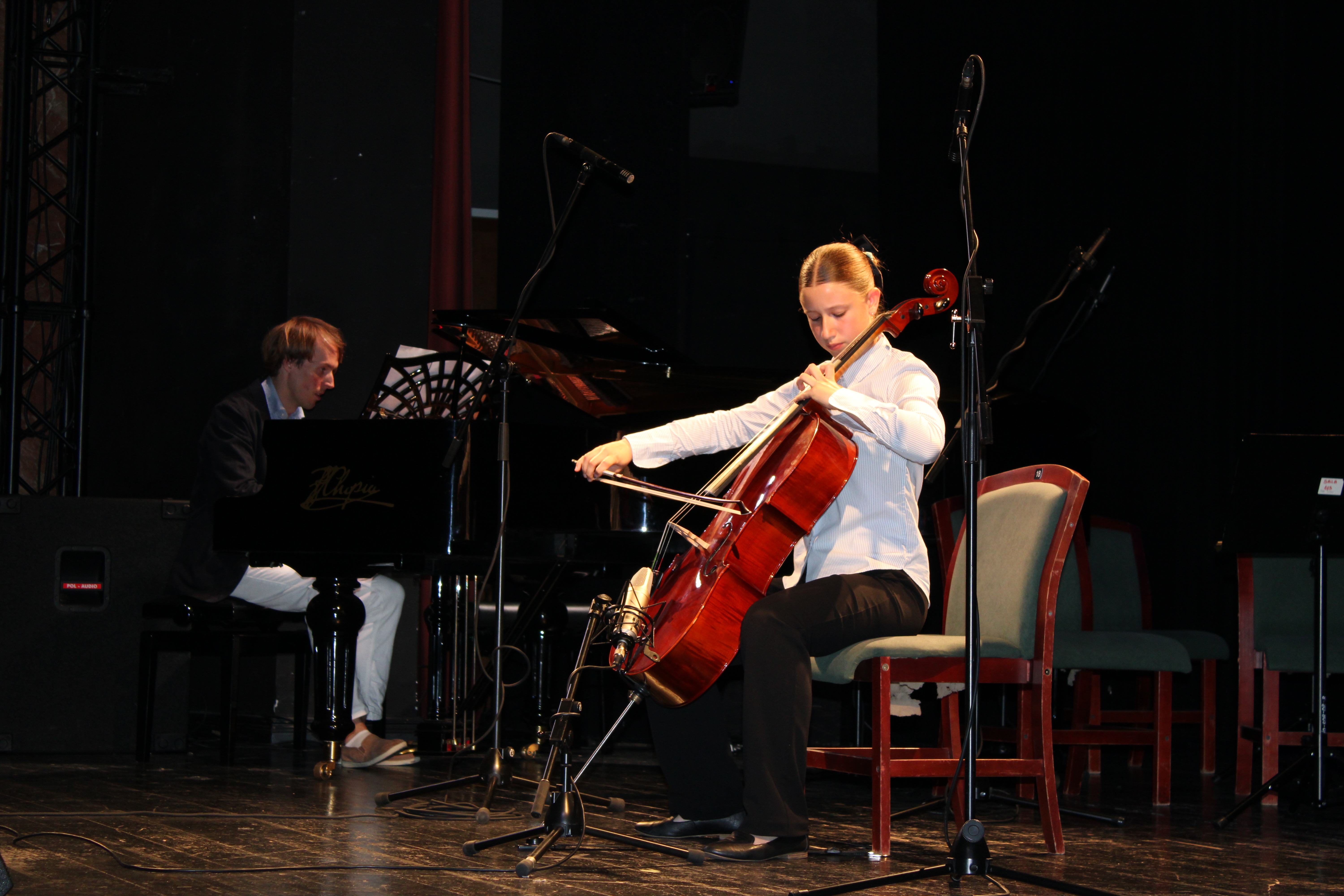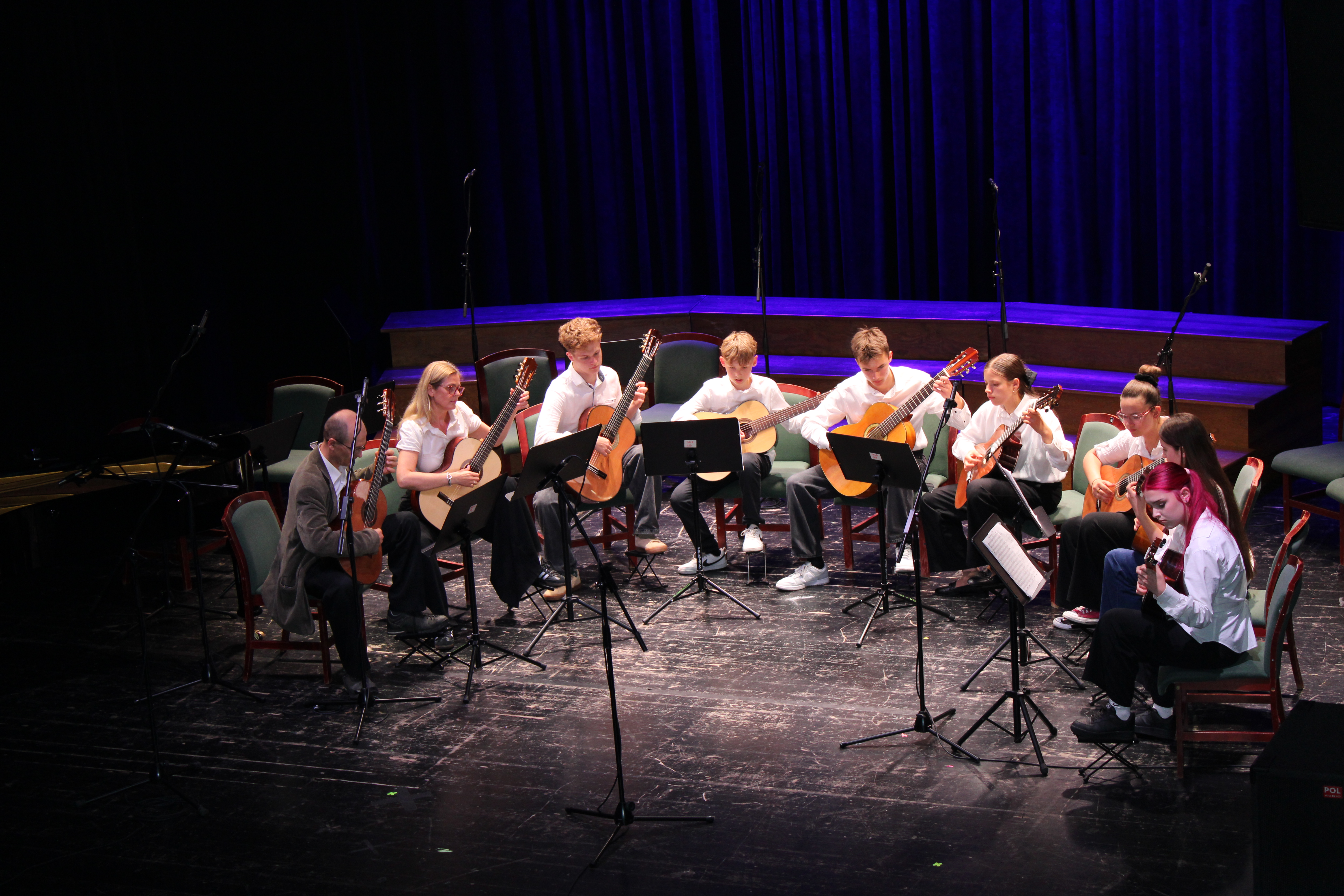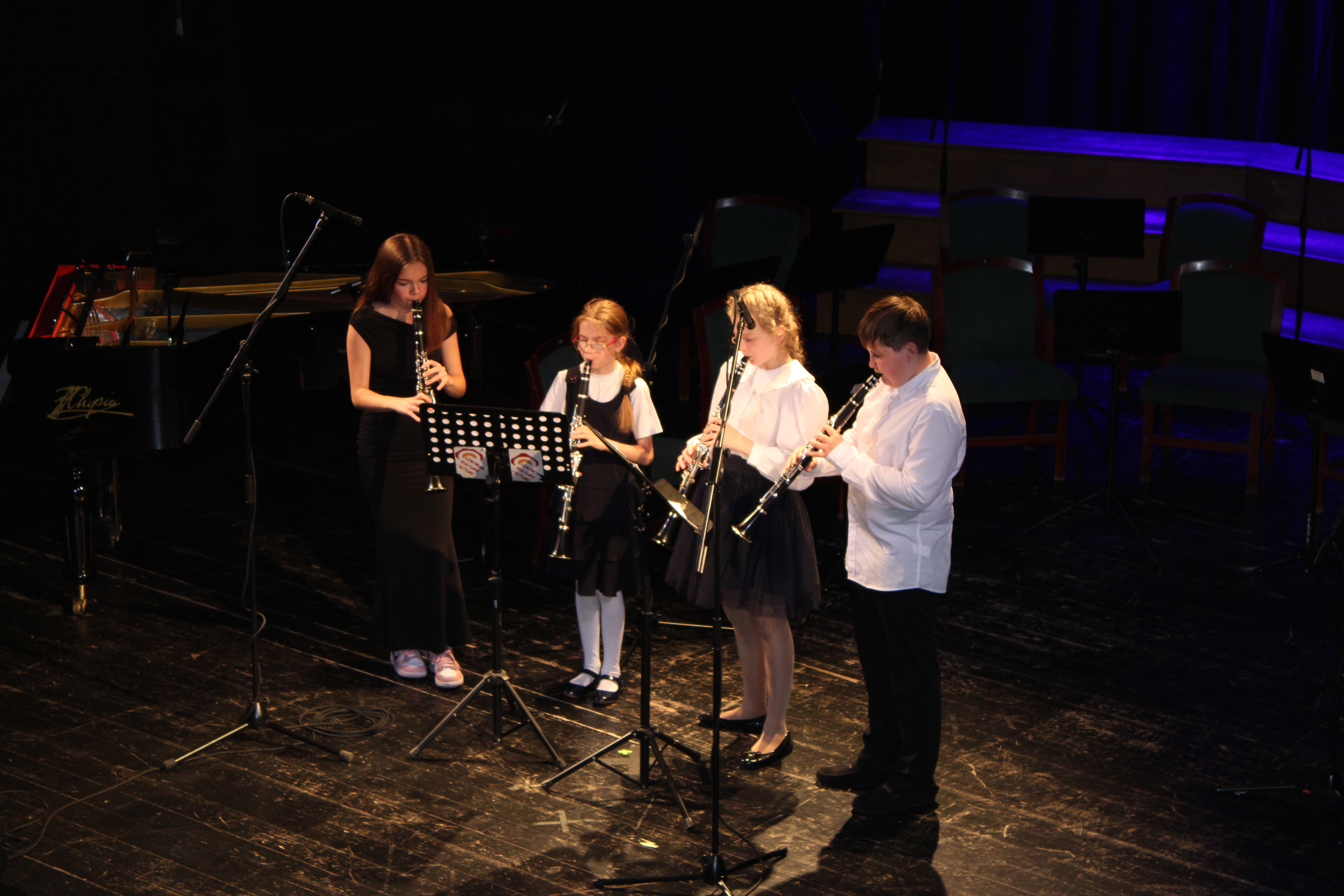 16 czerwca 2025 r. w Sali widowiskowej Centrum Kultury i Sztuki w Tczewie muzycznie podsumowaliśmy rok szkolny 2024/2025. Na jednej scenie ramię w ramię wystąpili uczniowie i nauczyciele a byli to: wielkie połączone siły - chór szkolny, grupy rytmiki (przygotowanie p. Agnieszka Rogowicz-Kowalska), zespół instrumentalny (przygotowanie p. Marta Kołodziejska-Kacprzak i p. Nikola Freda) oraz solista - dyrektor Piotr Kowalkowski, a także dwie orkiestry gitarowe pod dyrekcją p. Anny Bukowskiej i p. Antoniego Jędrzejewskiego, zespół akordeonowy pod przewodnictwem p. Marka Gleinerta, zespół smyczkowy pod dyrekcją p. Nikoli Fredy, zespół klarnetowy przygotowany przez p. Aleksandrę Głowacką, duet fortepianowy: Alicja Arczyńska i Aleksandra Kornas (przygotowanie p. Alicja Hawryluk) oraz soliści: Maja Midura (akordeon, naucz. Marek Gleinert), Dominik Franczak (akordeon, naucz. Marek Gleinert), Aleksandra Kornas (fortepian, naucz. Alicja Hawryluk), Zofia Woźny (naucz. Ludmiła Strzałkowska) wraz z pianistą p. Filipem Grzelachowskim, Natalia Czechanowska (wiolonczela, naucz. Mirosław Czochór) również z pianistą p. Filipem Grzelachowskim oraz Oliwia Lubowiedzka (skrzypce, naucz. Marta Kołodziejska-Kacprzak) razem z pianistką p. Moniką Madej-Strukiel. Koncert poprowadził p. Miłosz Janiak.
