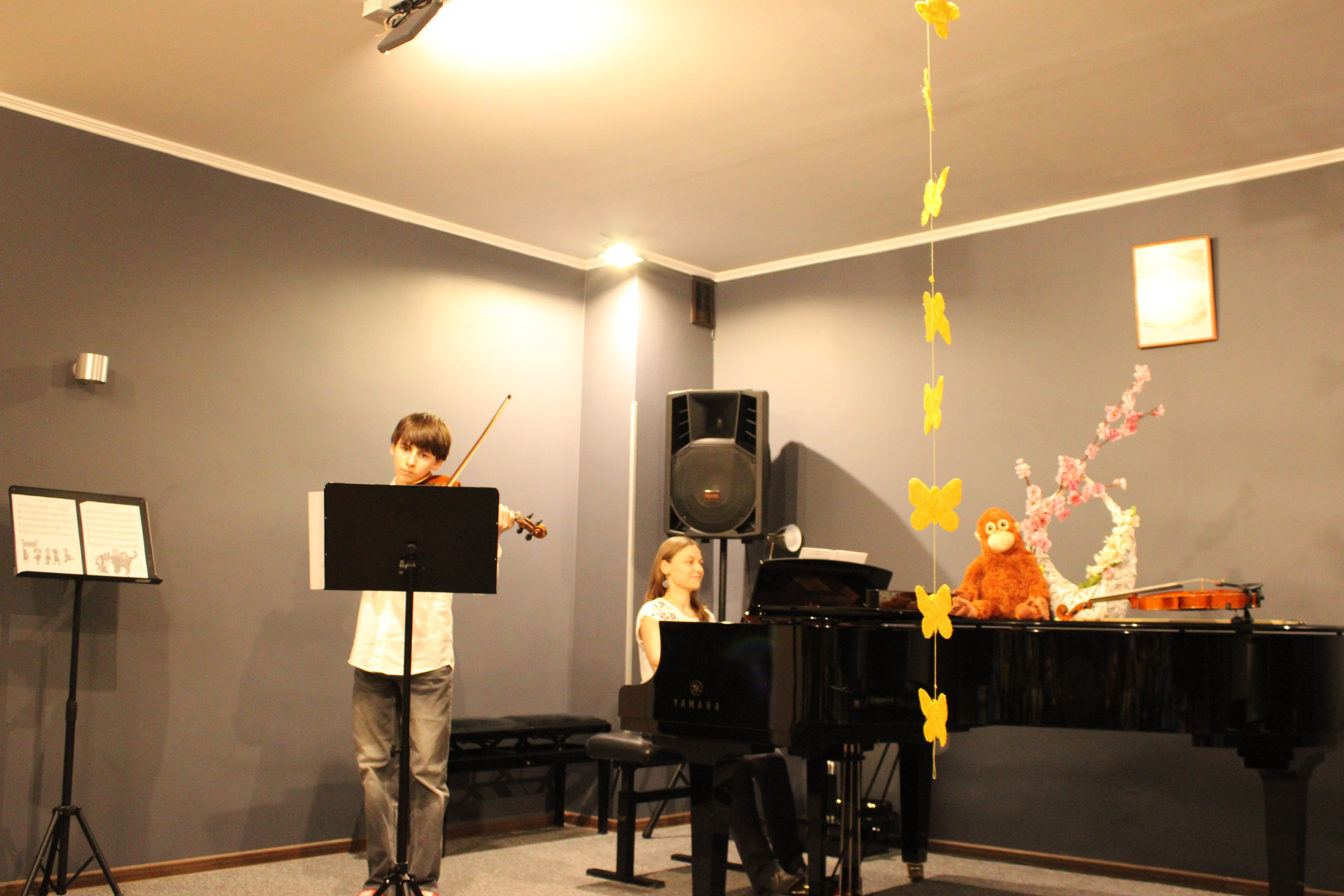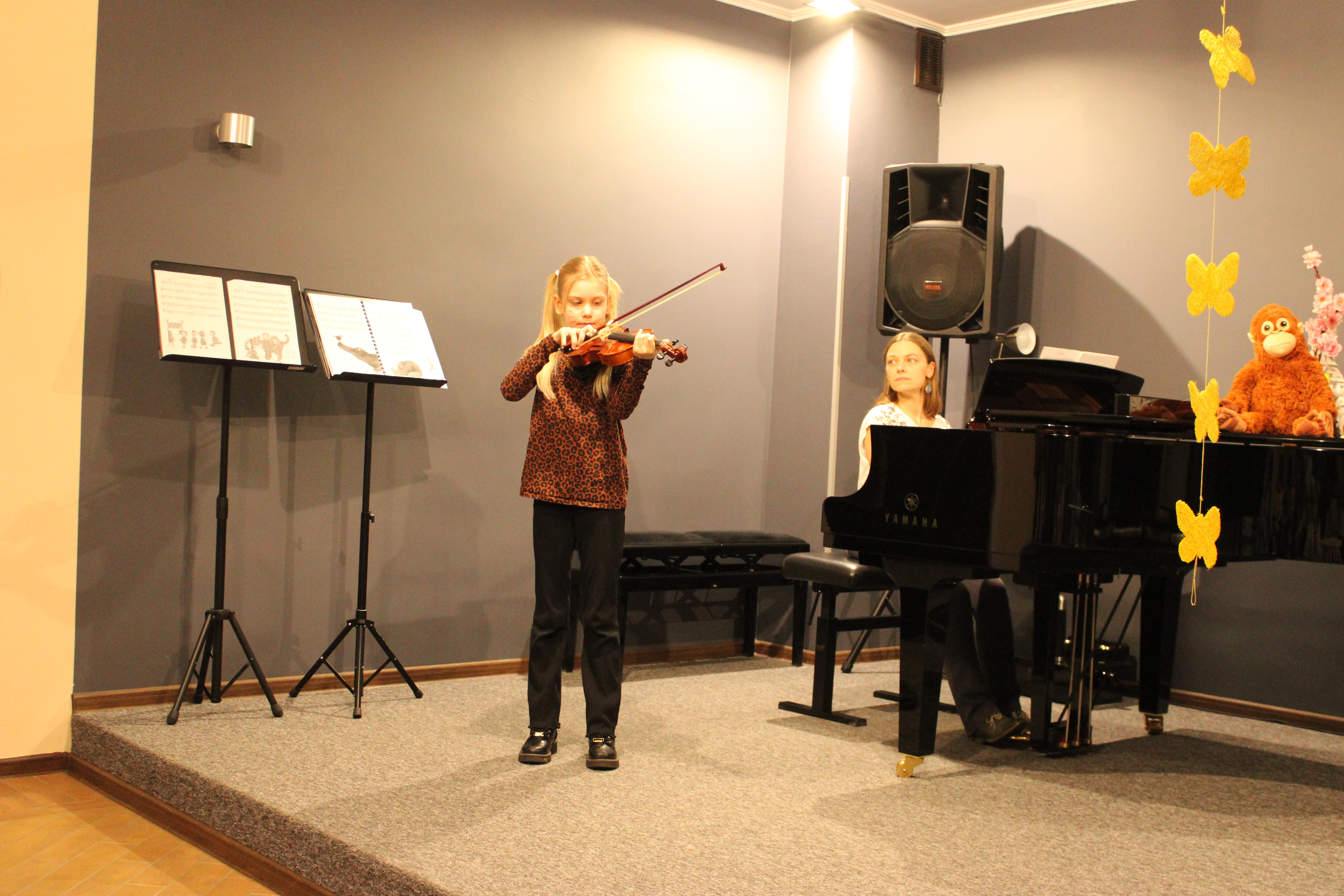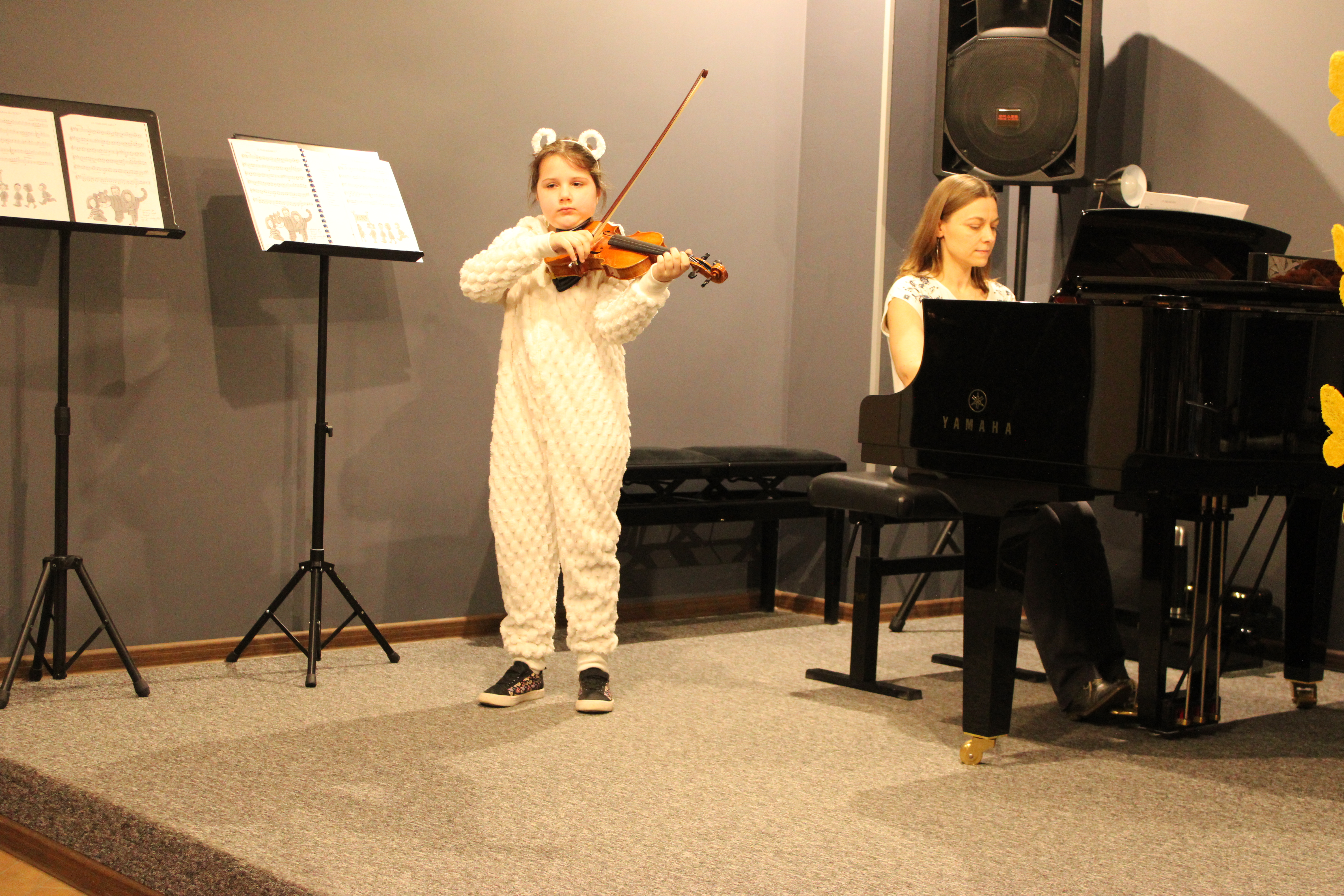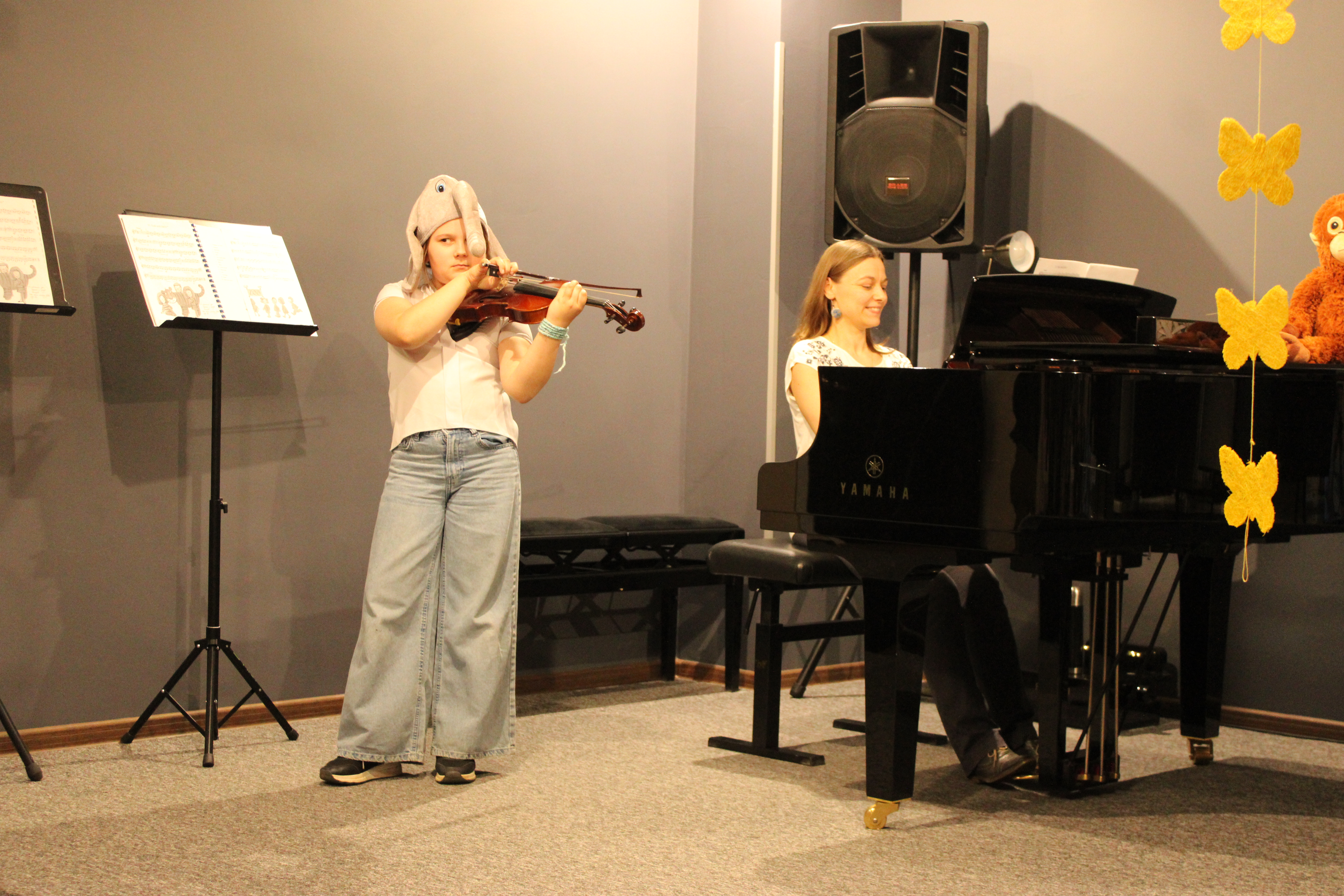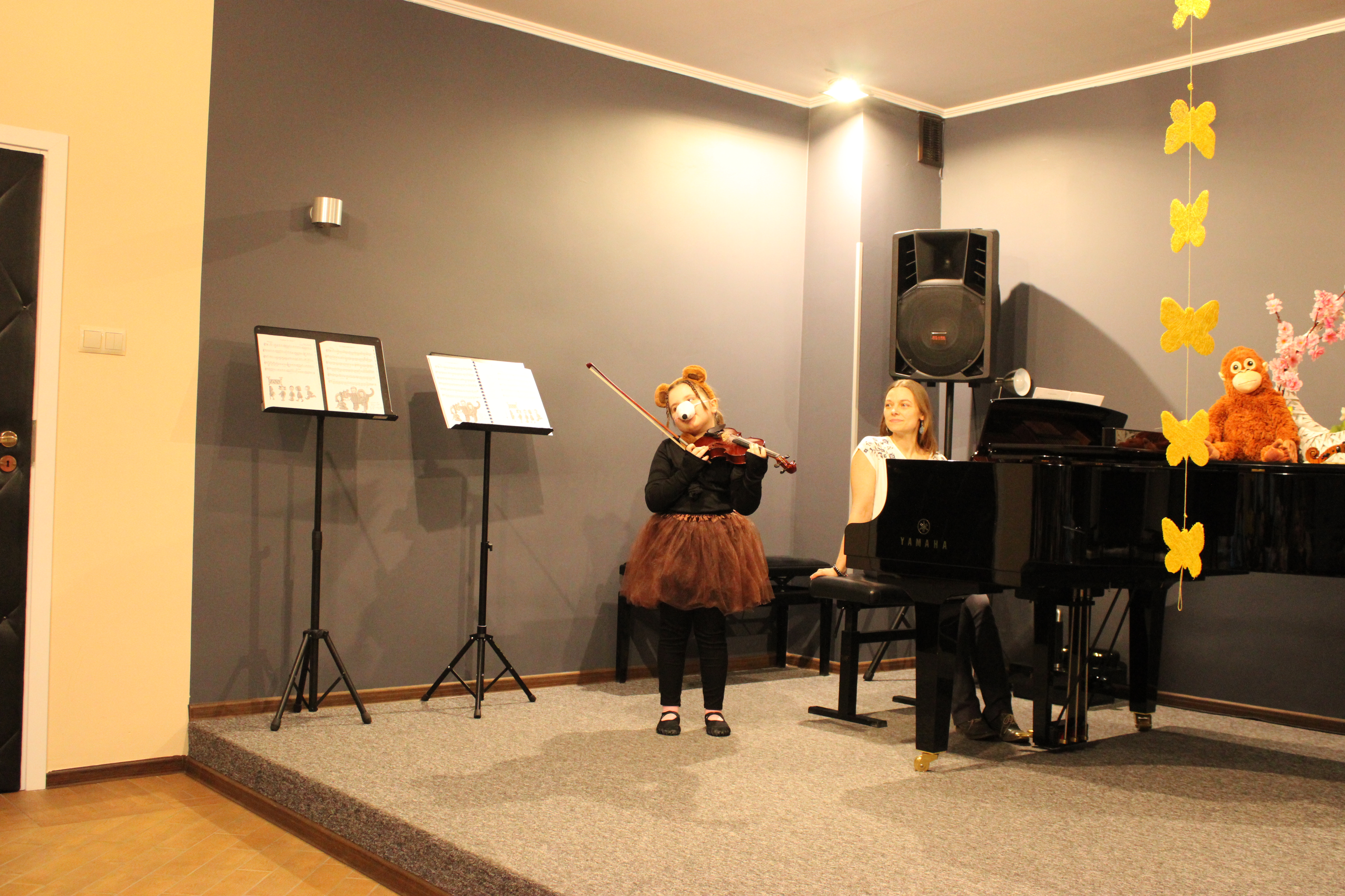 We wtorek - 10 marca 2026 - skrzypkowie z klasy p. Aldony Śmietańskiej dźwiękami i strojami pokazali licznie zgromadzonej publiczności "muzyczne ZOO". Usłyszeliśmy jak kompozytor/skrzypek - Antoni Cofalik - naśladował dźwiękiem skrzypiec i fortepianu różnych mieszkańców ZOO, a byli to: słoń, kangur, mały pingwinek, miś, renifer, kucyk, krokodyl, bóbr, lew, antylopa, foka. Wszystkim uczniom przy fortepianie towarzyszyła p. Agnieszka Stankowska. Brawa dla skrzypków i p. Aldony oraz p. Agnieszki - wiosna w muzycznym Zoo odnaleziona! Gratulujemy pięknego koncertu. Dziękujemy publiczności za liczne przybycie. Wśród naszych słuchaczy był obecny Pan Prezydent Tczewa - Łukasz Brządkowski - bardzo dziękujemy za obecność. Muzyka na wiosnę - najlepszy wybór!