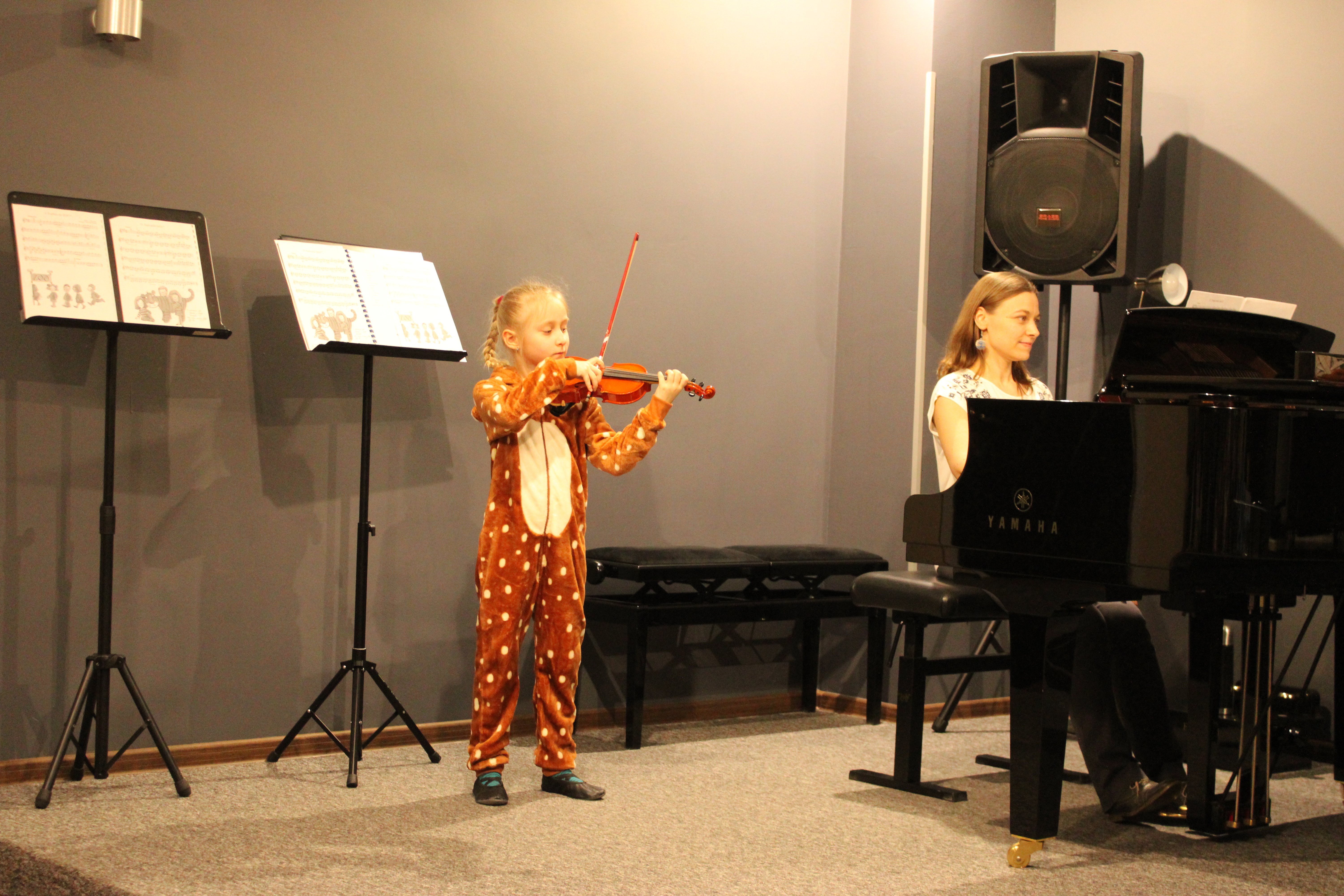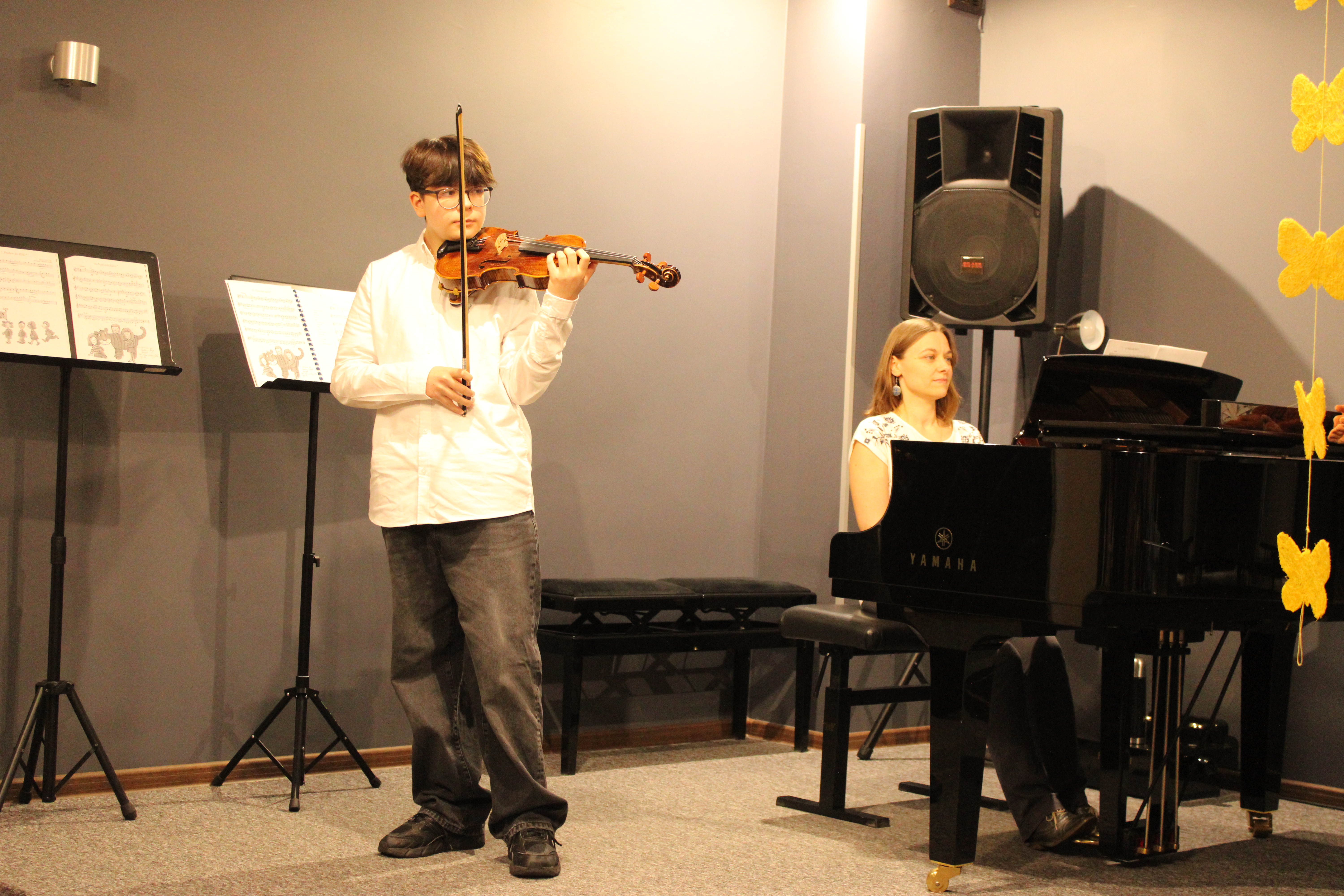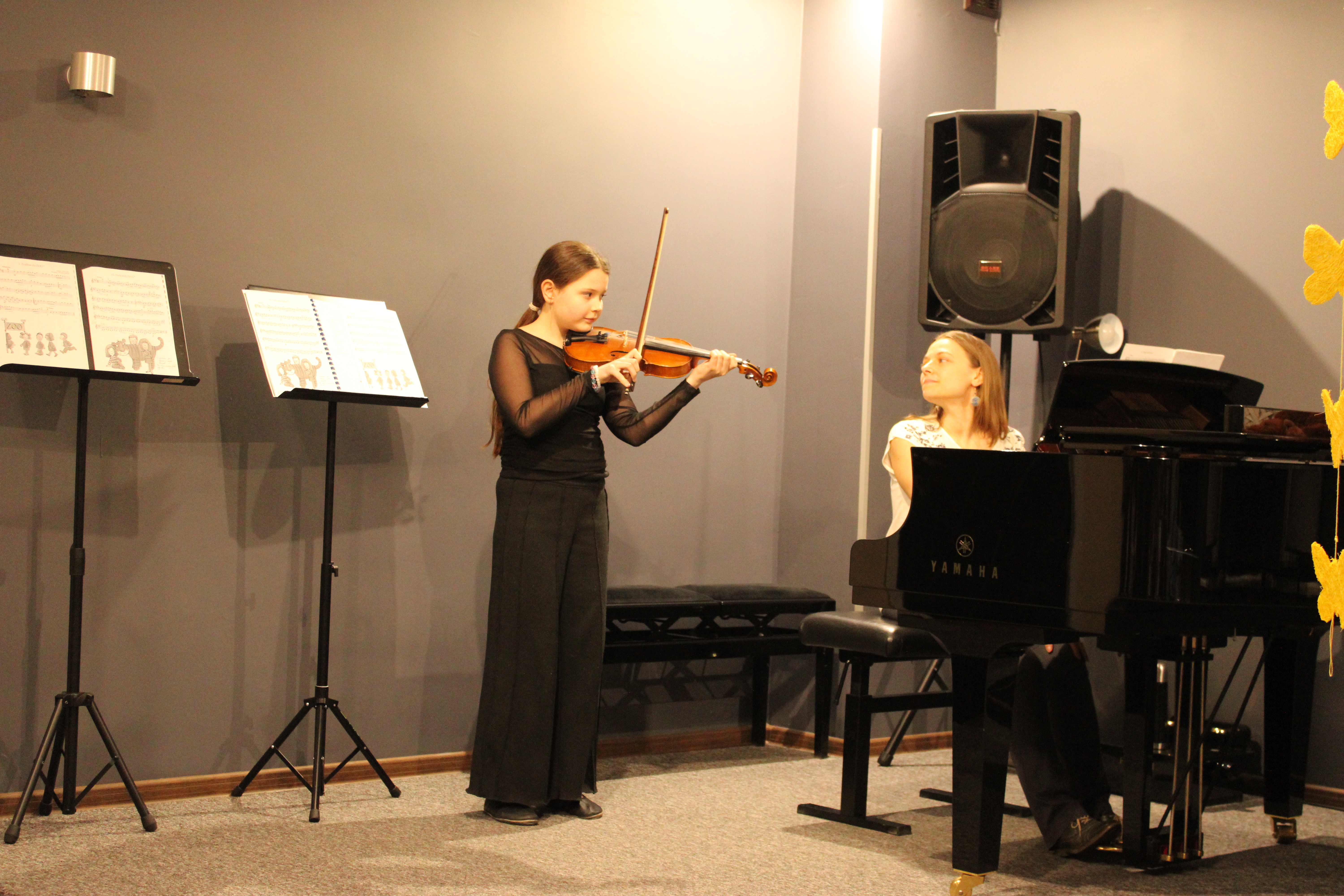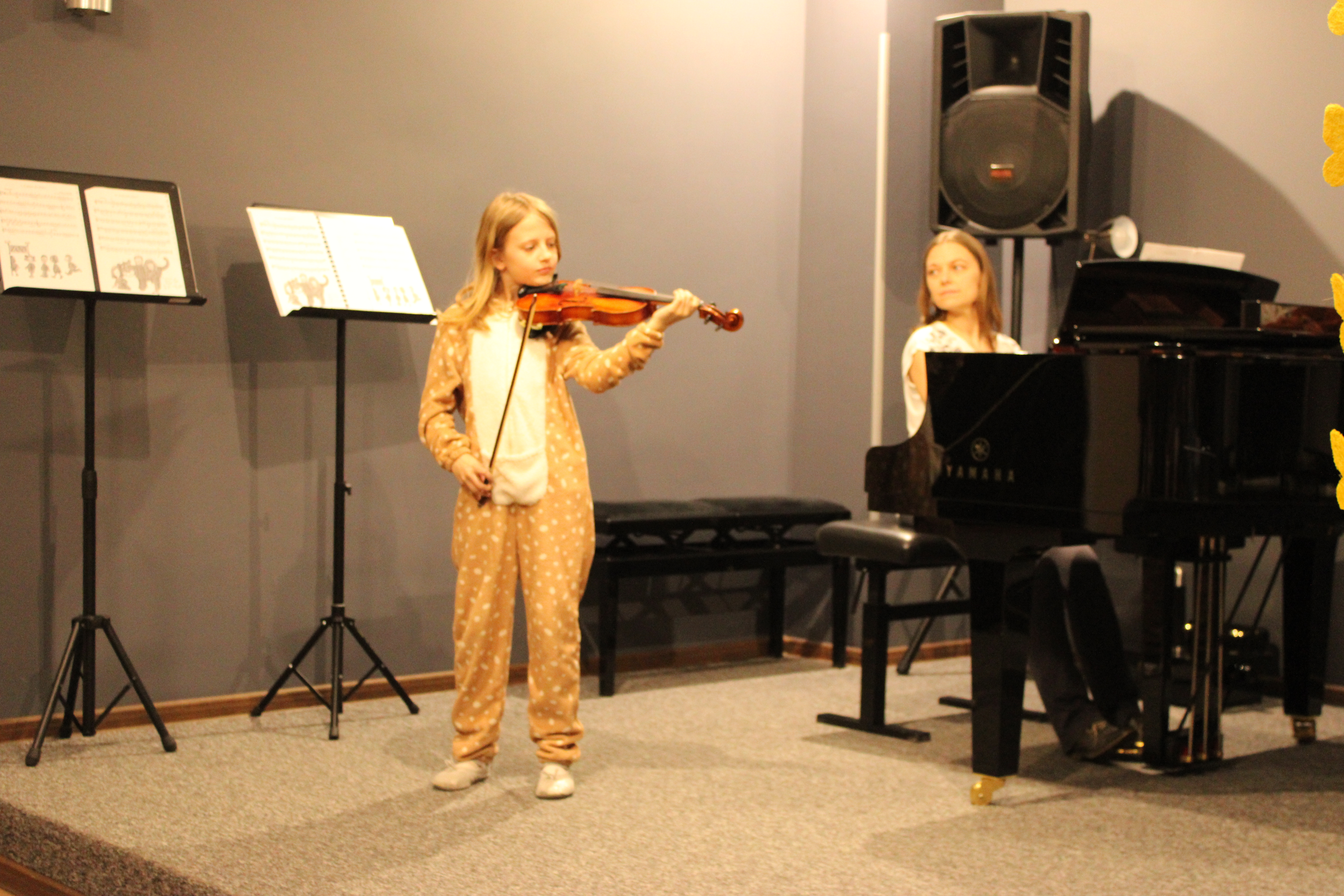 We wtorek - 10 marca 2026 - skrzypkowie z klasy p. Aldony Śmietańskiej dźwiękami i strojami pokazali licznie zgromadzonej publiczności "muzyczne ZOO". Usłyszeliśmy jak kompozytor/skrzypek - Antoni Cofalik - naśladował dźwiękiem skrzypiec i fortepianu różnych mieszkańców ZOO, a byli to: słoń, kangur, mały pingwinek, miś, renifer, kucyk, krokodyl, bóbr, lew, antylopa, foka. Wszystkim uczniom przy fortepianie towarzyszyła p. Agnieszka Stankowska. Brawa dla skrzypków i p. Aldony oraz p. Agnieszki - wiosna w muzycznym Zoo odnaleziona! Gratulujemy pięknego koncertu. Dziękujemy publiczności za liczne przybycie. Wśród naszych słuchaczy był obecny Pan Prezydent Tczewa - Łukasz Brządkowski - bardzo dziękujemy za obecność. Muzyka na wiosnę - najlepszy wybór!