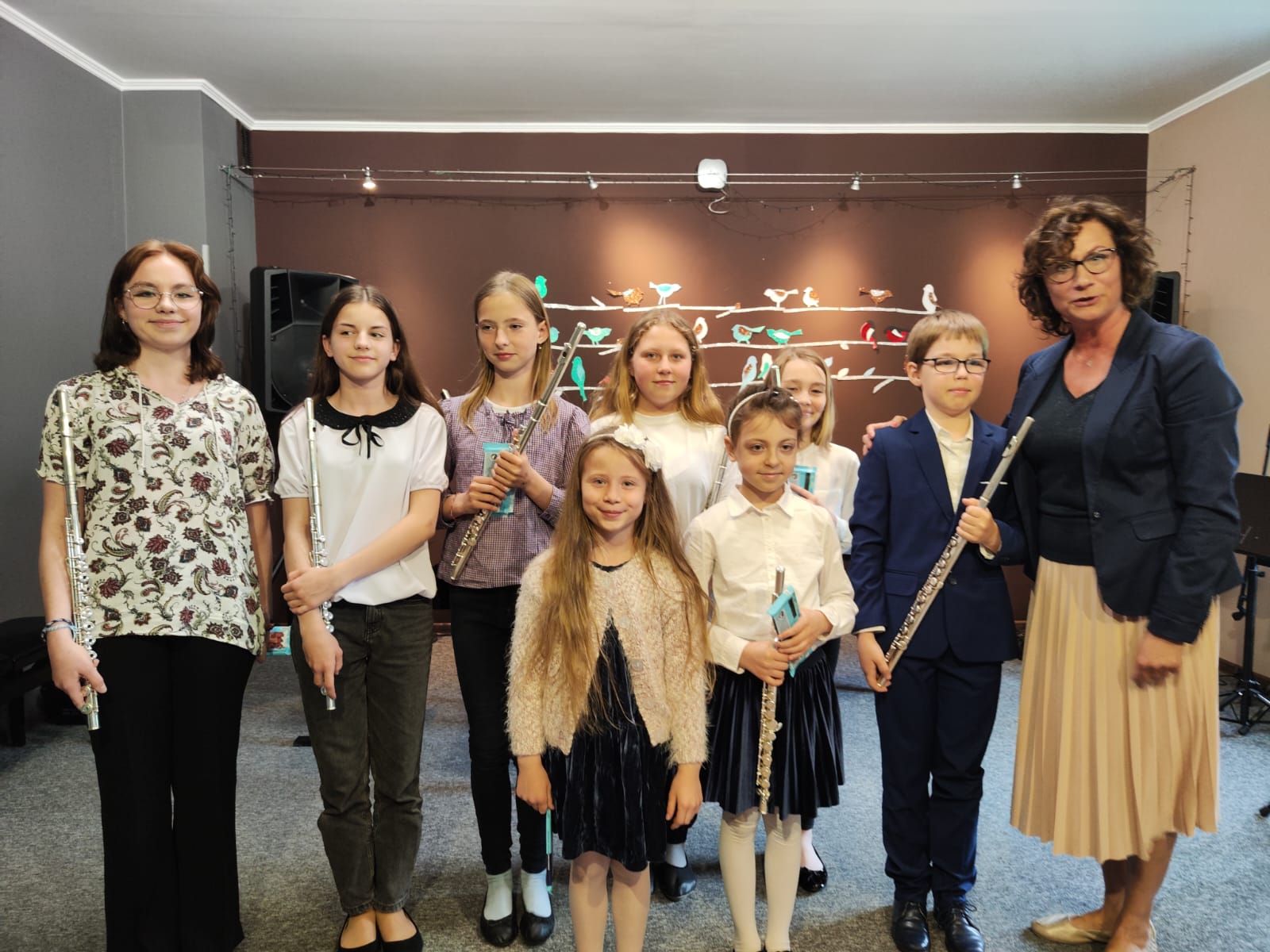18 maja 2023 sala koncertowa naszej szkoły rozbrzmiała dźwiękami fletów, a to za sprawą Koncertu klasy fletu p. Hanny Łąckiej. Na scenie wystąpili: Jakub, Hania, Nina, Ola, Ania, Julia, Marysia, Oliwia oraz p. Hanna Łącka i pianista p. Filip Grzelachowski. Serdecznie gartulujemy udanych występów.
