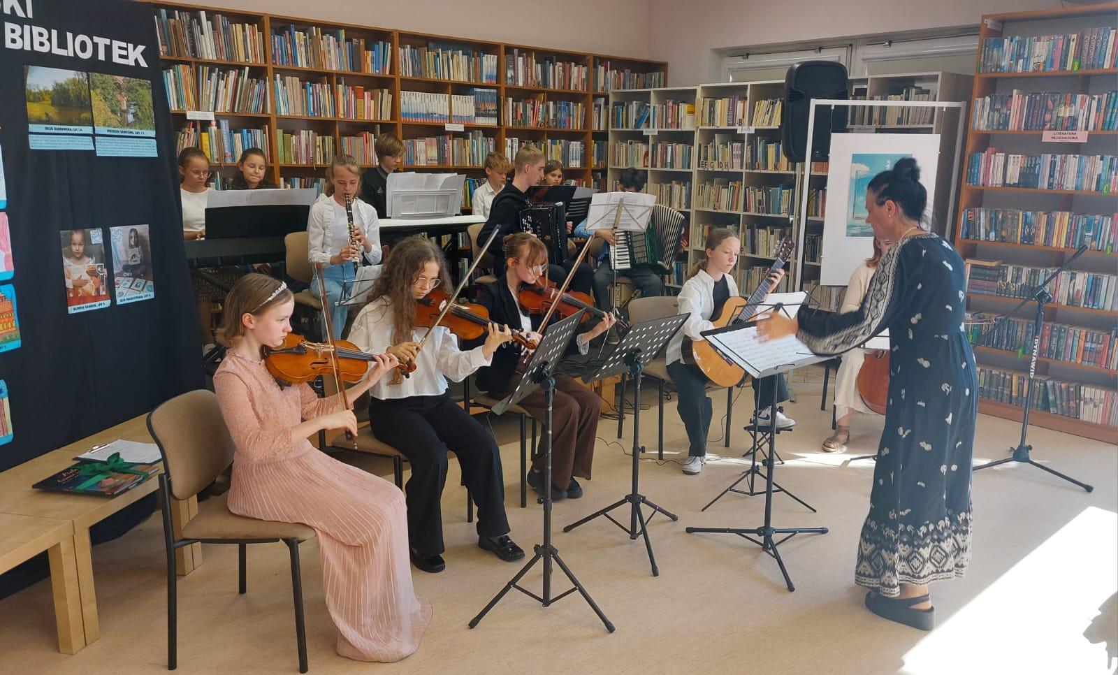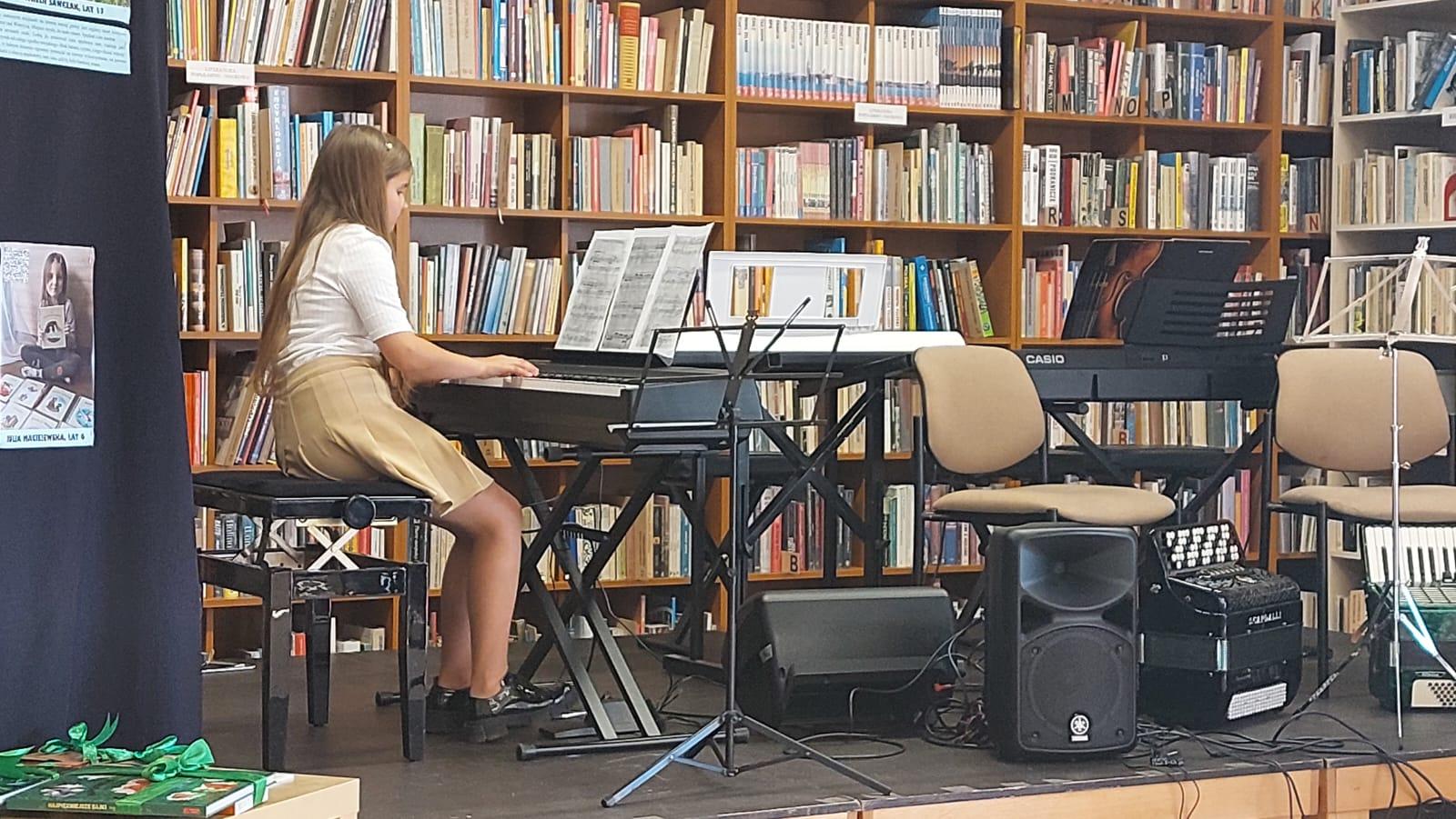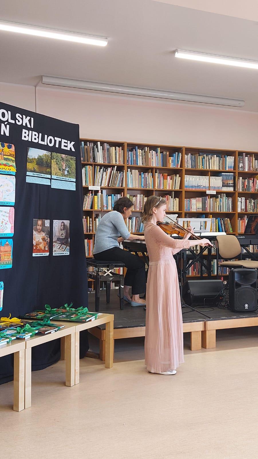 Dzięki uprzejmości Dyrekcji Miejskiej Biblioteki Publicznej w Pelplinie w zeszłą środę (15 maja 2024 r.) między książkami w sali bibliotecznej miał miejsce koncert uczniów naszej szkoły. Występowali soliści, zespoły kameralne oraz duży zespół pod kierunkiem pani Krystyny Dettlaff-Czocher.