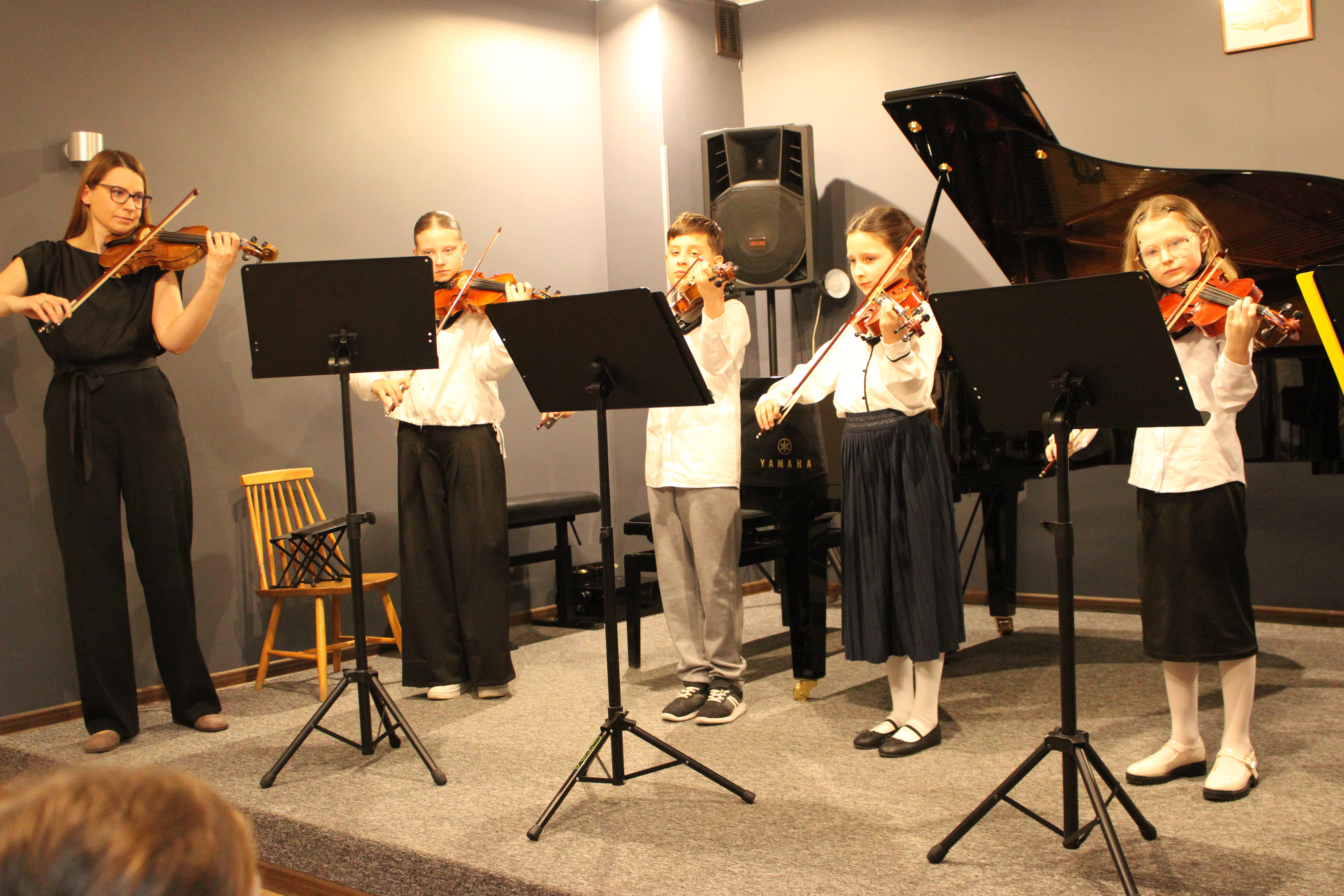 Koncert z okazji Dnia Patronki Szkoły "Mistrz i Uczeń", który odbył się 12.03.2026, zgromadził w naszej sali tak liczną publiczność, że miejsc zabrakło, a wiele osób przysłuchiwało się z korytarza... bo naprawdę było warto! Koniecznie musimy powiększyć salę koncertową.