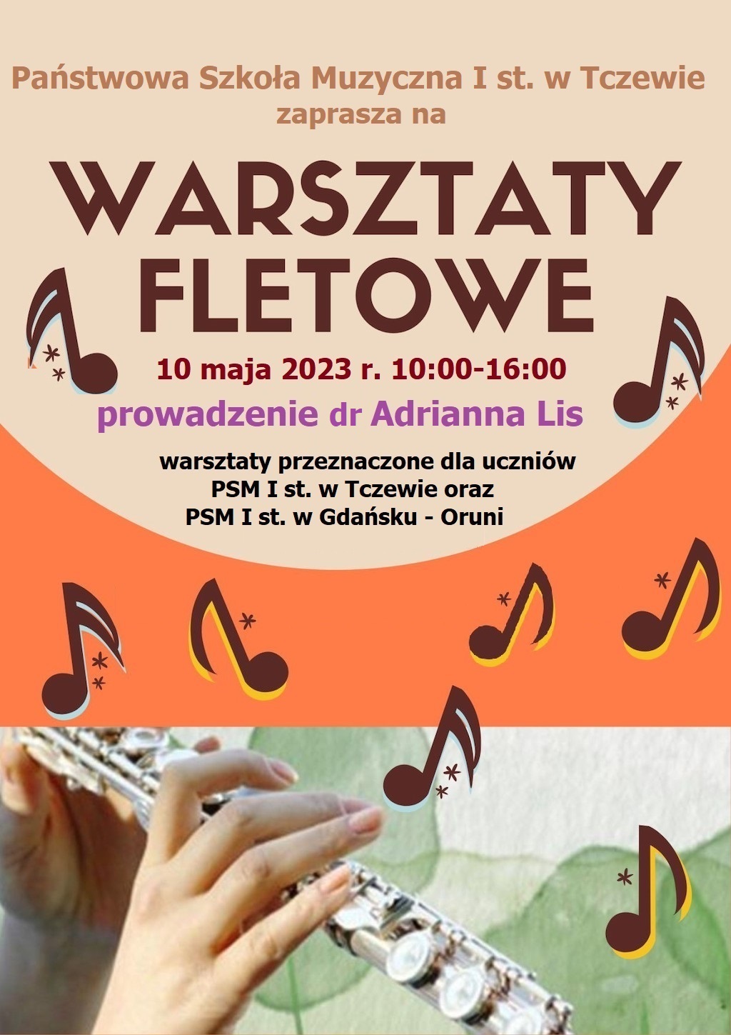 10 maja 2023 r. - Warsztaty fletowe dla uczniów PSM I st. w Tczewie i PSM I st. w Gdańsku - Oruni - lekcje mistrzowskie z dr Adrianną Lis.