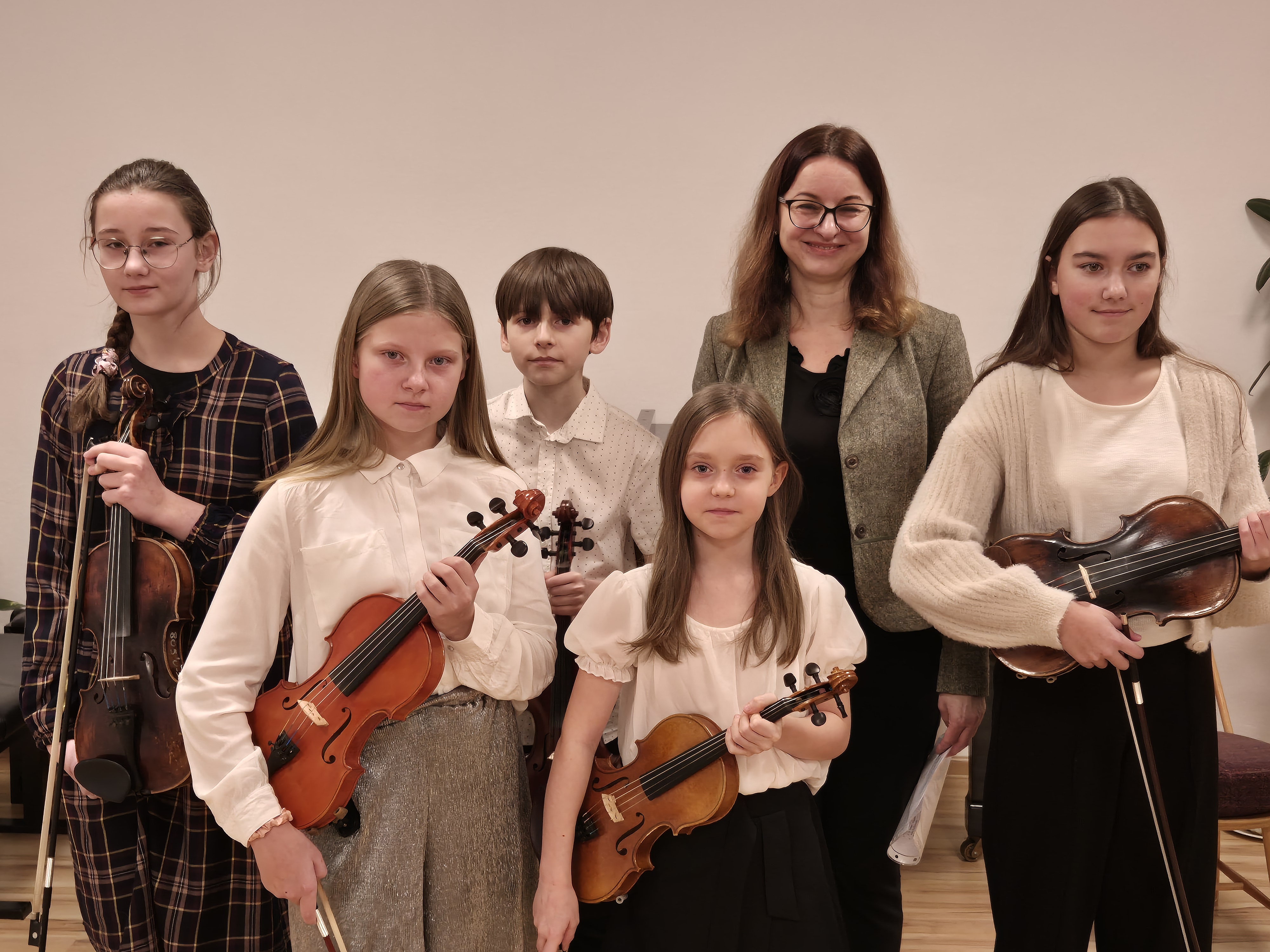 02 i 03 grudnia 2024 r. odbyły się dwa Koncerty klasy skrzypiec p. Aldony Śmietańskiej. Pierwszego dnia koncertowali uczniowie z klasy 4 - 6, którym przy fortepianie towarzyszyła p. Monika Madej-Strukiel. Kolejnego dnia swoje dotychczasowe umiejętności zaprezentowali publiczności uczniowie klasy 1 - 3 oraz ich starsza koleżanka z klasy 6 - Zuzanna Zapałowska. W drugim dniu przy fortepianie zasiadła p. Agnieszka Stankowska oraz p. Aldona Śmietańska. Gratulujemy udanych występów. BRAWO!