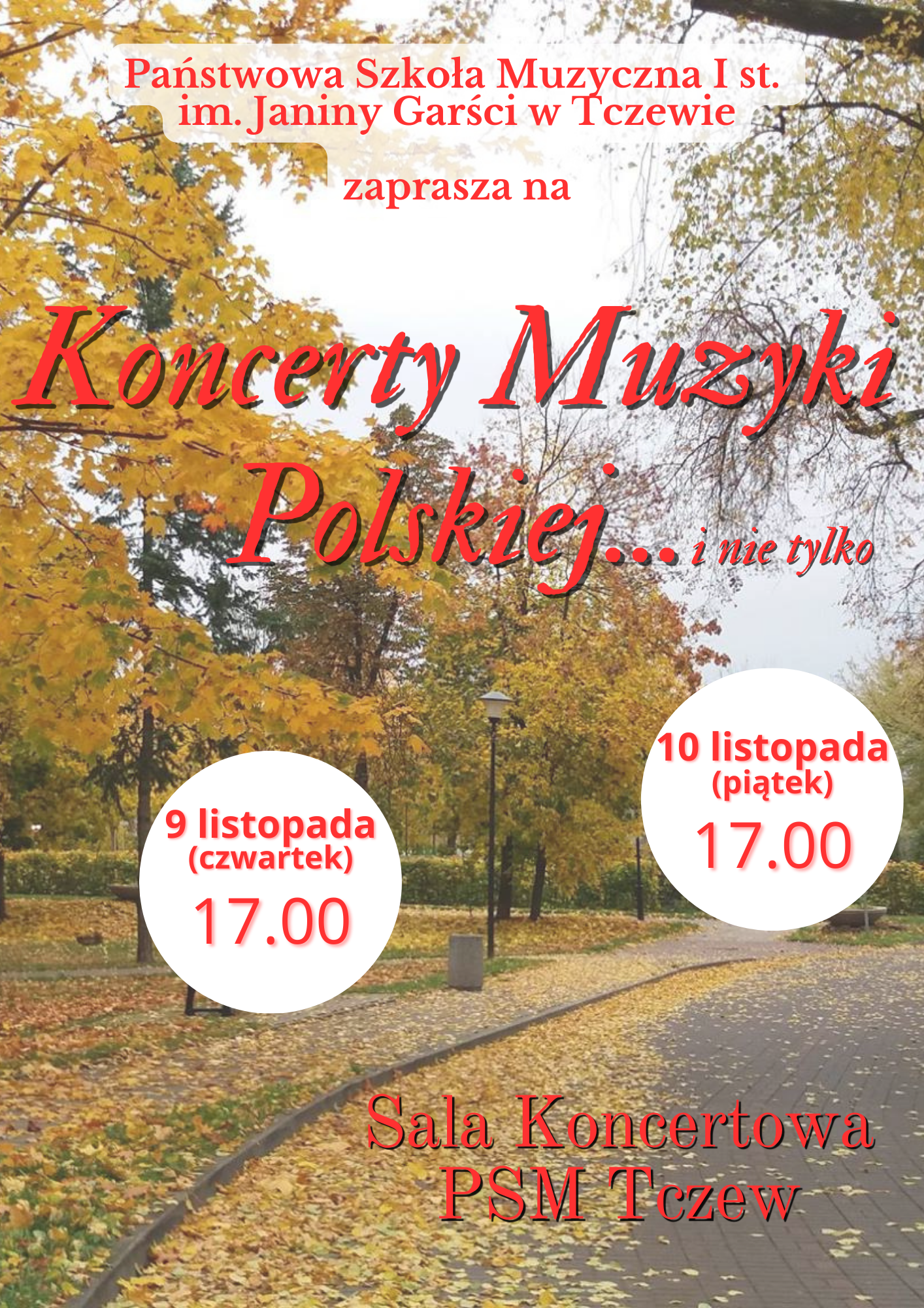 Serdecznie zapraszamy na dwa "Koncerty muzyki polskiej... i nie tylko", które odbędą się 9 (czwartek) i 10 (piątek) listopada o godzinie 17:00 w sali koncertowej PSM w Tczewie.