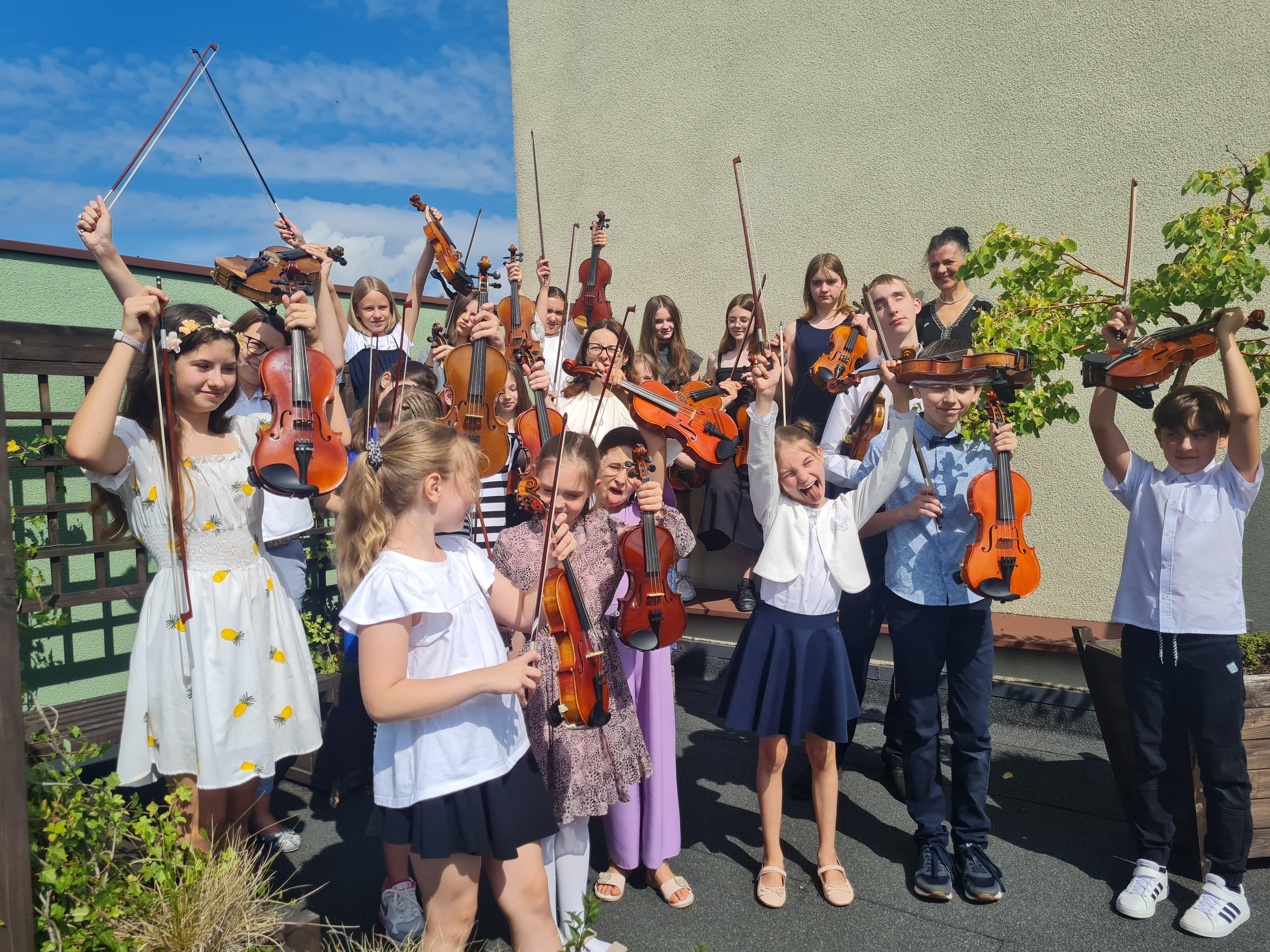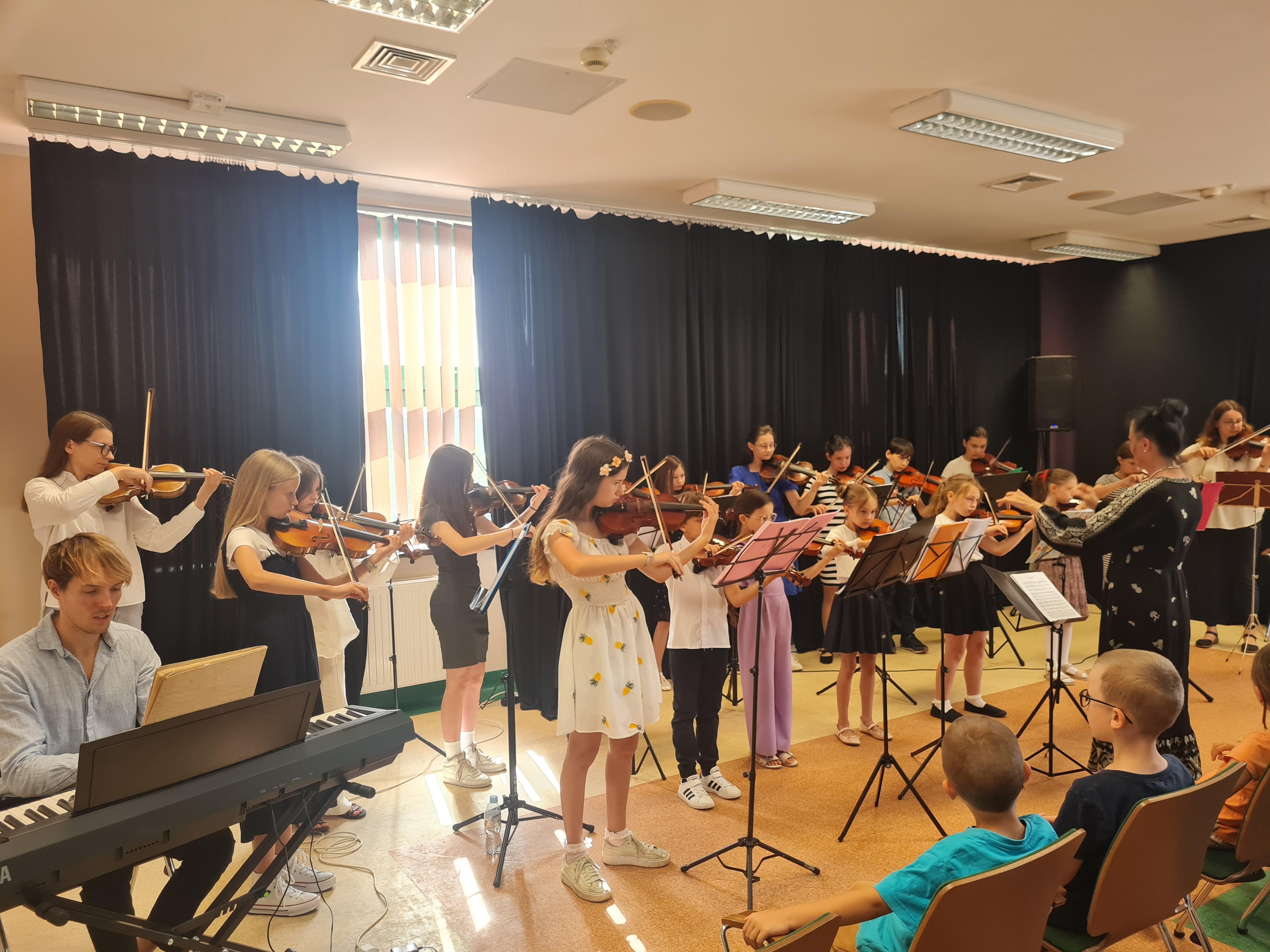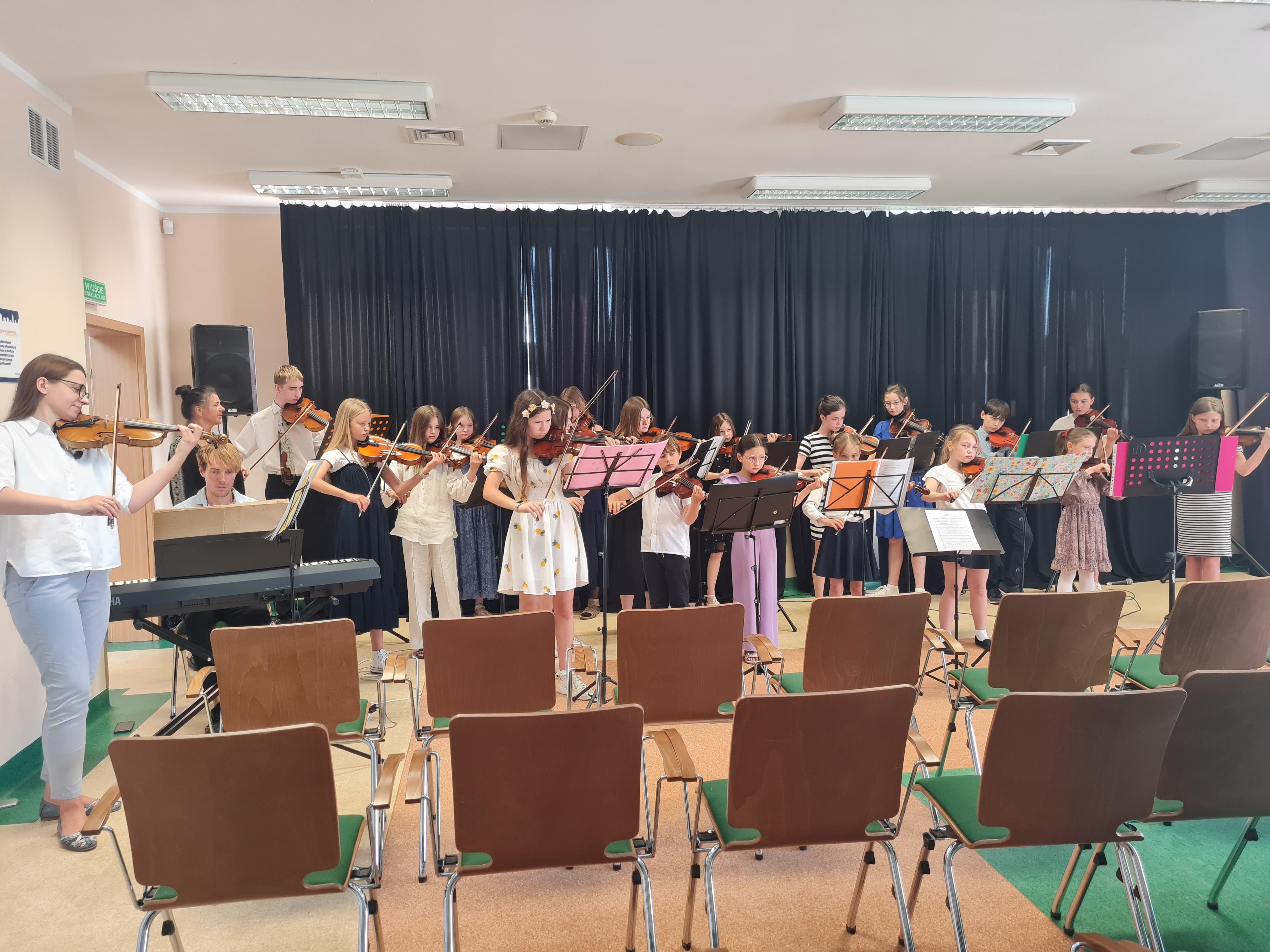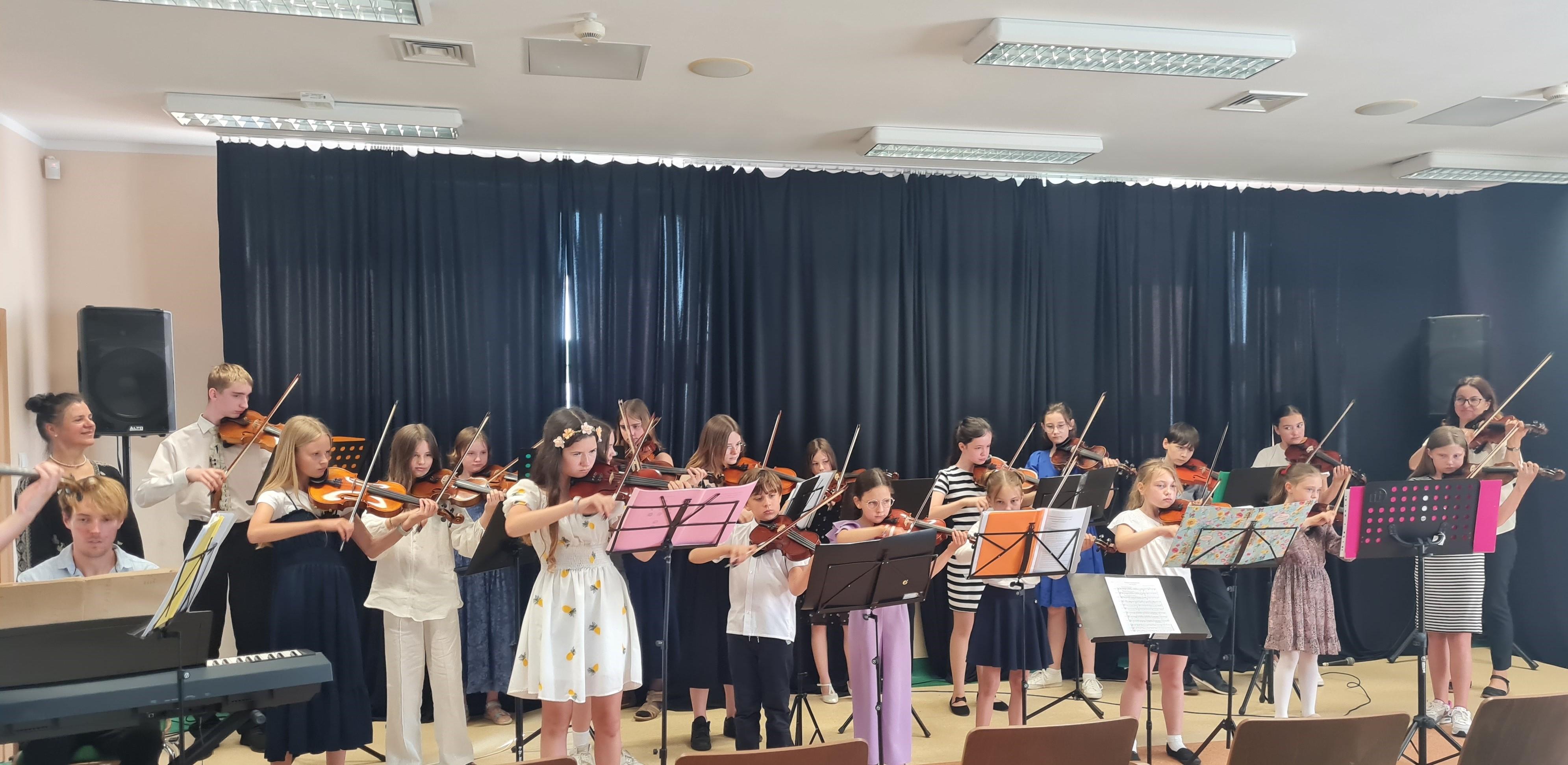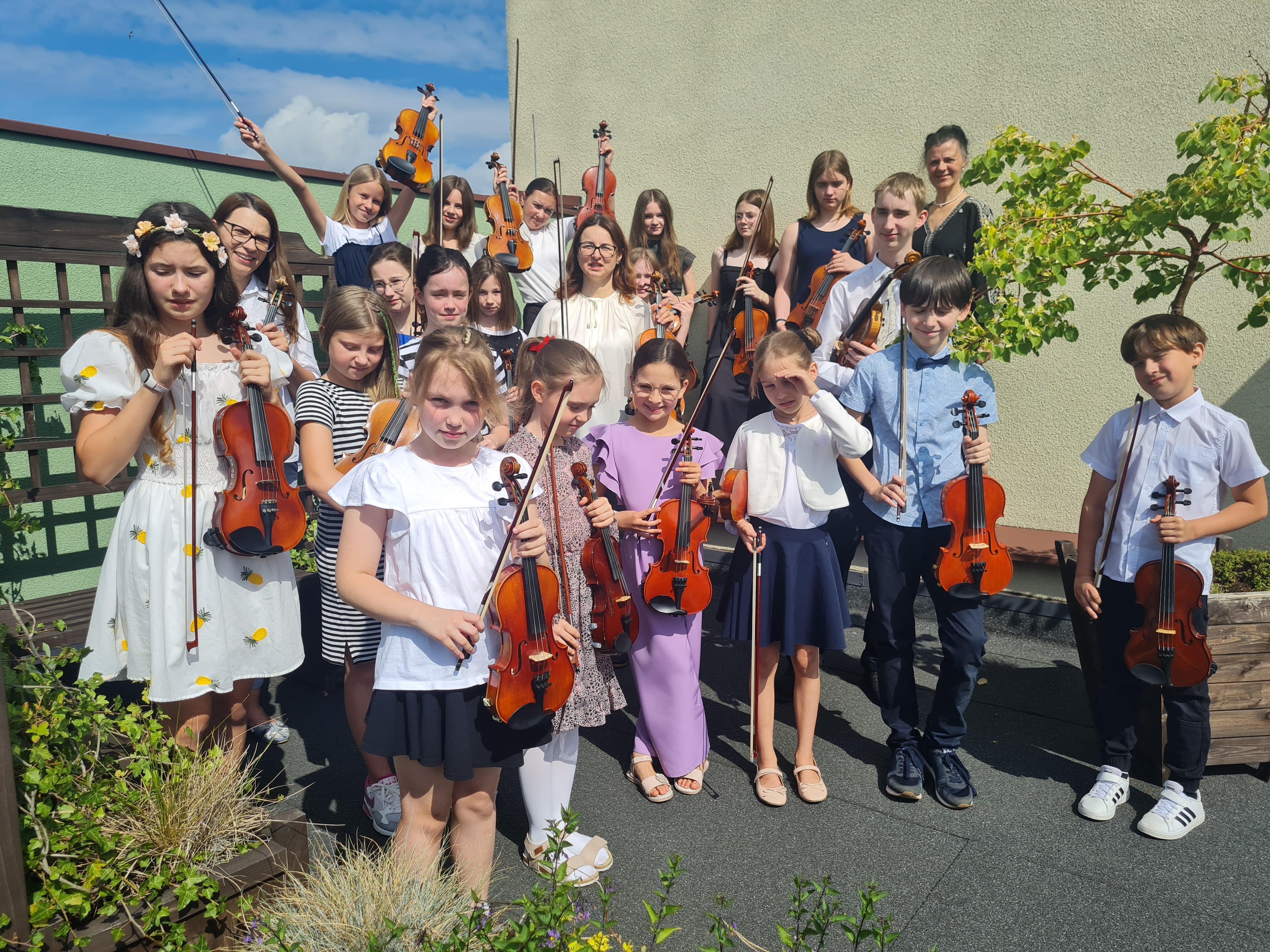 19-osobowa orkiestra młodych skrzypków, złożona z 16 uczennic i uczniów z Tczewa i 3 - z Pelplina, pojechała 06 czerwca 2024 do Pszczółek, gdzie na zaproszenie Biblioteki Gminnej zagrała aż 3 koncerty. Odbiorcami koncertów byli uczniowie z tamtejszej Szkoły Podstawowej. Nasi skrzypkowie spisali się na medal - świetnie zaprezentowali się w repertuarze klasycznym i rozrywkowym, zabierając publiczność w podróż dookoła świata. Skrzypków przygotowały i wspomagały grą i dyrygowaniem p. Aldona Śmietańska, p. Marta Kołodziejska-Kacprzak i p. Krystyna Dettlaff-Czocher. Orkiestrze, grając na fortepianie (a właściwie pianinie cyfrowym) wtórował p. Filip Grzelachowski.