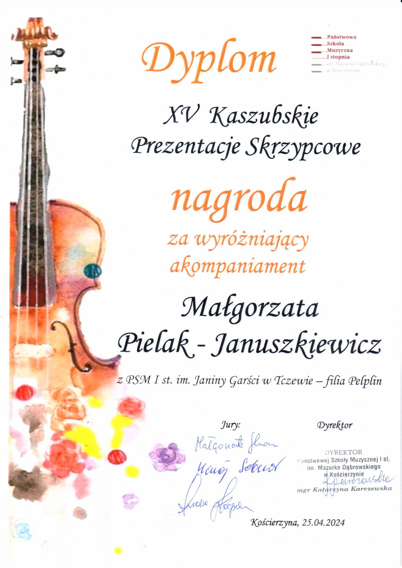 Zaś dzień później - 25 kwietnia miały miejsce XV Kaszubskie Prezentacje Skrzypcowe, na których również mieliśmy nasze laureatki: