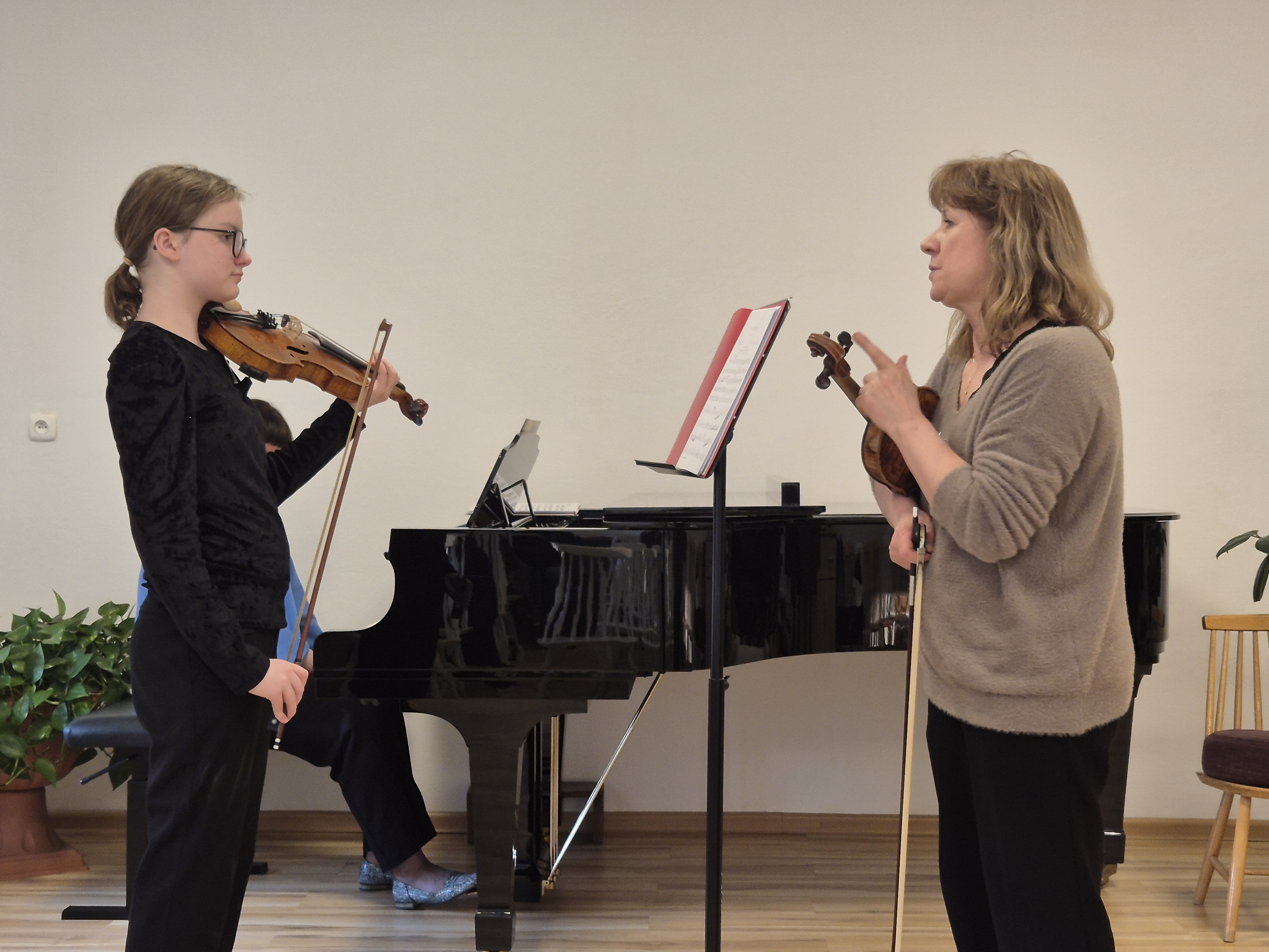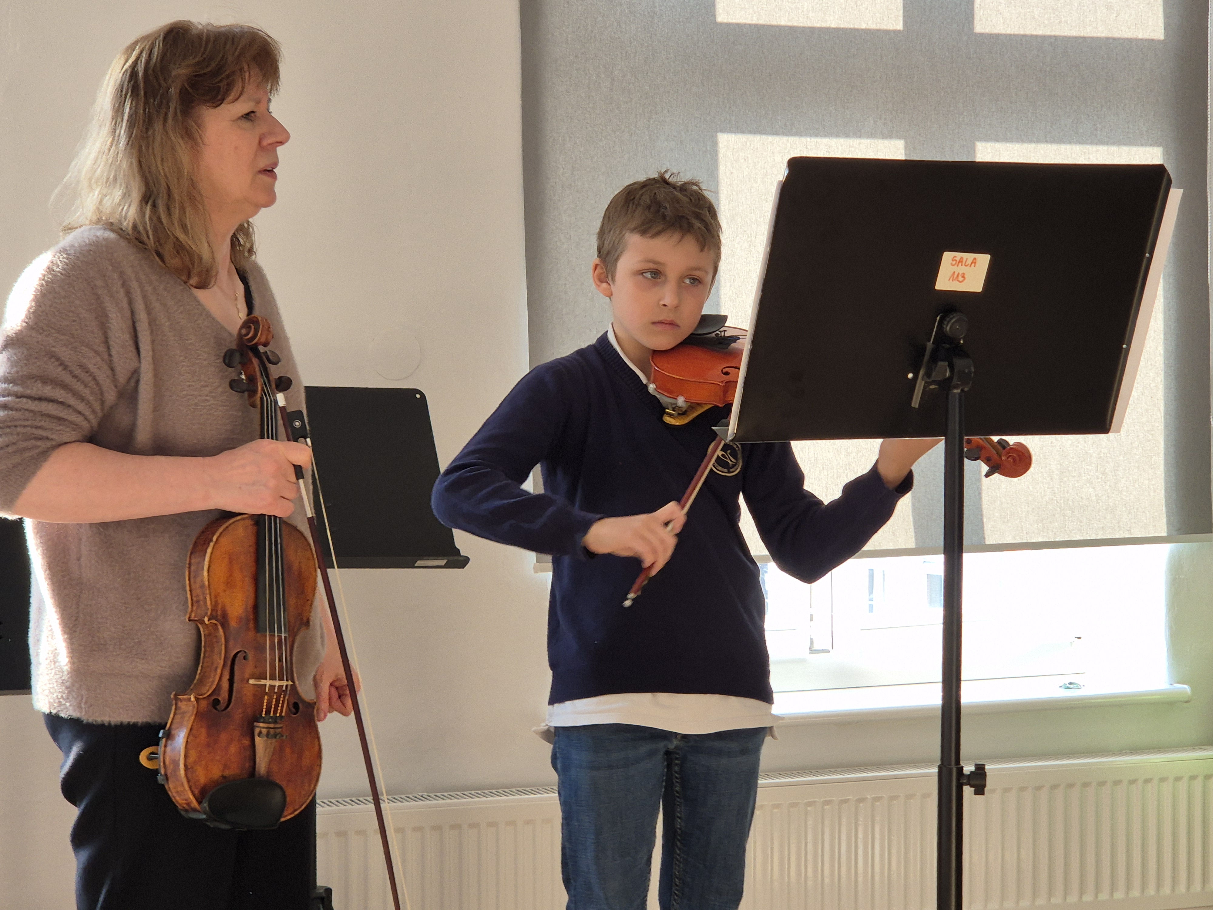 Do naszej szkoły przybył gość specjalny - mgr Dorota Obijalska - skrzypaczka, kompozytorka, pedagog. Pod czujnym okiem i uchem skrzypkowie z Tczewa i Pelplina mogli doskonalić swoje umiejętności, poznać inne spojrzenie na problem techniczny i muzyczny. Uczniowie z klas 1 i 2 pracowali grupowo - p. Dorota Obijalska ma nieskończoną ilość pomysłów jak uatrakcyjnić ćwiczenie, jak pomóc sobie szybko nauczyć się czegoś na pamięć i wiele, wiele więcej. Uczniowie klas starszych pracowali indywidualnie nad swoim repertuarem.