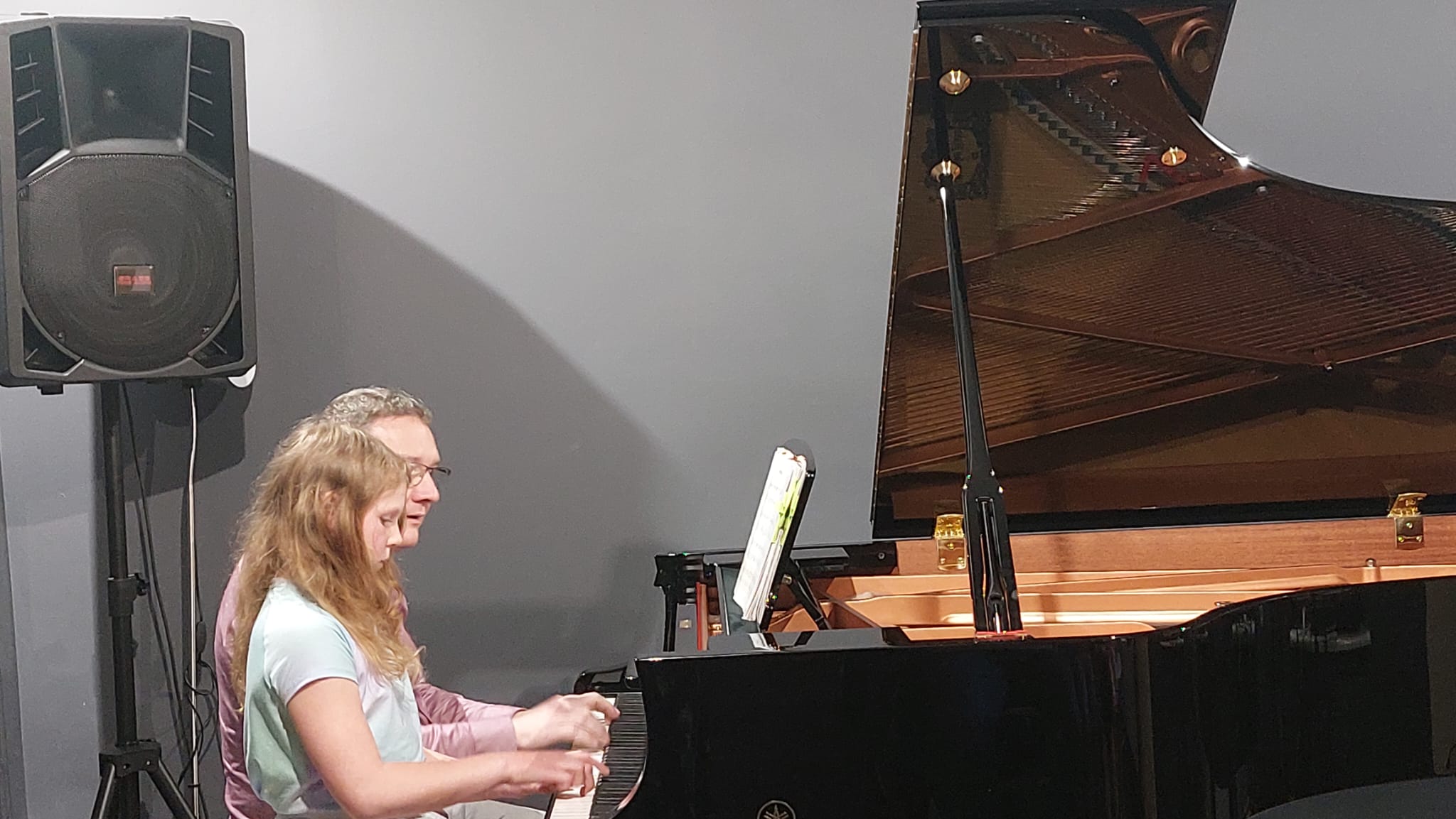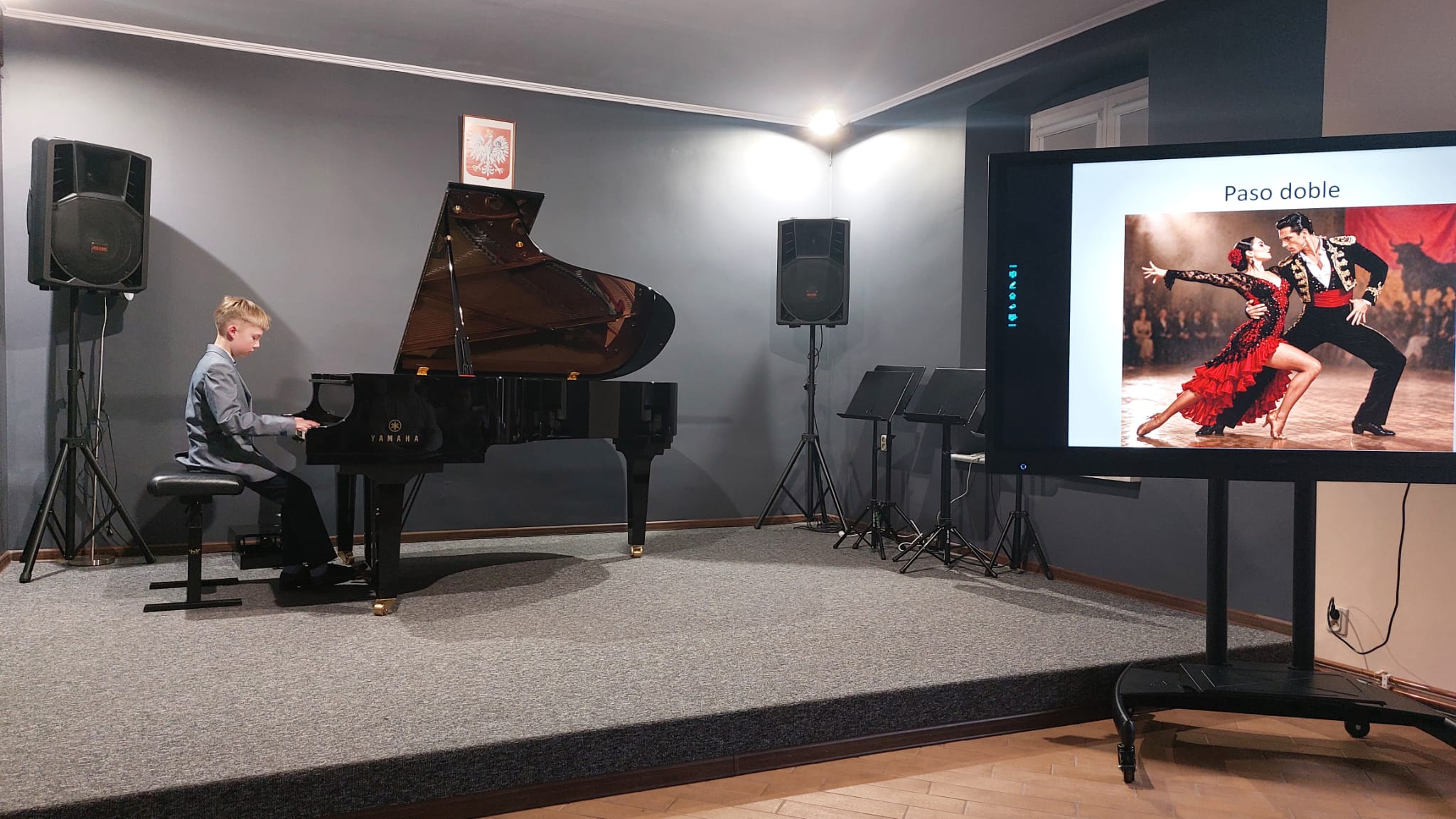 Pianiści zagrali w sali koncertowej Szkoły Muzycznej w Tczewie, 14 kwietnia 2026 r. bardzo ciekawy koncert. Pokazali, że naprawdę lubią grać tańce. W ich interpretacji usłyszeliśmy tańce z różnych stron świata, a były to: walc, menuet, kontredans, musette, kontredans, sarabanda, kujawiak, oberek, walc, samba, taniec cygański, paso doble, boogie, a nawet teatr chiński i taniec dzikusów. Wszystko było rewelacyjnie prowadzone przez p. Alinę Dombrowską, która przygotowała prezentację, która bardzo dobrze dopełniła całości.