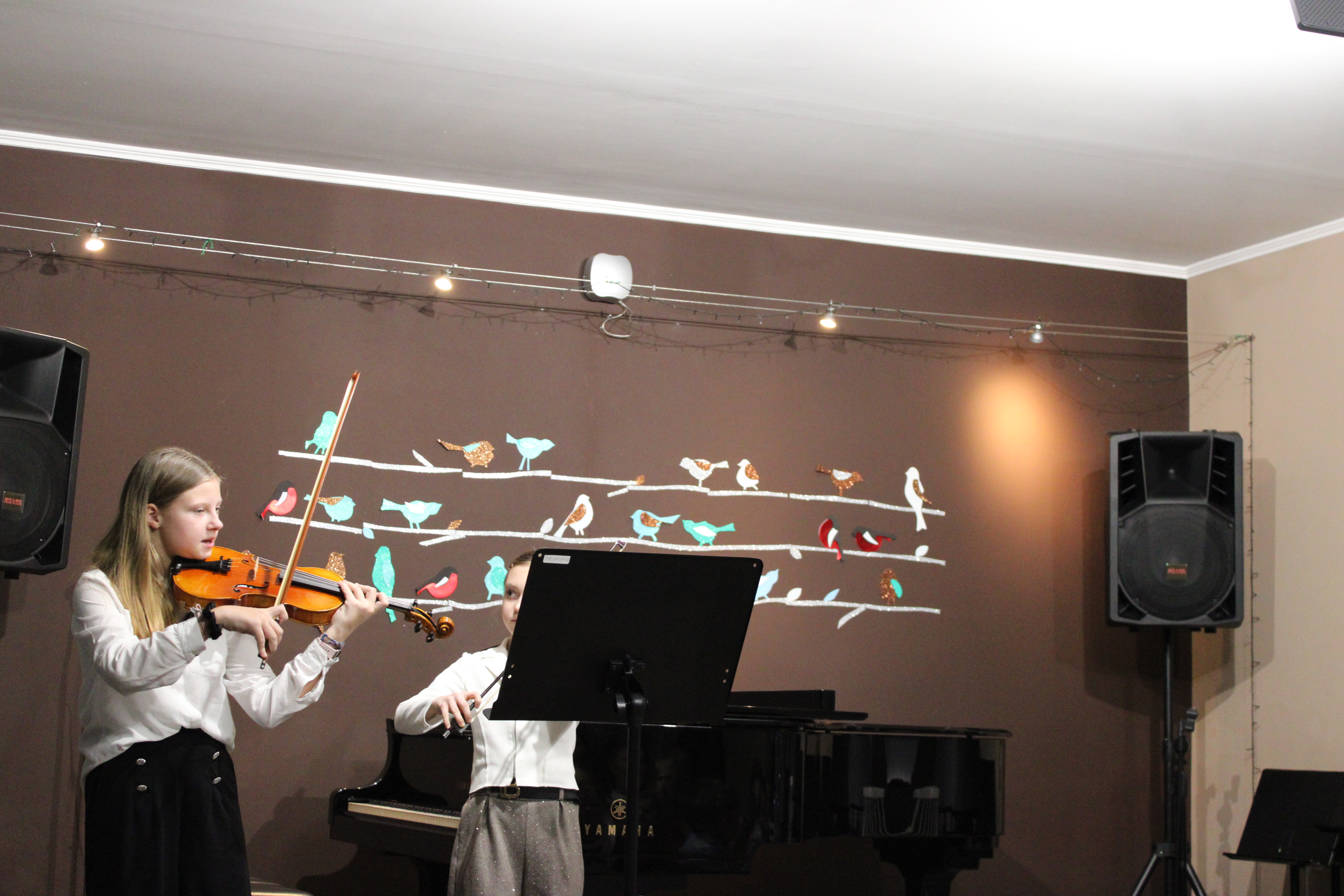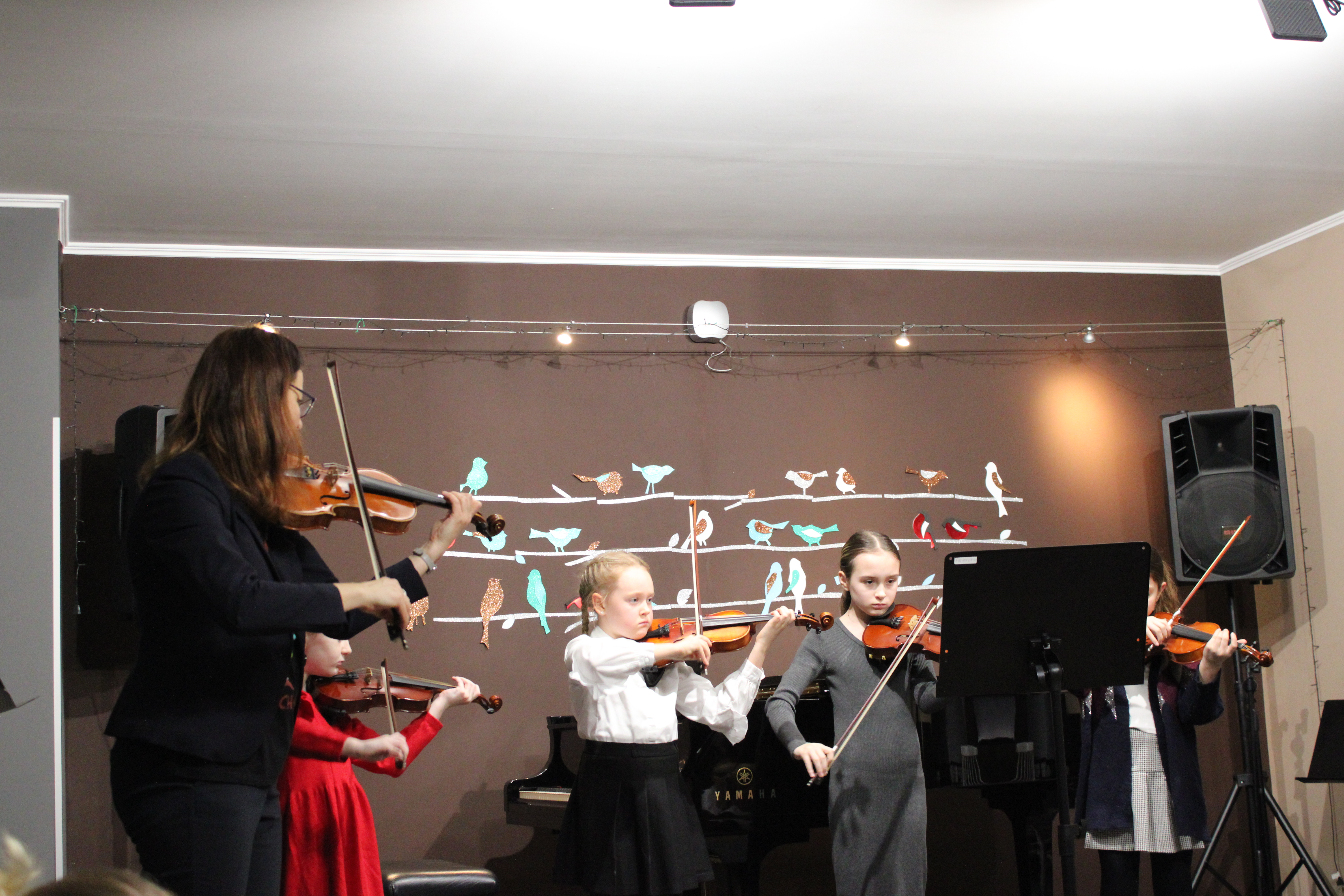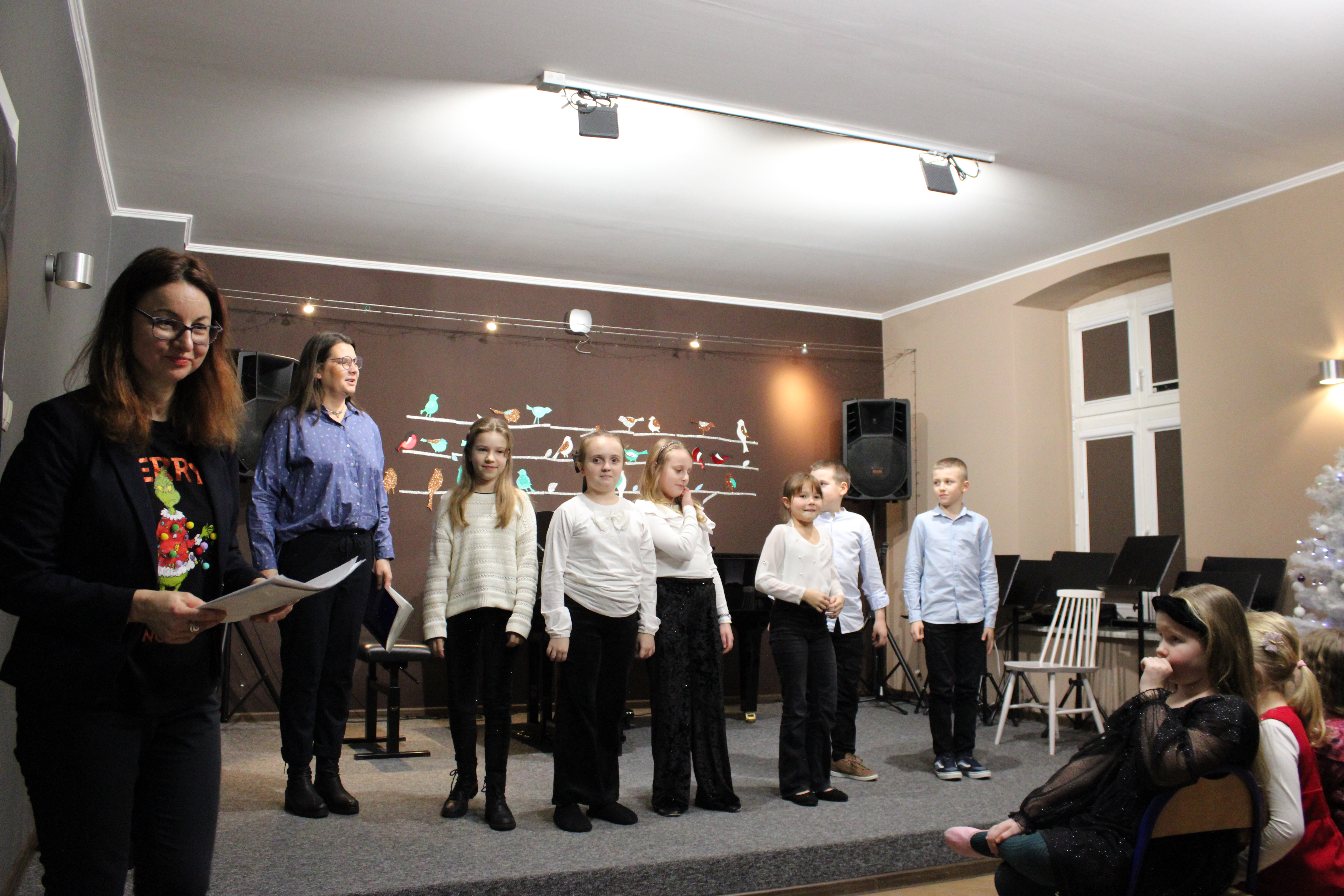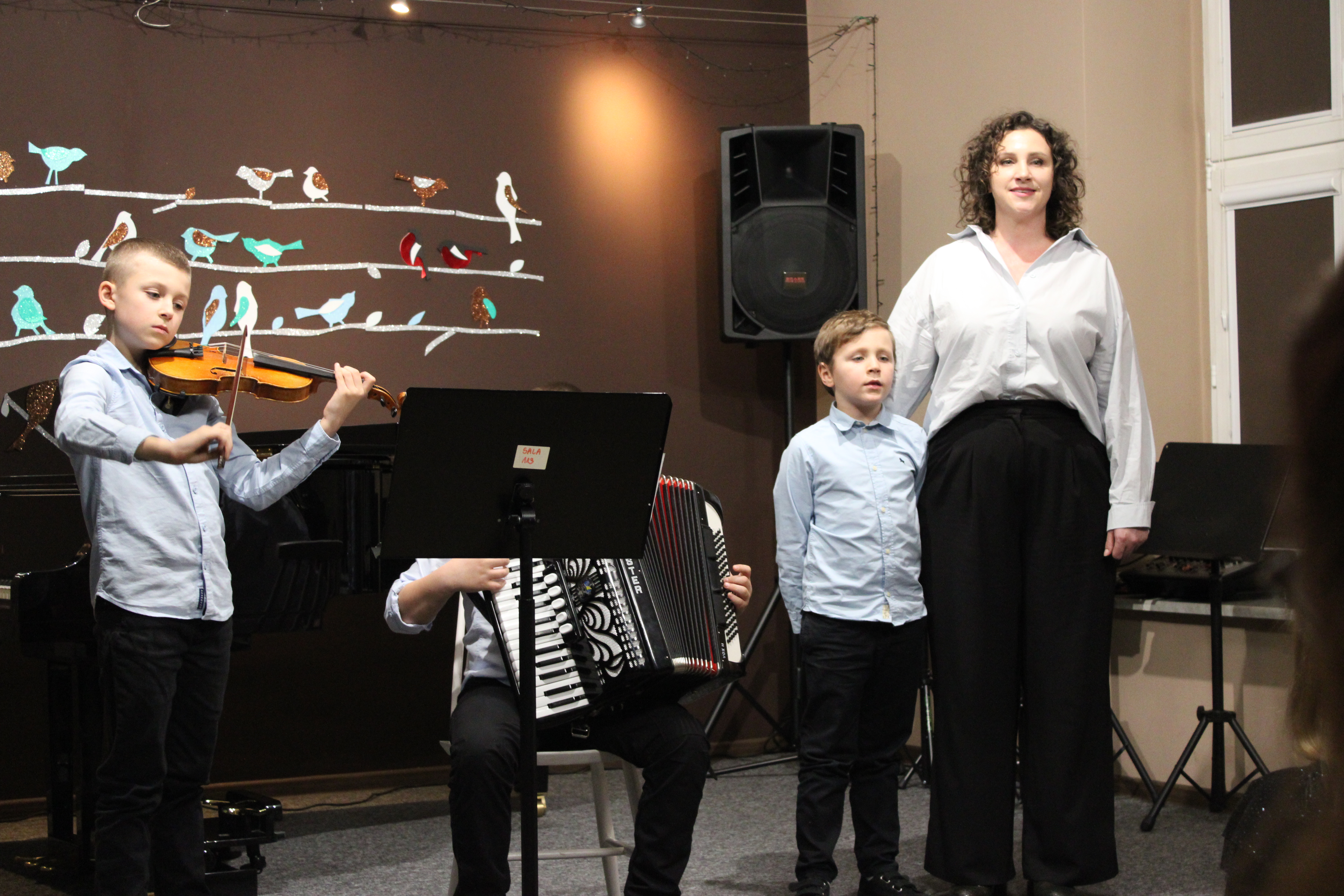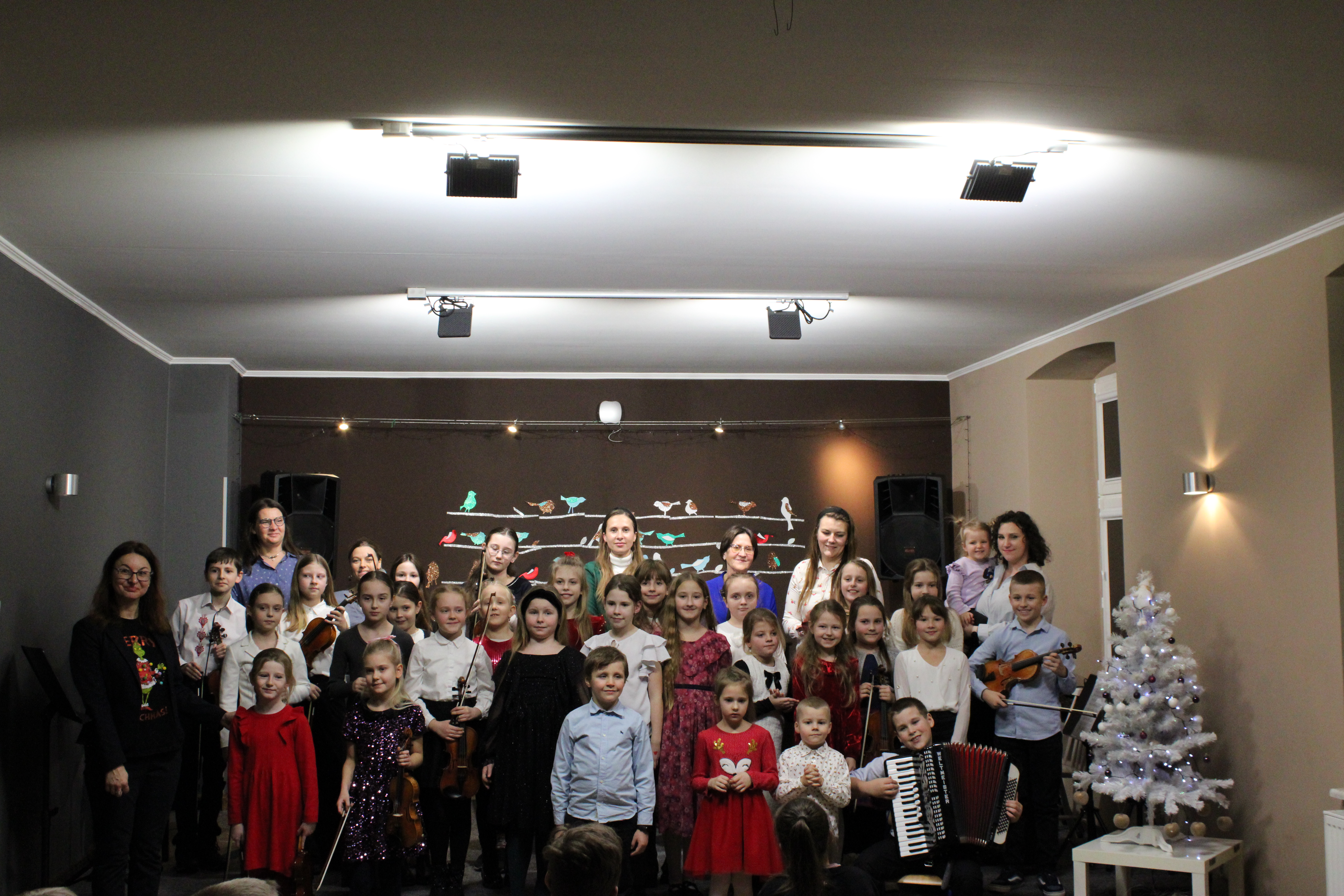 Wspólne kolędowanie to to, co w muzycznej bardzo lubimy. 14 stycznia 2025 r. w naszej sali koncertowej odbył się koncert pod hasłem "Mamo, tato ząśpiewaj ze mną". Na scenie wystąpili skrzypkowie p. Aldony Śmietańskiej wraz ze swoimi rodzinami oraz grupy rytmiki przygotowane przez p. Agnieszkę Rogowicz-Kowalską. Atmosfera koncertu była niezwykła. Możliwość wystąpienia wraz ze swoimi pociechami - niepowtarzalne! Gratulujemy wszystkim wykonawcom wspaniałych występów.