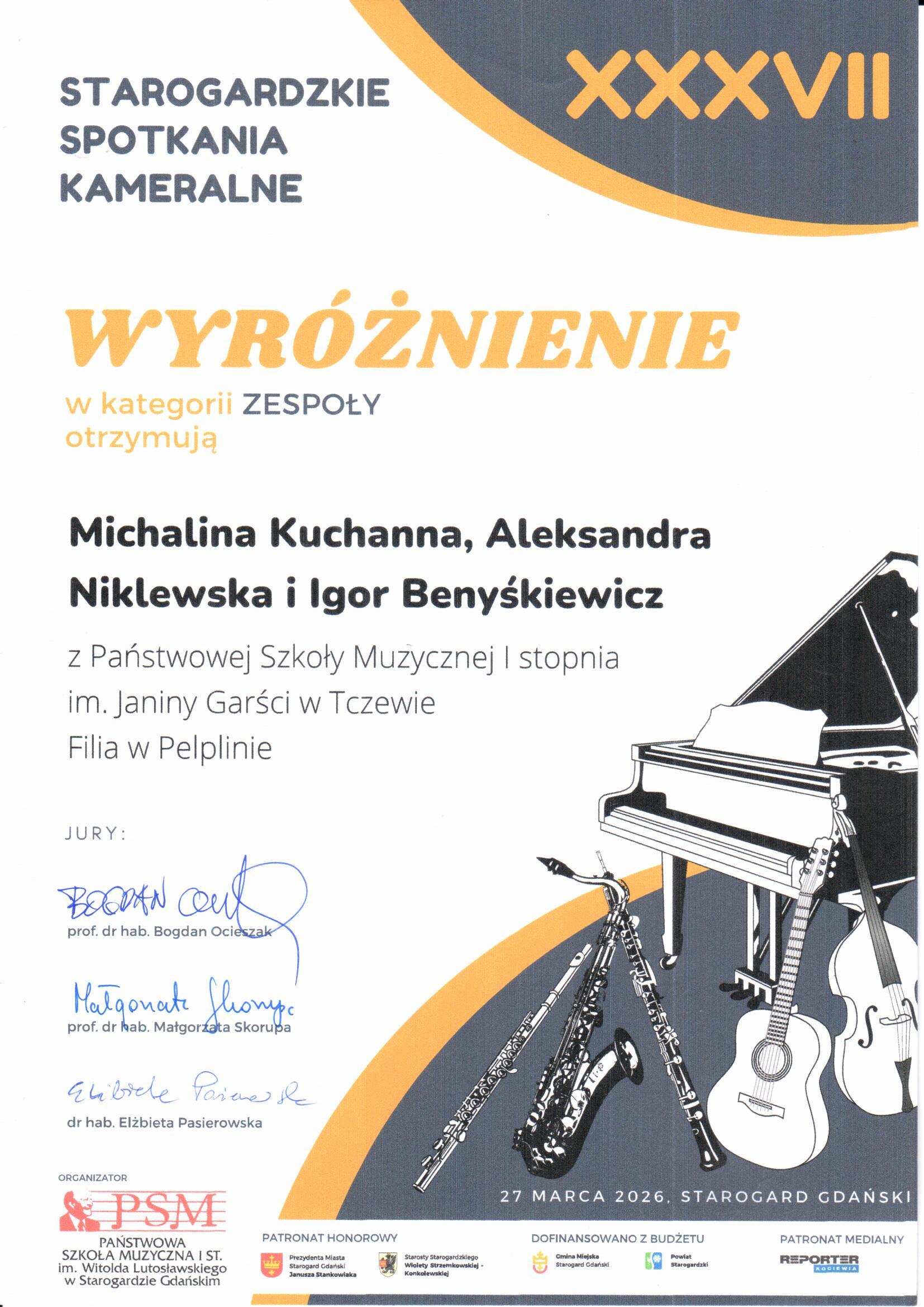 🌟 Wyróżnienie – Michalina Kuchanna, Igor Benyśkiewicz, Aleksandra Niklewska