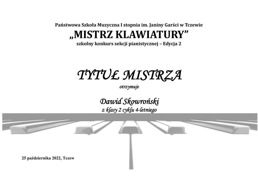 DAWID SKOWROŃSKI - otrzymał Tytuł Mistrza klawiatury w grupie młodszej,