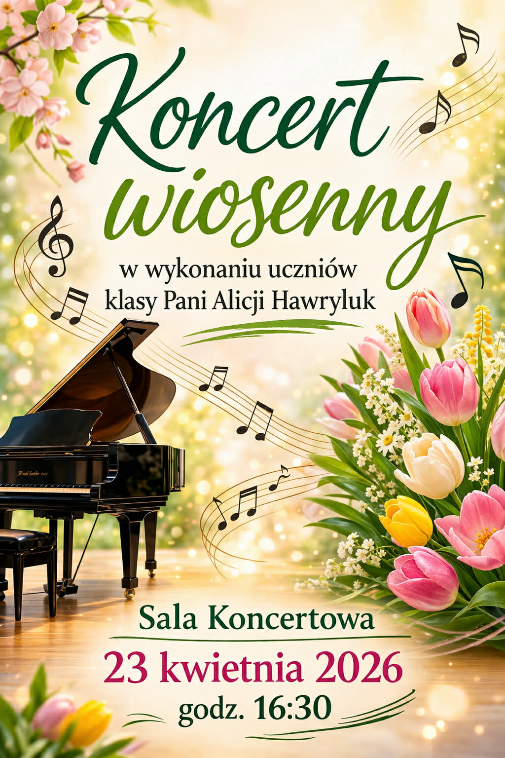23.04.2026 (czwartek), godz. 16:30 - Wiosenny koncert klasy fortepianu mgr Alicji Hawryluk - sala koncertowa PSM.