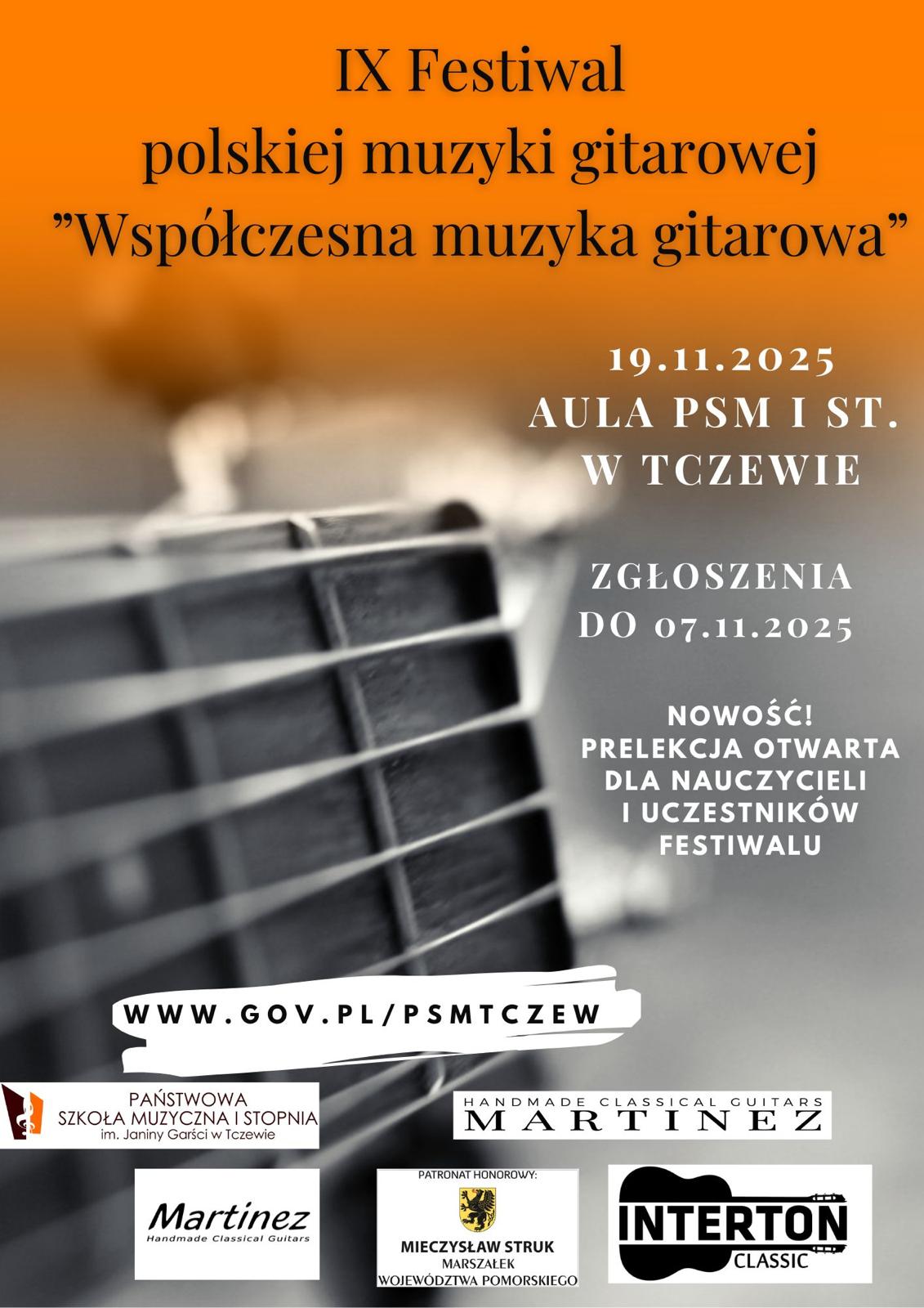 19.11.2025 (środa) godz. 10:00 - 17:00 - IX Festiwal polskiej muzyki gitarowej "Współczesna muzyka gitarowa" - sala koncertowa PSM Tczew (zajęcia lekcyjne zawieszone w czasie trwania konkursu - dokładna informacja w późniejszym terminie)