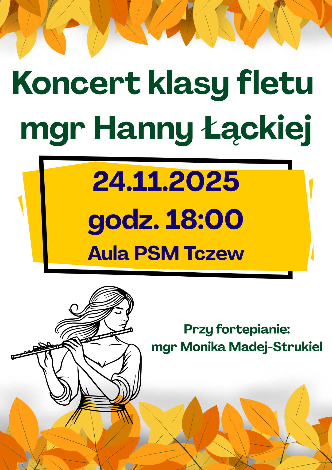 24.11.2025 (poniedziałek), godz. 18:00 - Koncert klasy fletu mgr Hanny Łąckiej - sala koncertowa PSM Tczew