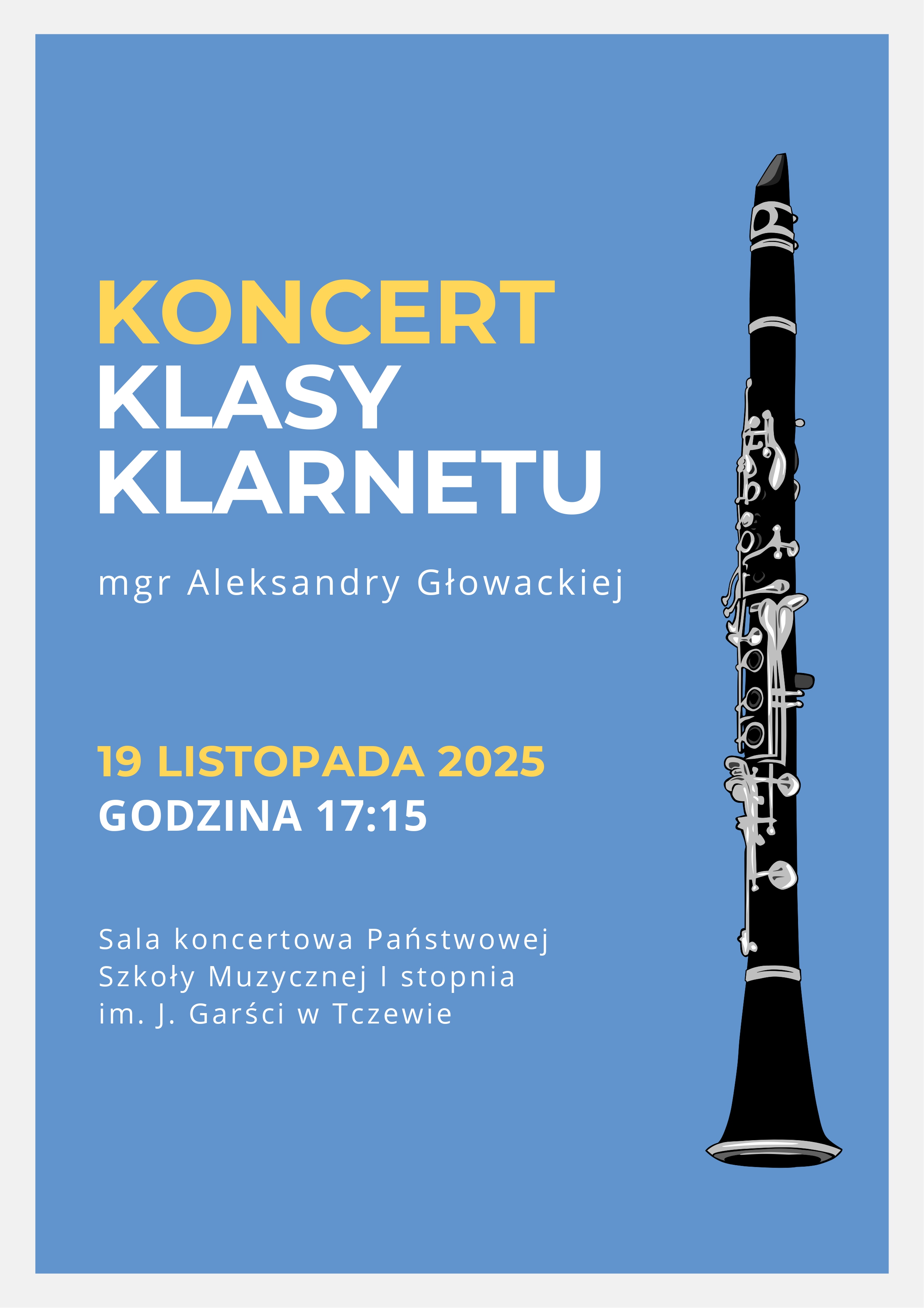 19.11.2025 (środa), godz. 17:15 - Koncert klasy klarnetu mgr Aleksandry Głowackiej - sala koncertowa PSM Tczew
