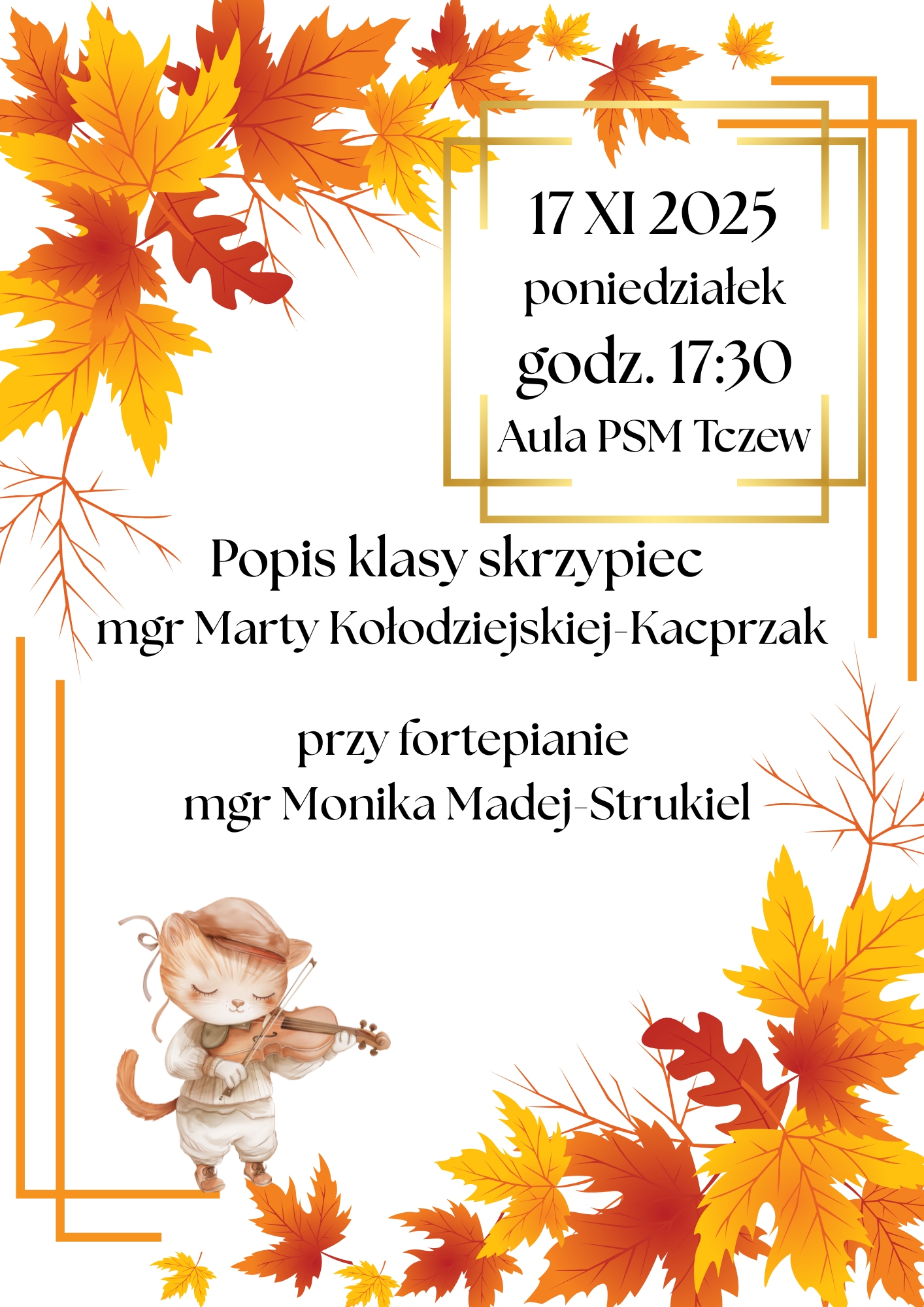 17.11.2025 (poniedziałek), godz. 17:30 - Popis klasy skrzypiec mgr Marty Kołodziejskiej-Kacprzak - sala koncertowa PSM Tczew
