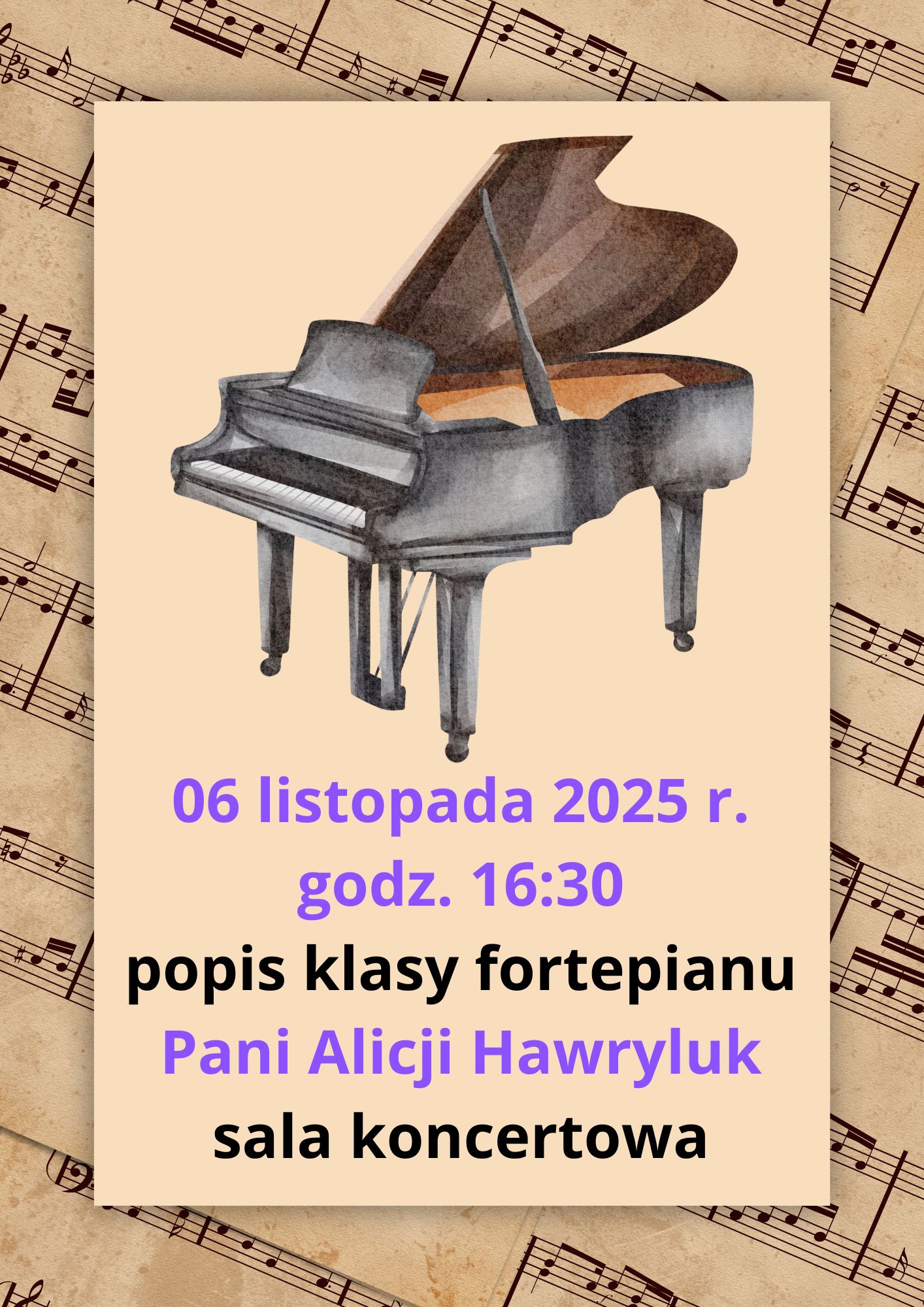 06.11.2025 (wtorek), godz. 16:30 - Popis klasy fortepianu mgr Alicji Hawryluk - sala koncertowa PSM Tczew