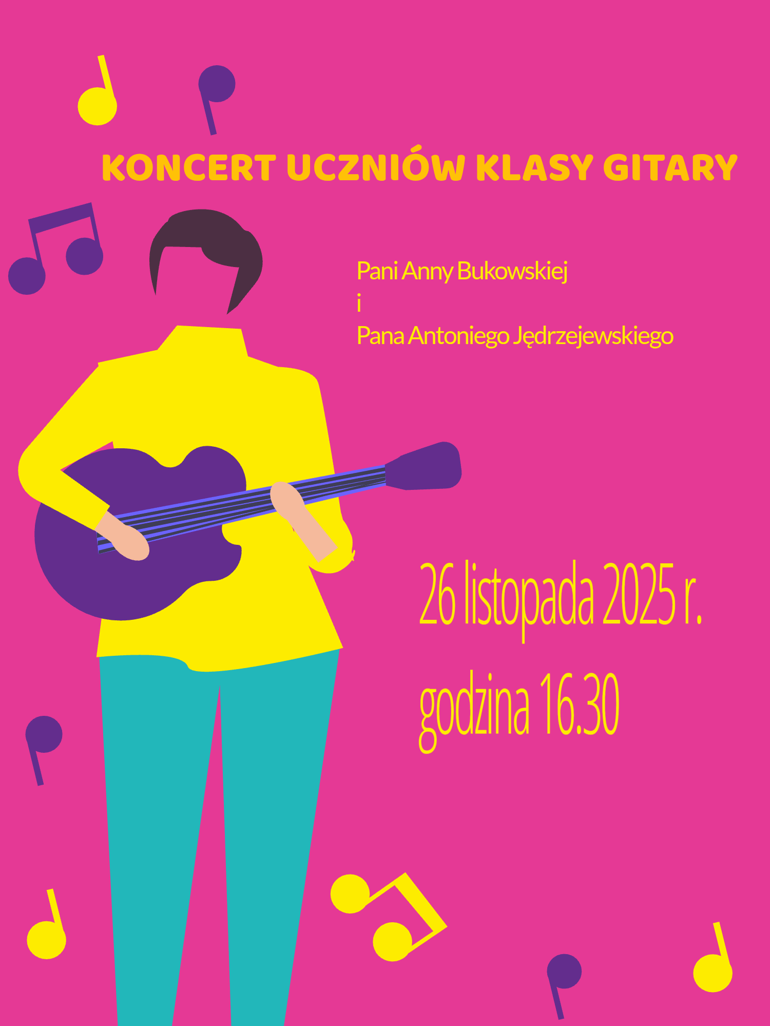 26.11.2025 (środa), godz. 16:30 - Koncert klasy gitary mgr Anny Bukowskiej i mgr Antoniego Jędrzejewskiego - sala koncertowa PSM Tczew