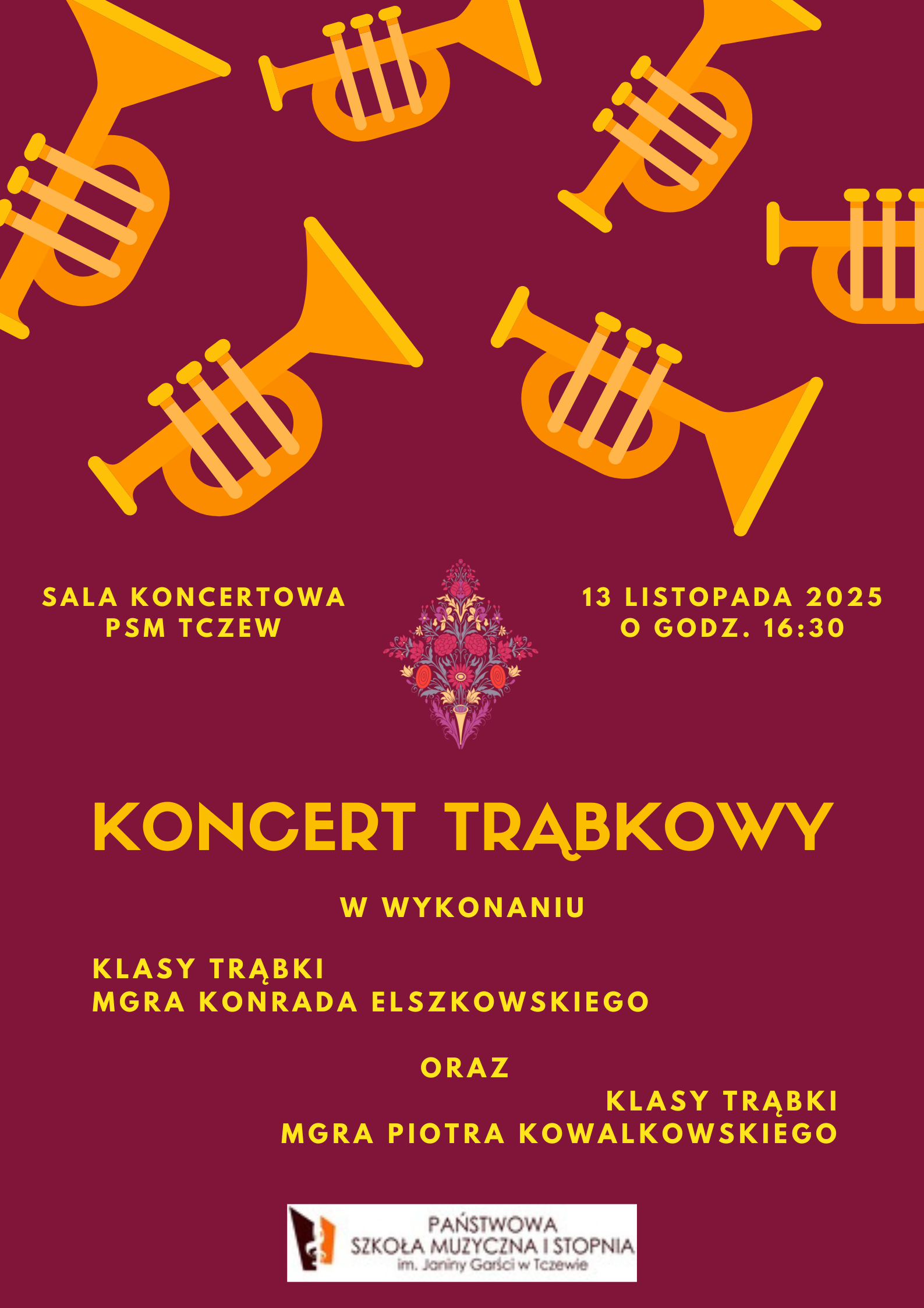 13.11.2025 (czwartek), godz. 16:30 - Koncert trąbkowy klasy mgr Konrada Elszkowskiego i mgr Piotra Kowalkowskiego - sala koncertowa PSM Tczew