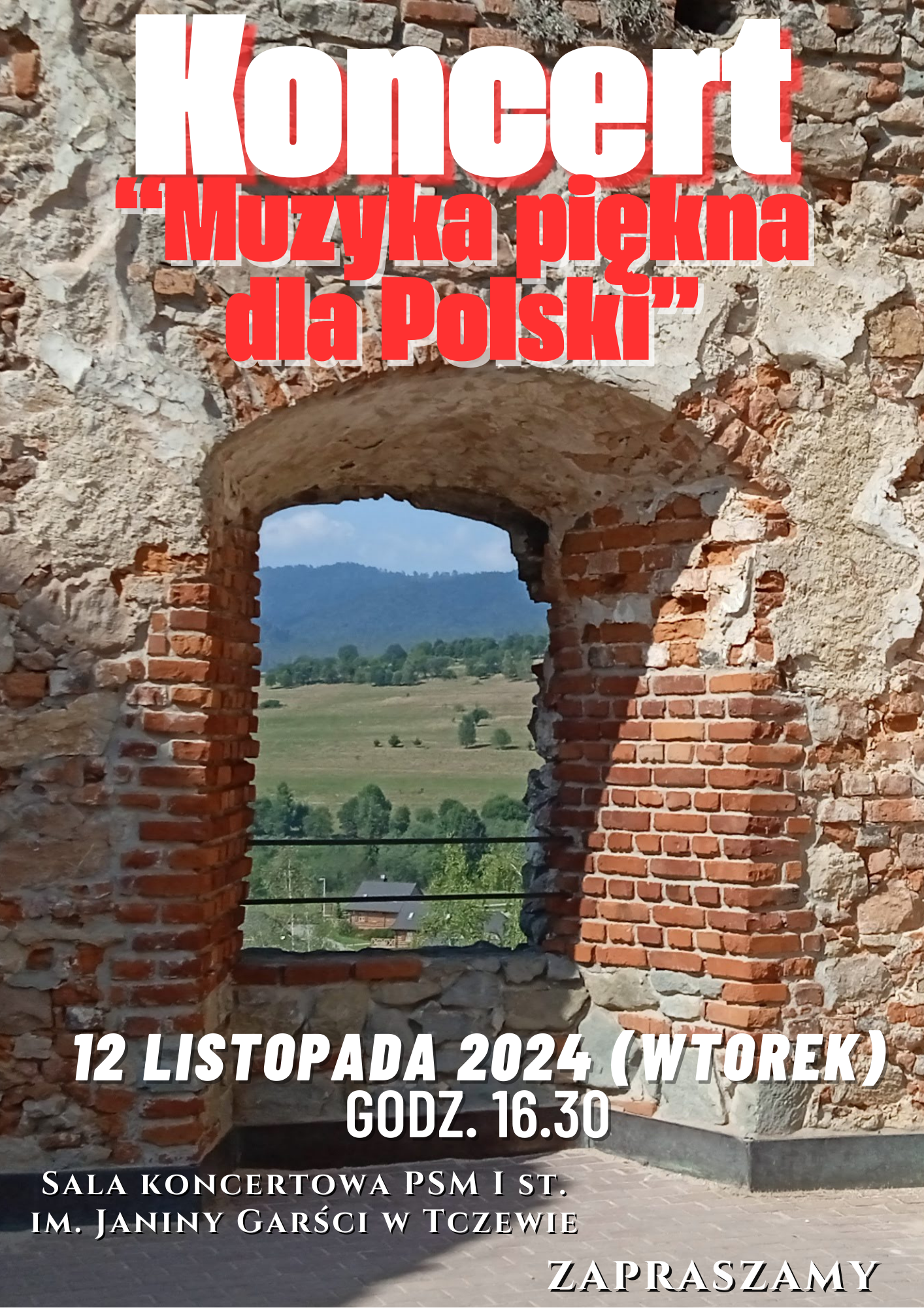"Muzyka piękna dla Polski" - to tytuł koncertu szkolnego, który odbędzie się 12 listopada 2024 r. o godzinie 16:30 w sali koncertowej szkoły muzycznej w Tczewie. Wykonawcami będą uczniowie naszej szkoły, a w repertuarze znajdzie się muzyka polska, muzyka narodów słowiańskich i wiele więcej z najpiękniejszej muzyki. ZAPRASZAMY!