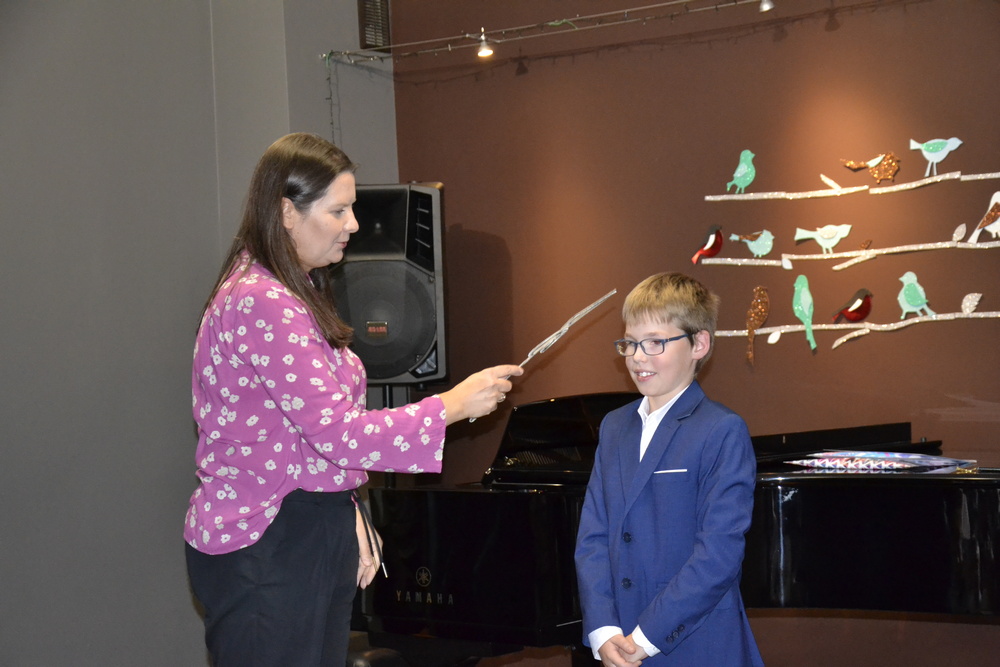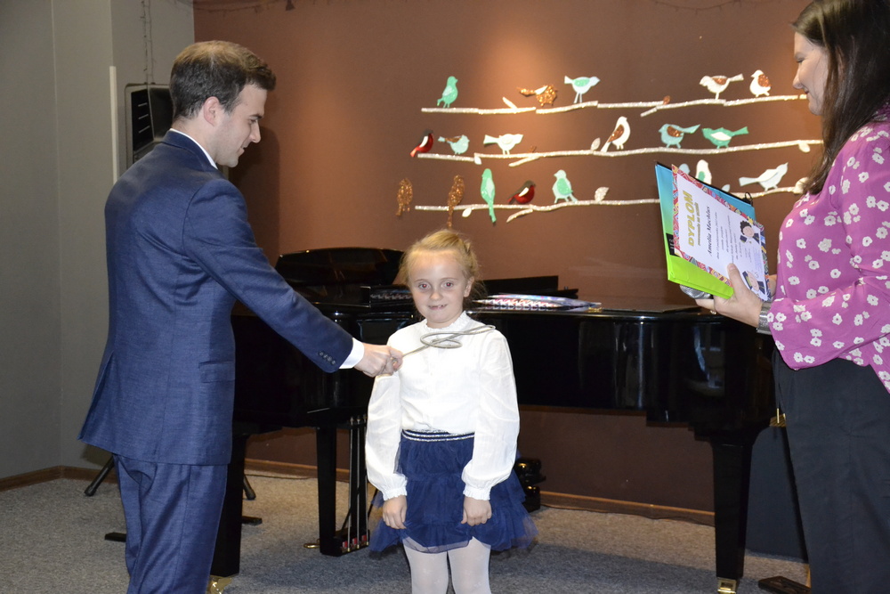Jednym z najważniejszych wydarzeń dla uczniów rozpoczynających naukę w szkole jest Uroczyste ślubowanie, które często nazywamy Pasowaniem na ucznia. W tym roku taka uroczystość odbyła się 13 października 2022 r. o godzinie 17:00 w Auli Państwowej Szkoły Muzycznej I stopnia w Tczewie. Pan Dyrektor Piotr Kowalkowski otworzył to wielkie wydarzenie. Następnie uczniowie starszych klas zagrali dla pierwszoklasistów "powitalny koncert". Później przyszedł czas na uroczyste ślubowanie i pasowanie na ucznia szkoły muzycznej - tutaj rolę gospodarzy przejęli nauczyciele kształcenia słuchu: pani Agnieszka Rogowicz-Kowalska i pan Miłosz Janiak. Poza ślubowaniem, pierwszoklasiści zaśpiewali piosenkę o szkole, której nauczyli się na zajęciach kształcenia słuchu.