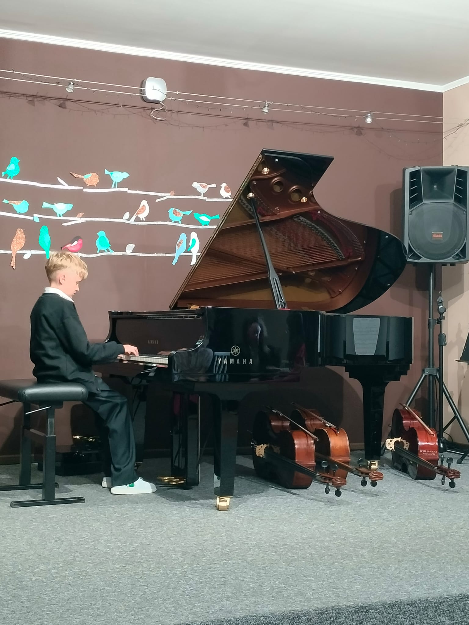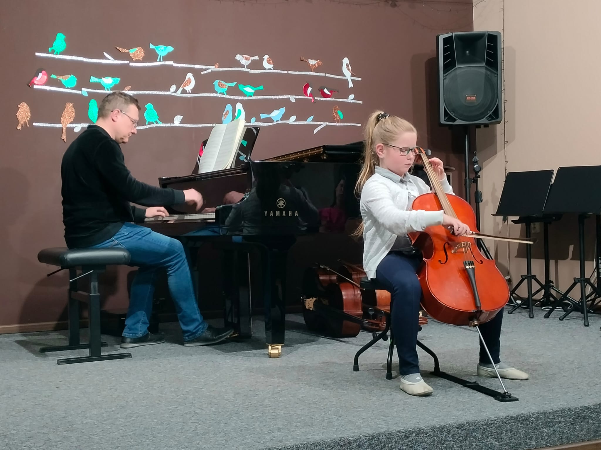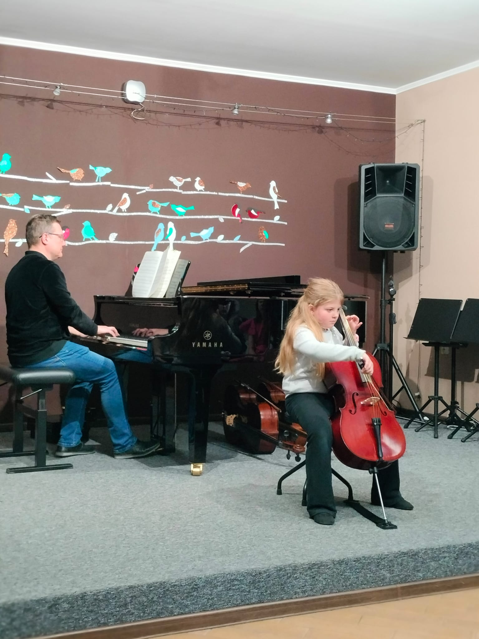 Wspomnienia na zdjęciach utrwalone z Koncertu PIANO&CELLO, który odbył się 16.05.2025 o godzinie 17:00 w sali koncertowej szkoły muzycznej w Tczewie. Podczas Koncertu swoje siły połączyły klasa fortepianu p. Marcina Hinza i klasa wiolonczeli p. Nikoli Fredy. Takie wspólne koncertowanie i wspieranie siebie na ostatniej prostej roku szkolnego to świetny pomysł! Brawo wiolonczeliści i pianiści.