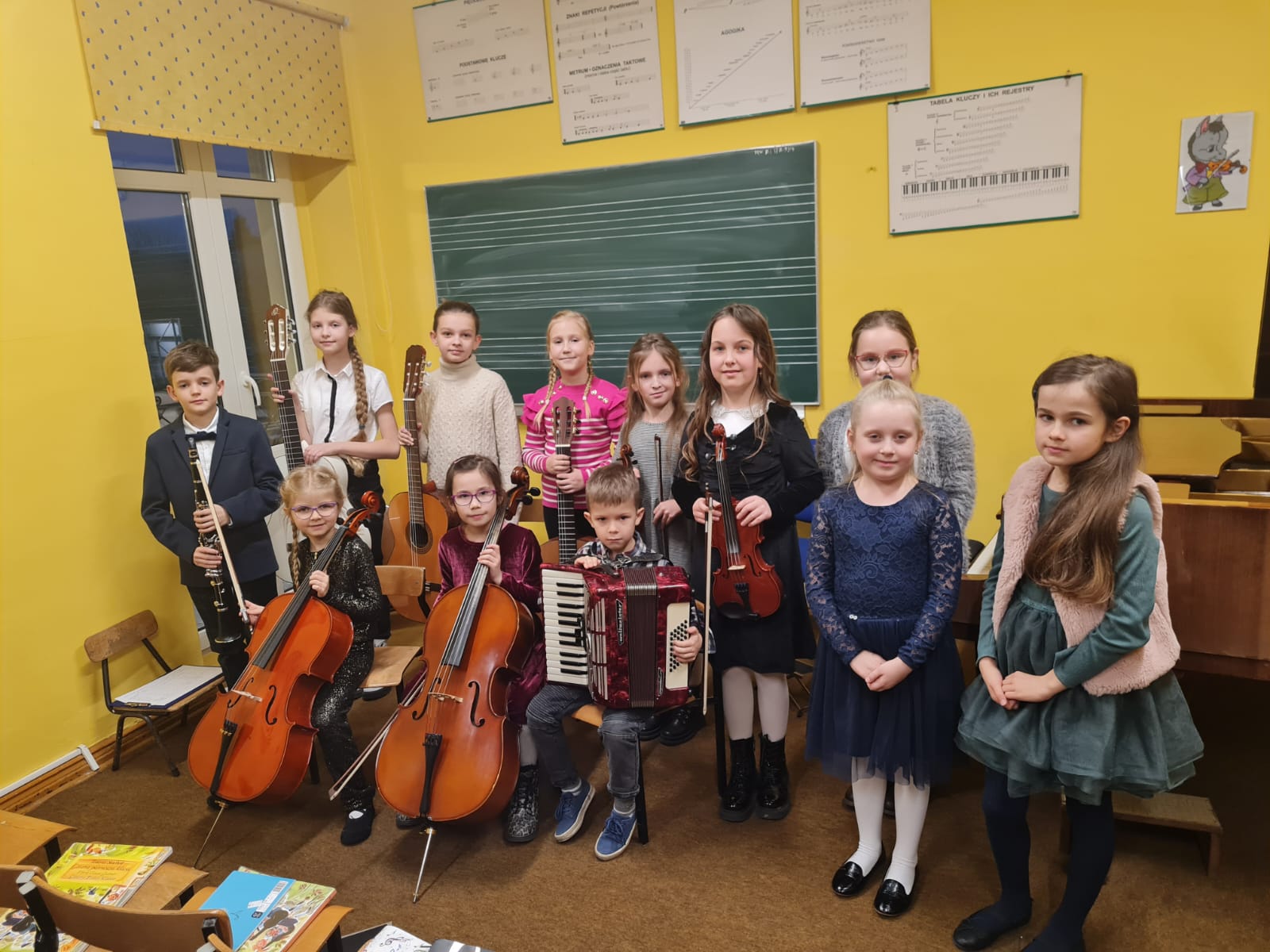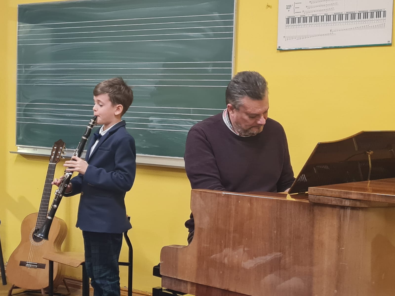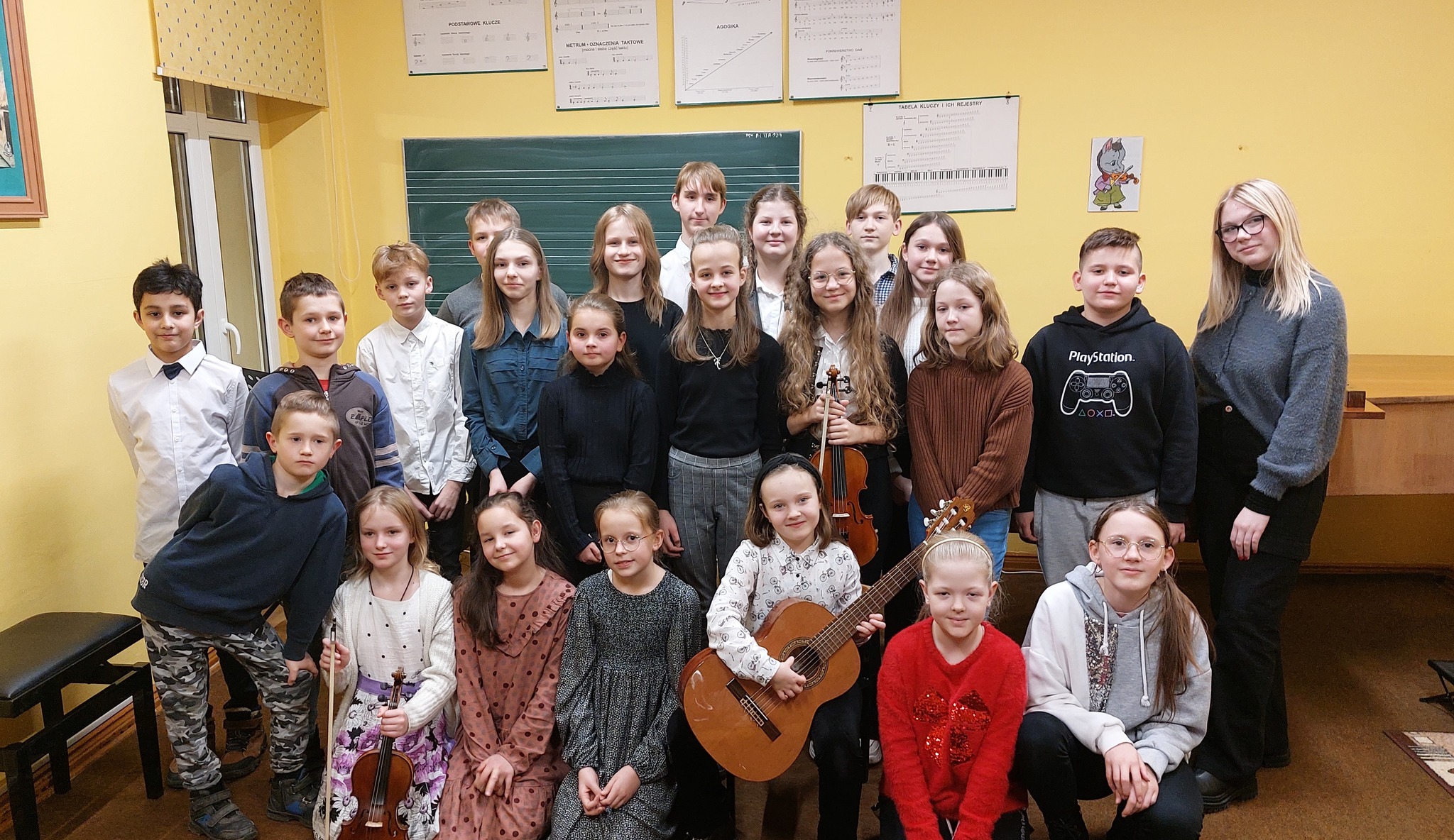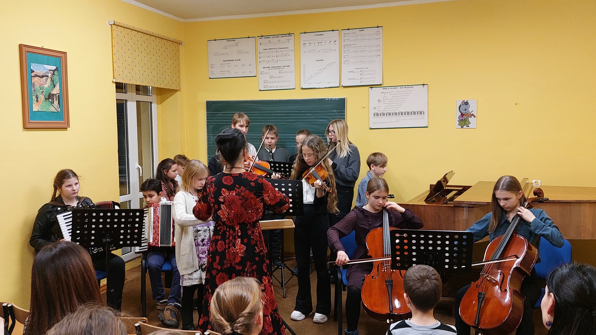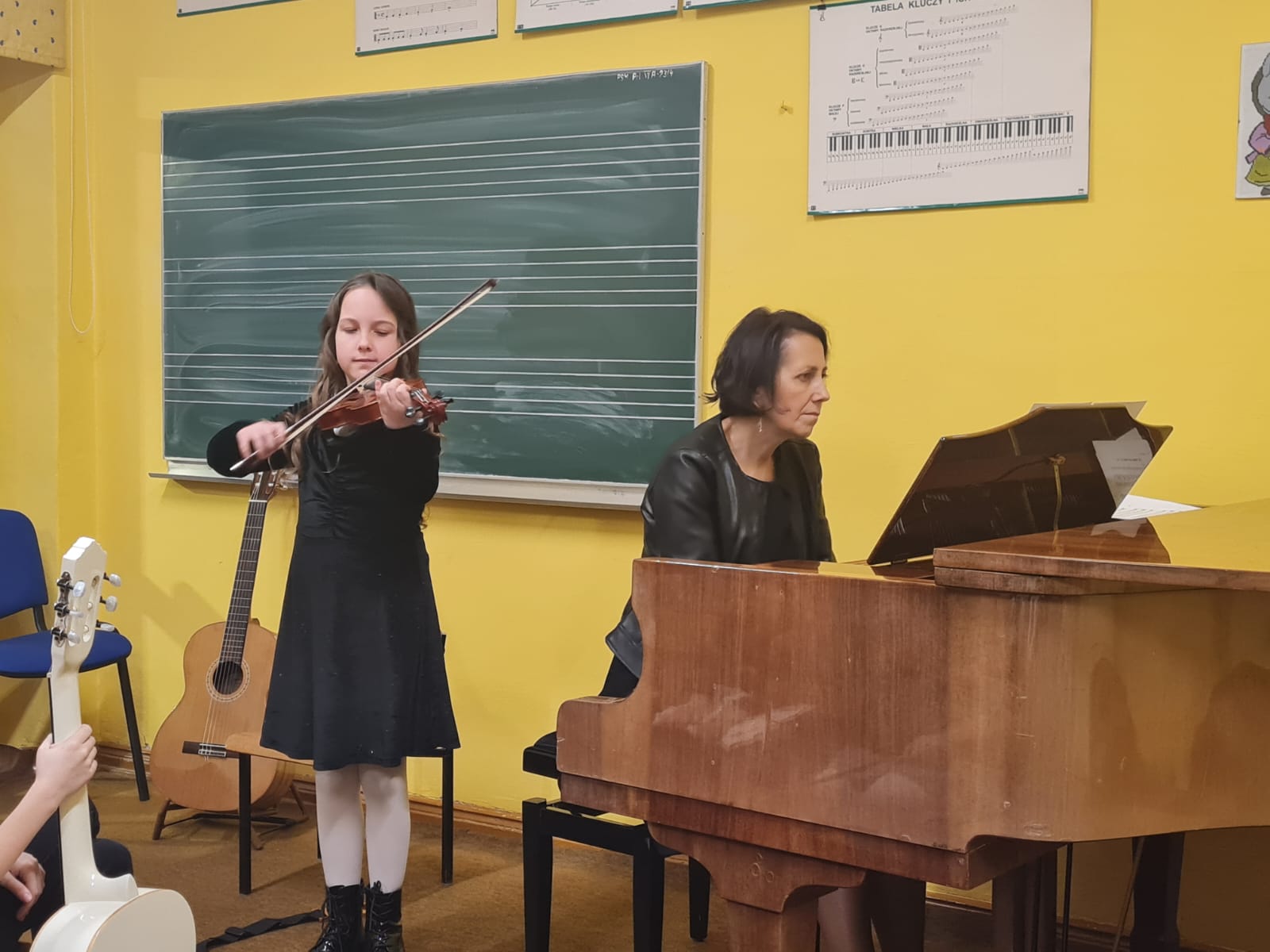 Dnia 11.01.2023r. w pelplińskiej filli miały miejsce dwa dwa wydarzenia. Pierwszym z nich był Koncert Klas Pierwszych, podczas którego zaprezentowali się nasi najmłodsi uczniowie, dla niektórych z nich był to debiut na scenie. Drugim wydarzeniem był Popis Półroczny, będący ukoronowaniem pracy szkoły podczas ostatniego semestru - oprócz występów uczniów usłyszeliśmy od prowadzącej oba koncerty p. Krystyny Dettlaff-Czocher o sukcesach i dokonaniach, które miały miejsce w mijającym półroczu w naszej Filii. Po koncertach uczniowie i rodzice zostali zaproszeni na poczęstunek ufundowany przez Radę Rodziców.