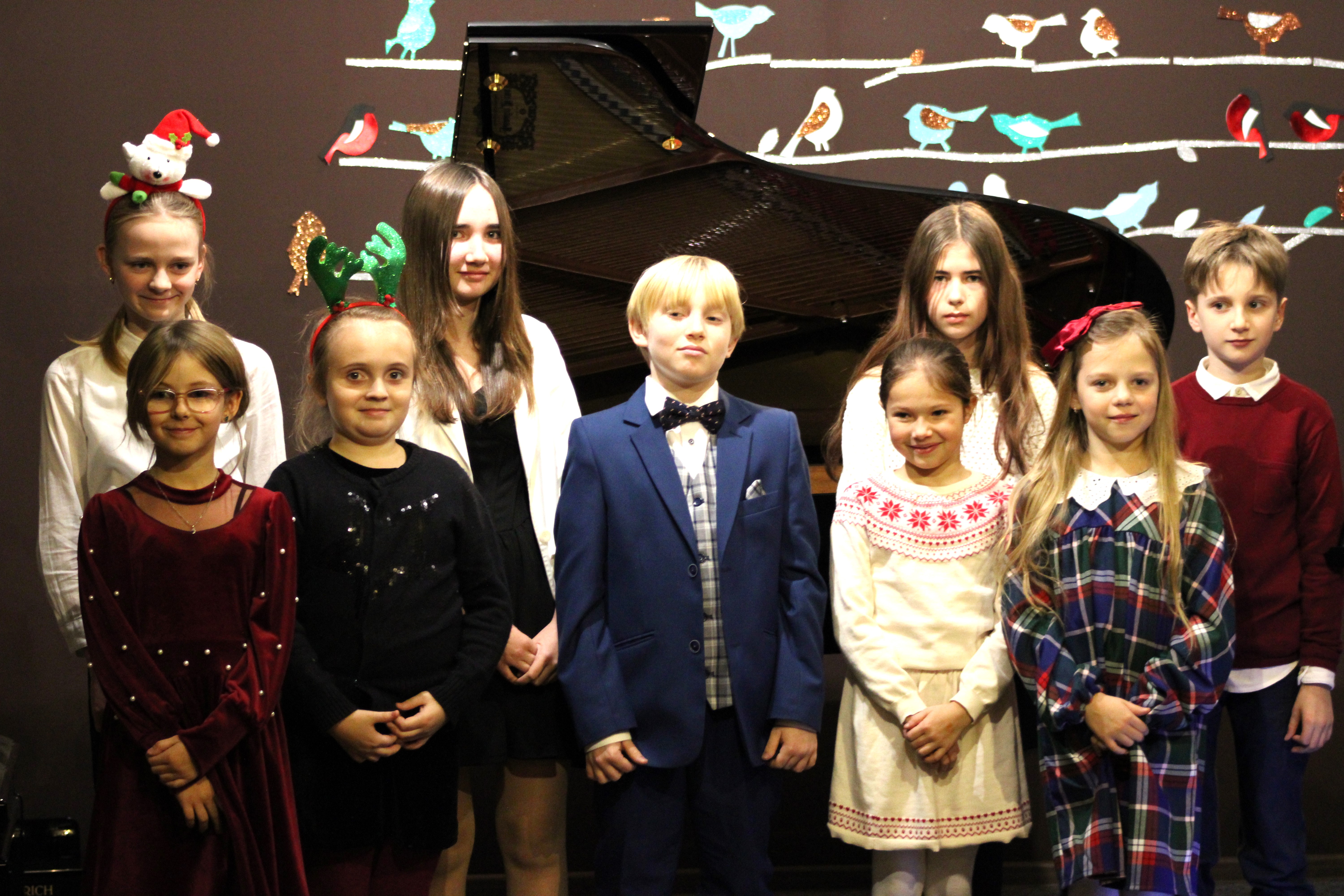 05 grudnia 2023 r. o godzinie 17:00 w sali koncertowej PSM Tczew odbył się Popis uczniów klasy fortepianu p. Aliny Dombrowskiej i p. Filipa Grzelachowskiego. Był to Koncert Mikołajkowy, co można zaobserwować na zdjęciach - uczniowie zadbali o świąteczne akcenty w ubiorze. Prezentacje były bardzo udane - gratulujemy!
