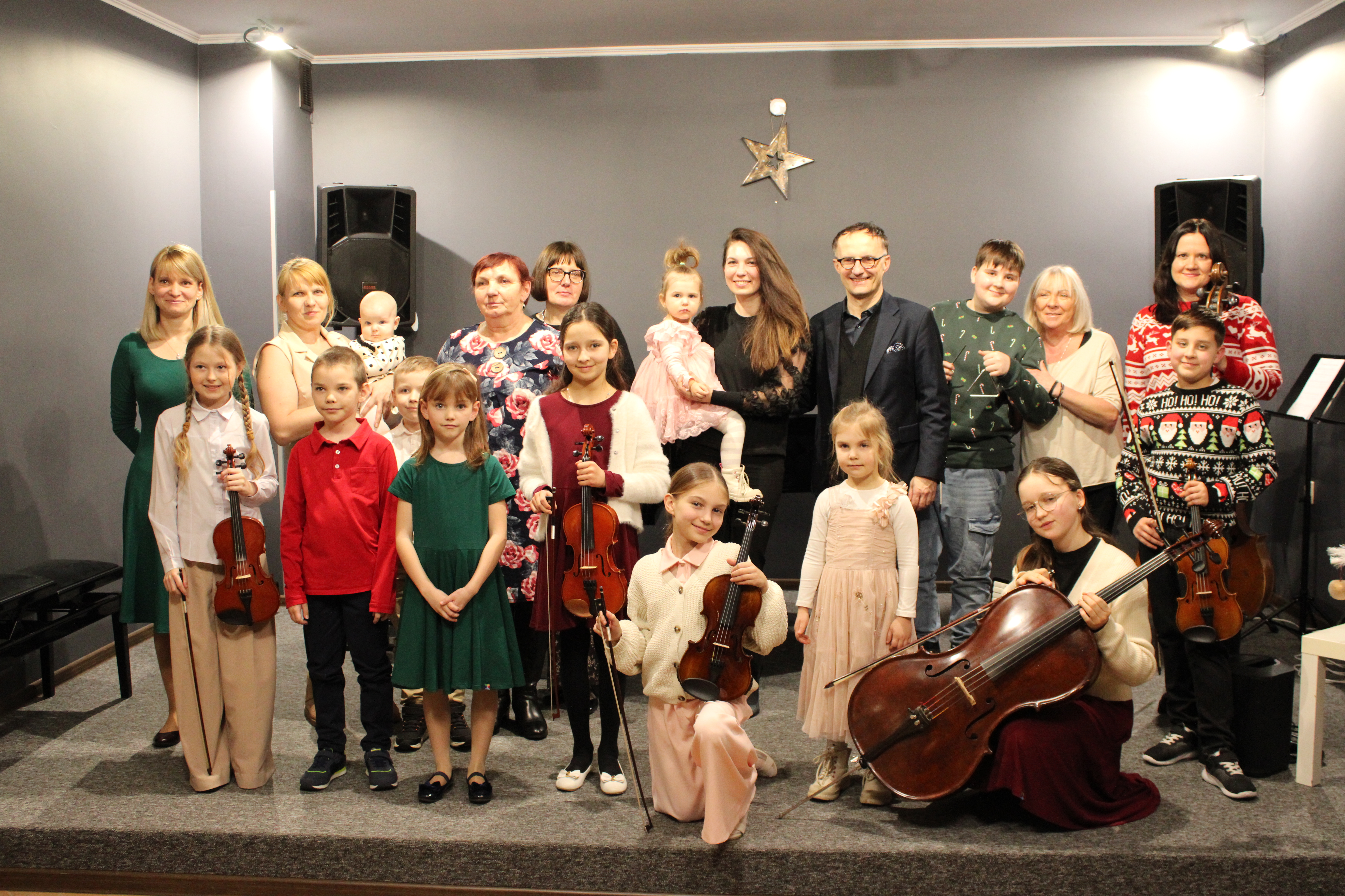 Choć aura nie była sprzyjająca, dzięki magicznym mocom, udało się dotrzeć na kolędowanie uczniom klasy skrzypiec pani Marty Kołodziejskiej-Kacprzak wraz ze swoim rodzinami. Rodzice, rodzeństwo oraz babcie stanęli razem na scenie i podzielili się swoimi talentami. Niektórzy, po wielu latach odszukali swoje instrumenty, na których uczyli się grać właśnie w naszej szkole. BRAWO!! To był wspaniały koncert.