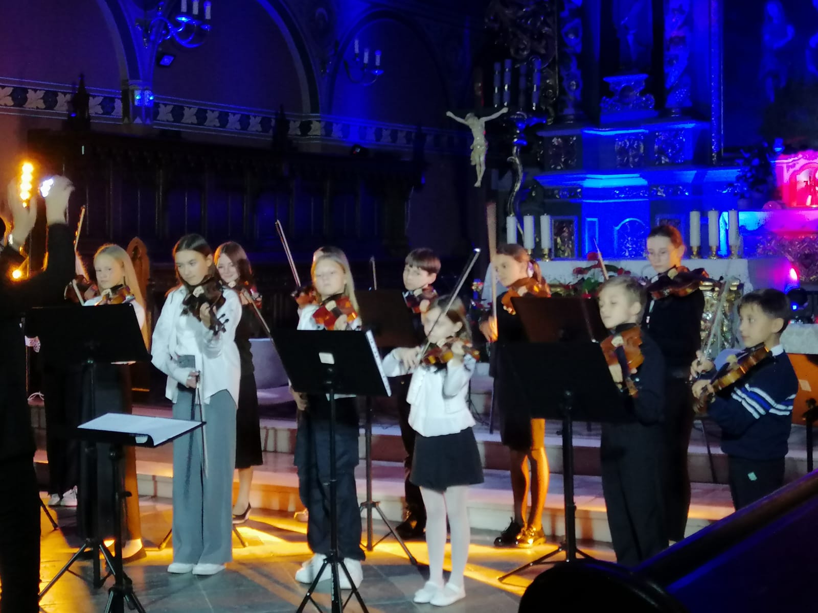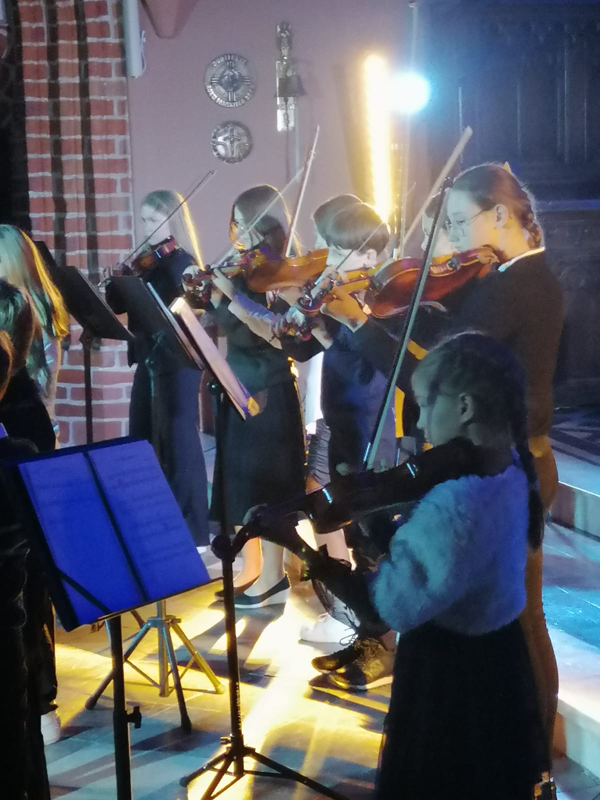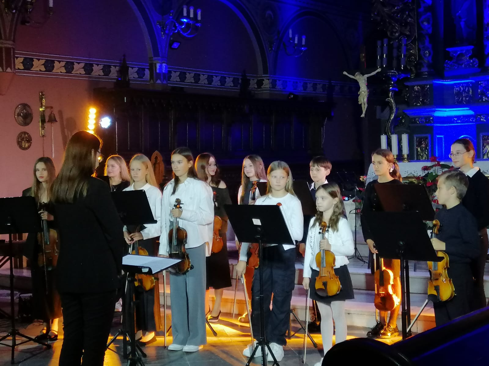 29 września 2024 w parafii pw. Podwyższenia Krzyża Św. w Tczewie odbył się ostatni koncert w ramach IV edycji Sambor Festival Tczew. Gwiazdą tego wieczoru był zespół Motion Trio. Przed charyzmatycznymi akordeonistami wystąpiła orkiestra violinkowa - skrzypkowie z naszej szkoły przy wsparciu absolwentek klasy skrzypiec. W wykonaniu violinek podczas koncertu usłyszeliśmy: "Dumkę na dwa serca", "Walc z filmu Amelia" oraz "W grocie króla gór". Skrzypków przygotowały p. Marta Kołodziejska-Kacprzak i p. Aldona Śmietańska. Przy fortepianie towarzyszyła p. Alina Dombrowska. Uczniowie rewelacyjnie rozpoczęli ten ostatni koncert festiwalowy - w trzech krótkich aranżacjach pokazali moc i piękno brzmienia orkiestry skrzypcowej. Serdecznie gratulujemy udanego występu.