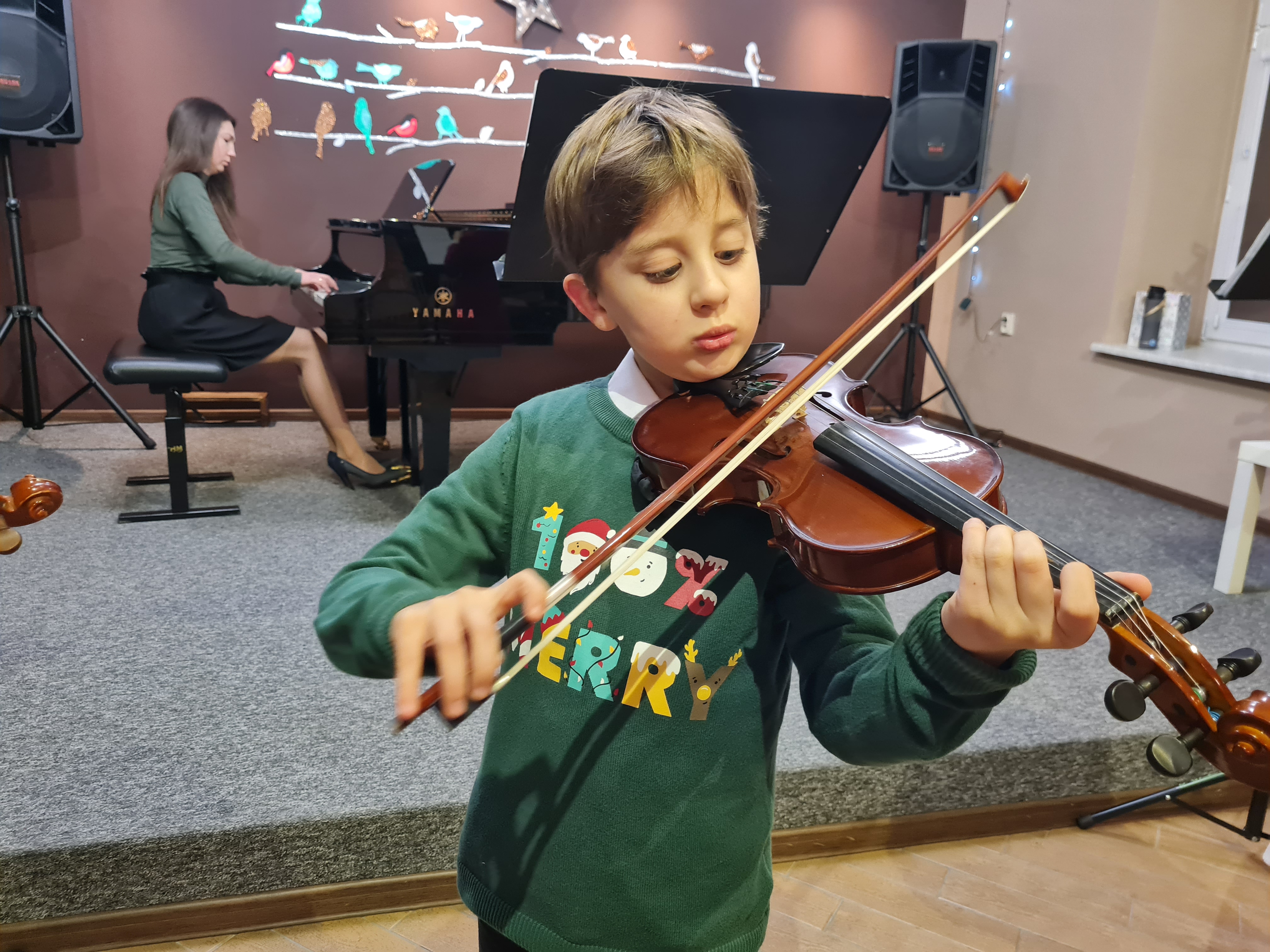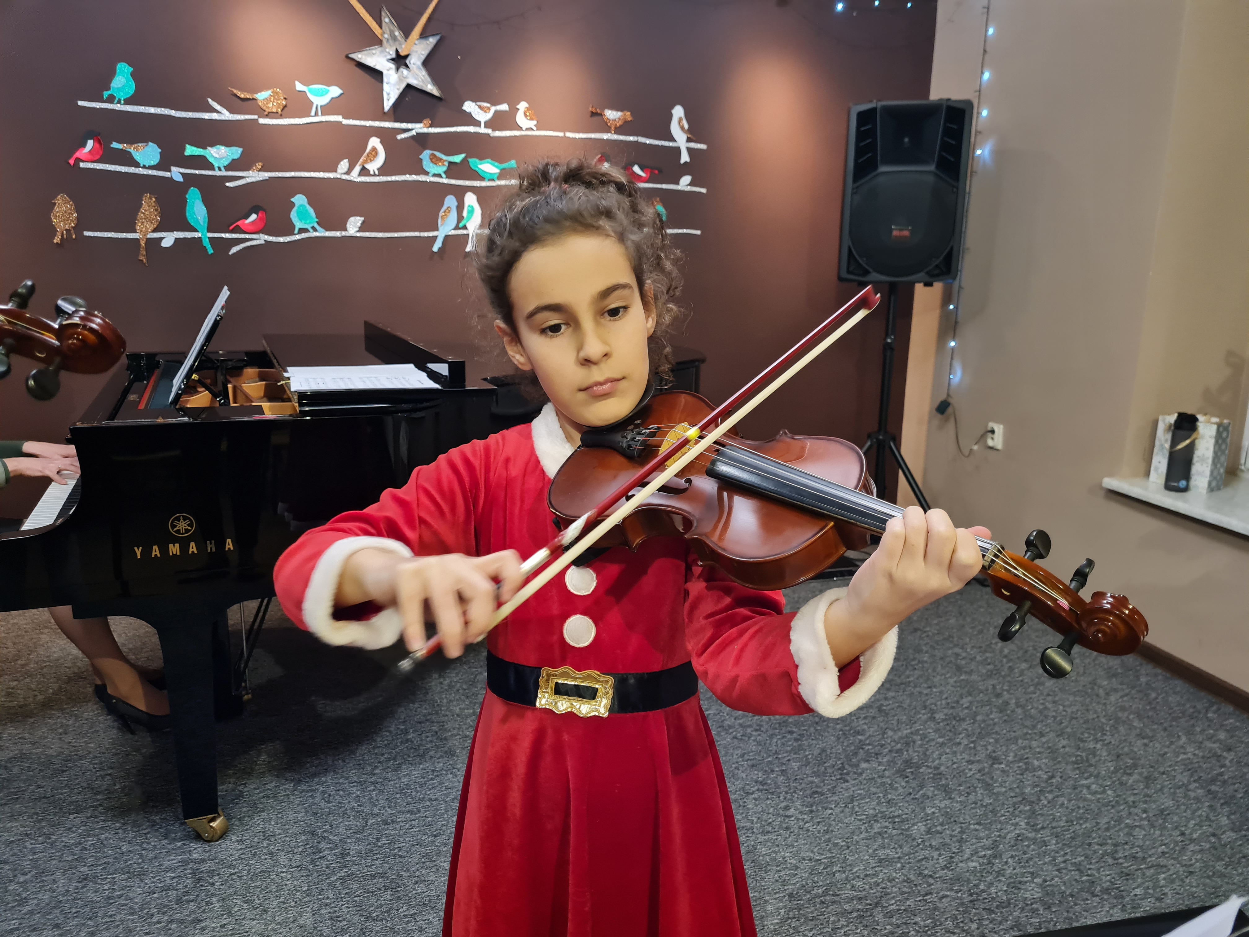 Kolejna odsłona kolęd i piosenek świątecznych za nami. Na Koncercie "Skrzypcowe kolędowanie", który odbył się 21 grudnia 2022 w naszej szkole, usłyszeliśmy kolędy w opracowaniu na zespół skrzypcowy, a także na skrzypce z fortepianem. Koncert zwieńczyło wspólne wykonanie z publicznością kolędy "Bóg się rodzi". Gratulacje dla wszystkich wykonawców.