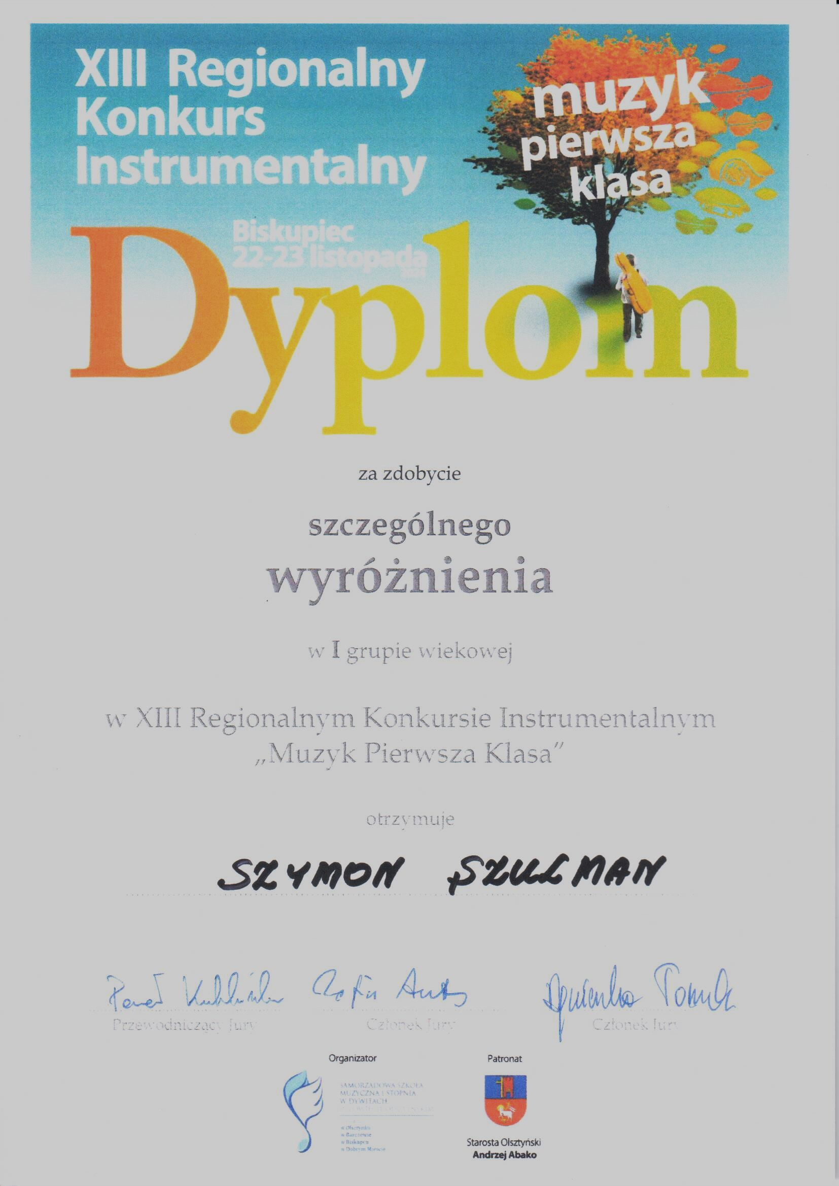 Miło nam poinformować, że nasz uczeń Szymon Szulman z klasy akordeonu pana Pawła Ratajka zdobył Wyróżnienie Specjalne na XIII Regionalnym Konkursie Instrumentalnym "Muzyk Pierwsza Klasa", który odbył się w Biskupcu w dniach 22-23 listopada 2024 r.