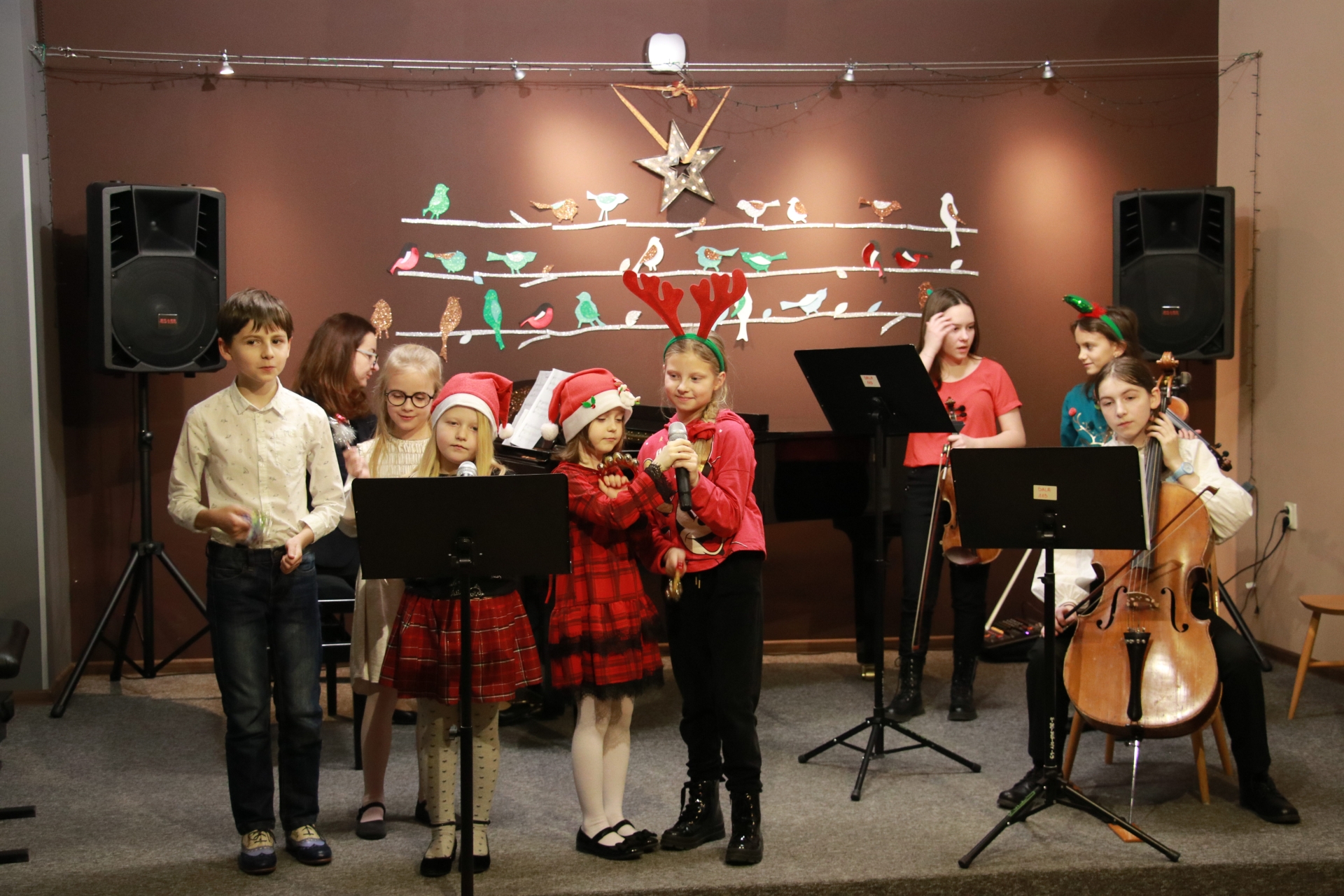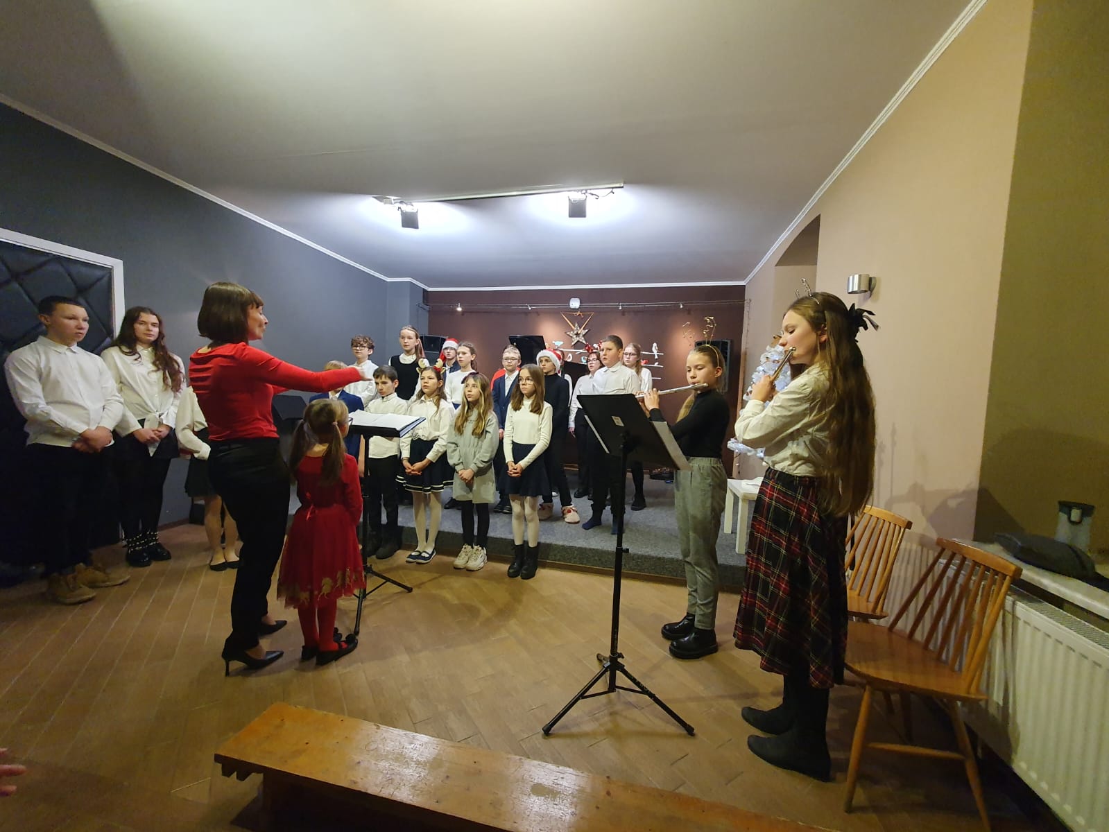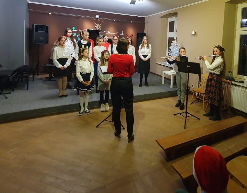 19 grudnia 2022 r. o godzinie 17:00 odbył się w naszej szkole Świąteczny Koncert Kolęd. Wykonawcami byli: chór szkolny pod dyrekcją p. Ewy Juszczyk-Kowalkowskiej wraz z duetem fletowym p. Moniki Tamulewicz, zespół wokalno-instrumentalny p. Aldony Śmietańskiej, zespół instrumentalny p. Nikoli Fredy, trio fletowe p. Hanny Łąckiej, trio akordeonowe p. Marka Gleinerta, duet gitarowy p. Antoniego Jędrzejewskiego, a także soliści Jędrzej Kłakowski, Oliwier Urban, Szymon Szlachetko oraz duety z nauczycielkami - Zofia Śmietańska i p. Alicja Hawryluk oraz Anna Okrój i p. Aldona Śmietańska.