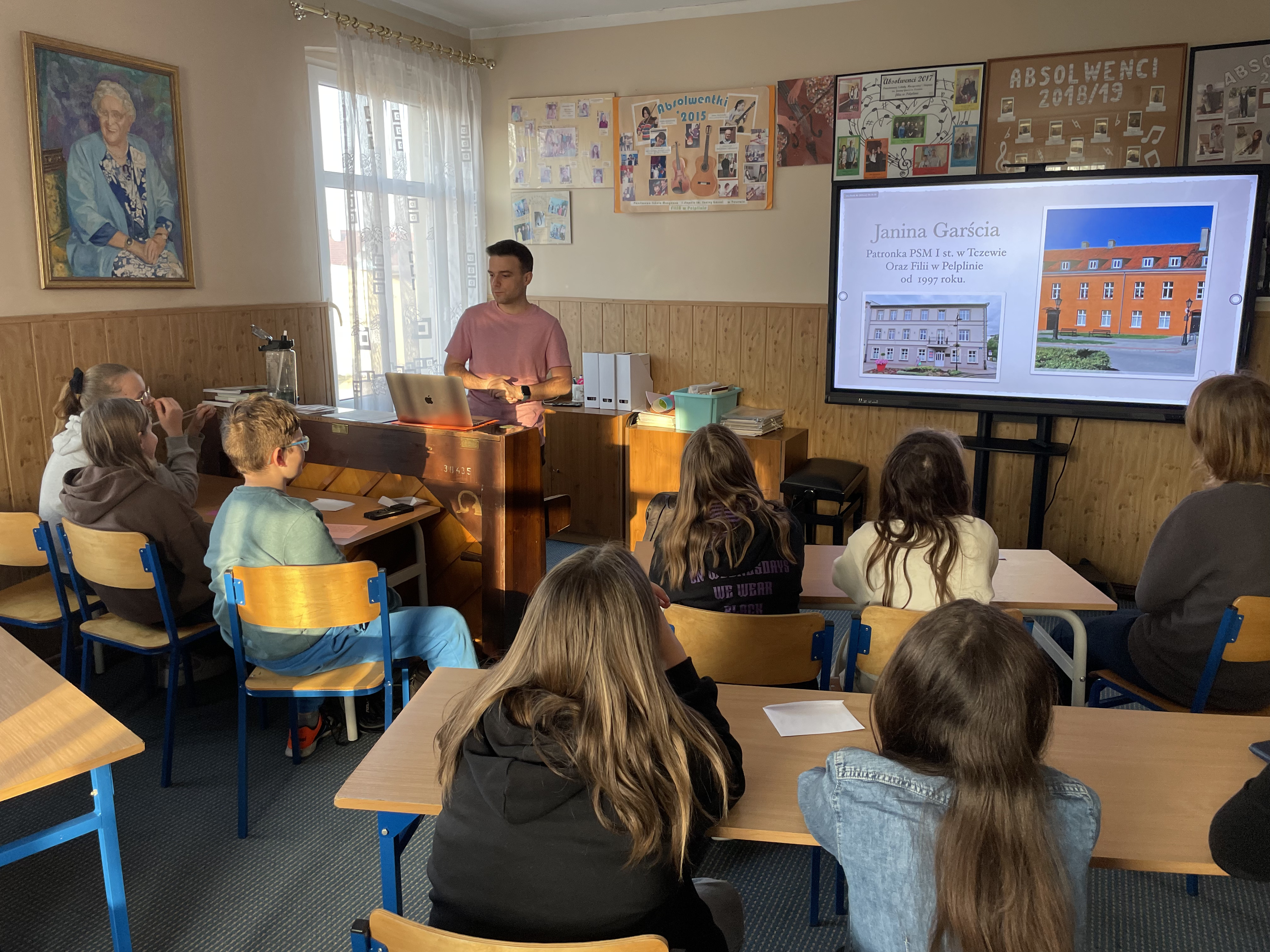 📅 10 marca 2026 r. starsze klasy wzięły udział w ciekawej audycji muzycznej przygotowanej przez pana Miłosza Janiaka. Uczniowie mogli poznać bliżej życie i twórczość patronki, a także sprawdzić swoją wiedzę w różnych grach, zagadkach i muzycznych łamigłówkach 🧩🎼.